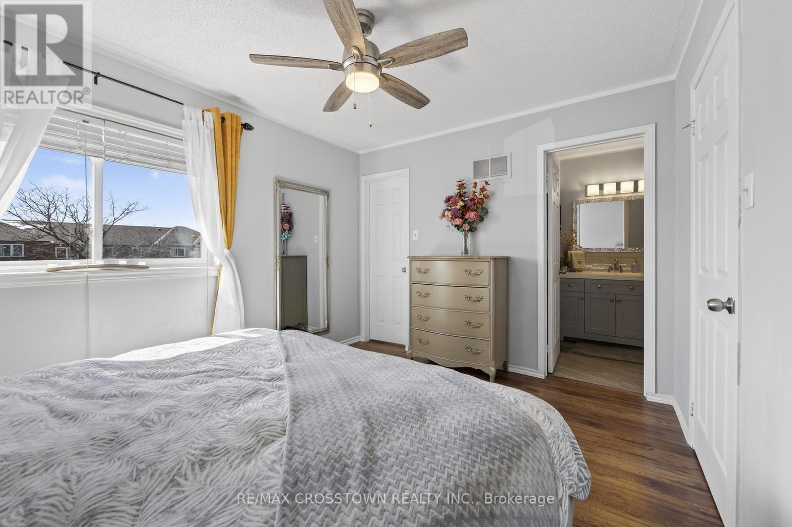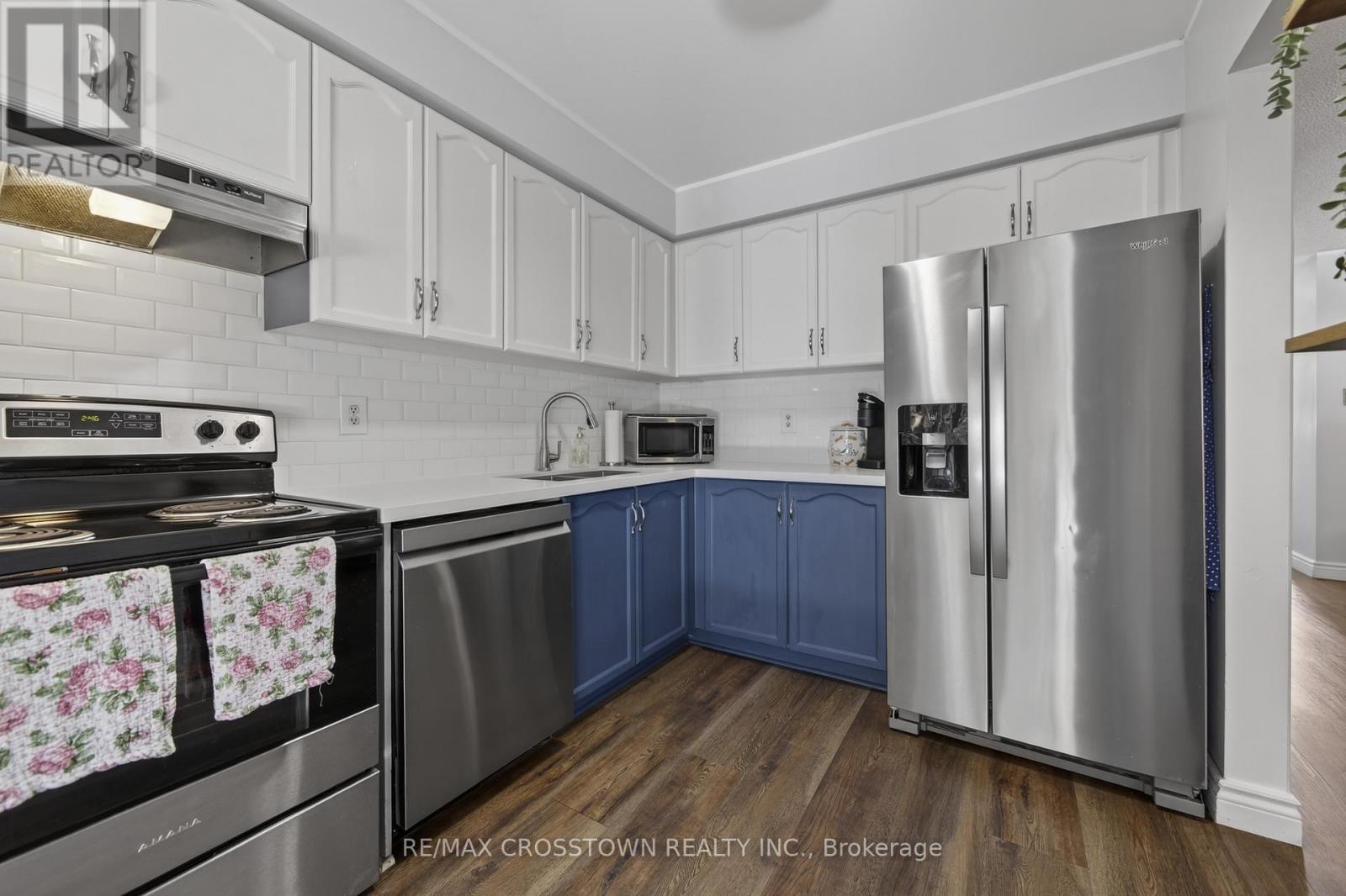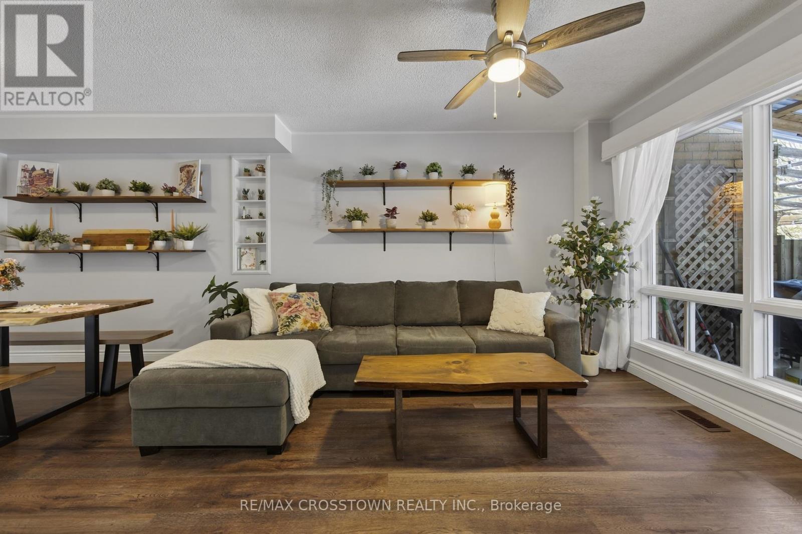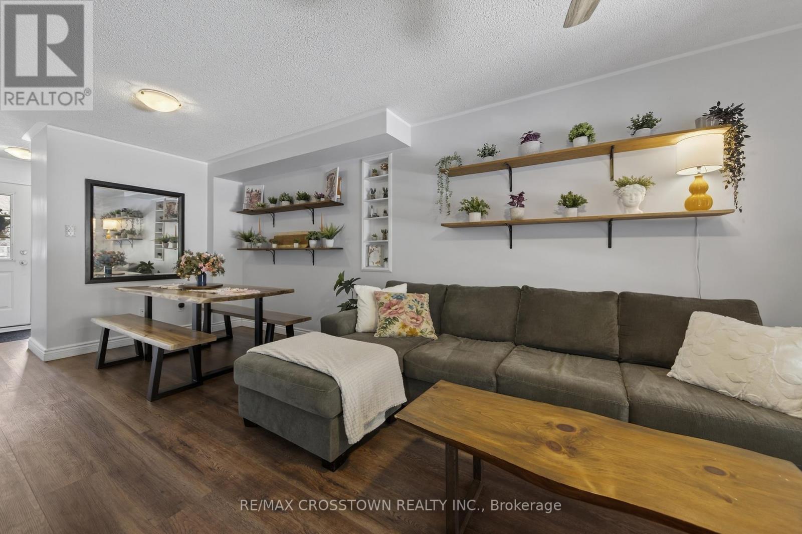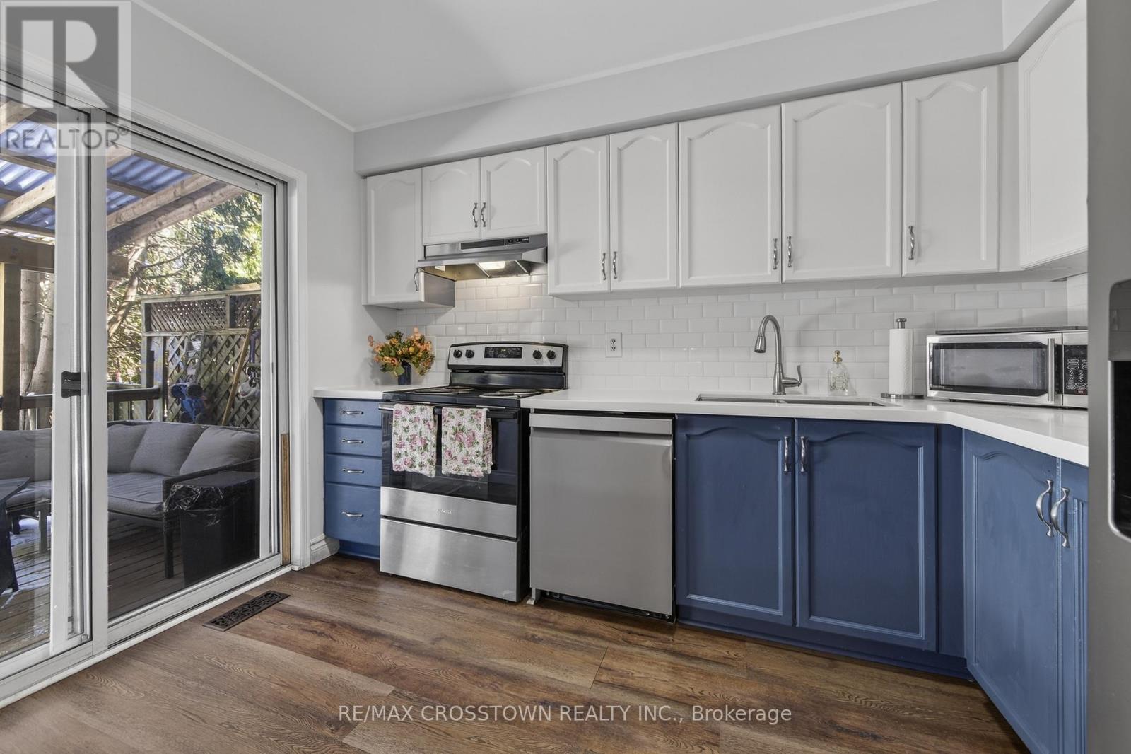 Welcome to this charming 3-bedroom townhome nestled in a sought-after, family-friendly neighbourhood-perfect for first-time buyers, young families or those looking to downsize without compromise.Step inside to find stylish laminate flooring throughout-no carpet anywhere-offering both a clean, modern look and easy maintenance. The cozy, updated kitchen features thoughtful upgrades and a bright sliding door walkout to a private wooden patio and backyard, ideal for summer BBQs, morning coffee or watching the kids play.Upstairs, the primary bedroom offers a walk-in closet and convenient semi-ensuite access to the beautifully renovated bathroom showcasing fresh, contemporary finishes that add both style and value. Two more bdrms with plenty of natural light complete the upper floor. The home's inviting curb appeal is enhanced by a front entrance finished with attractive stone, increasing your parking availability. Located close to parks, schools and everyday amenities, this move-in ready home delivers the perfect blend of style, function and location. Just move in and enjoy! (id:64974)