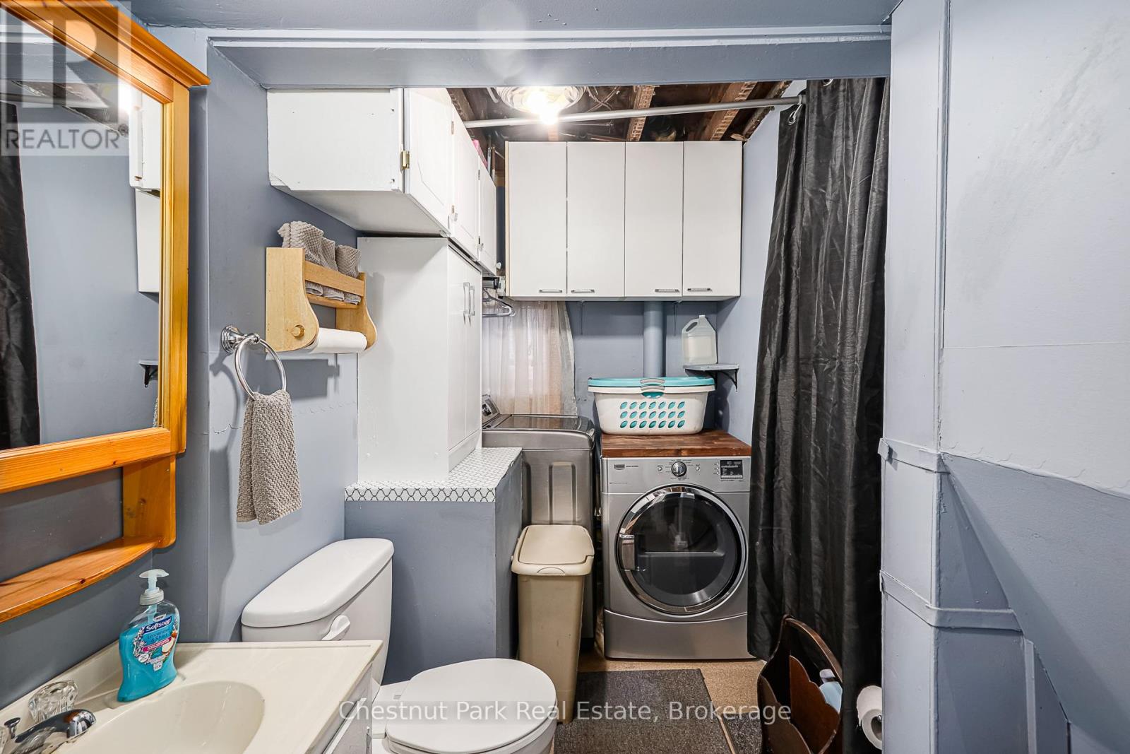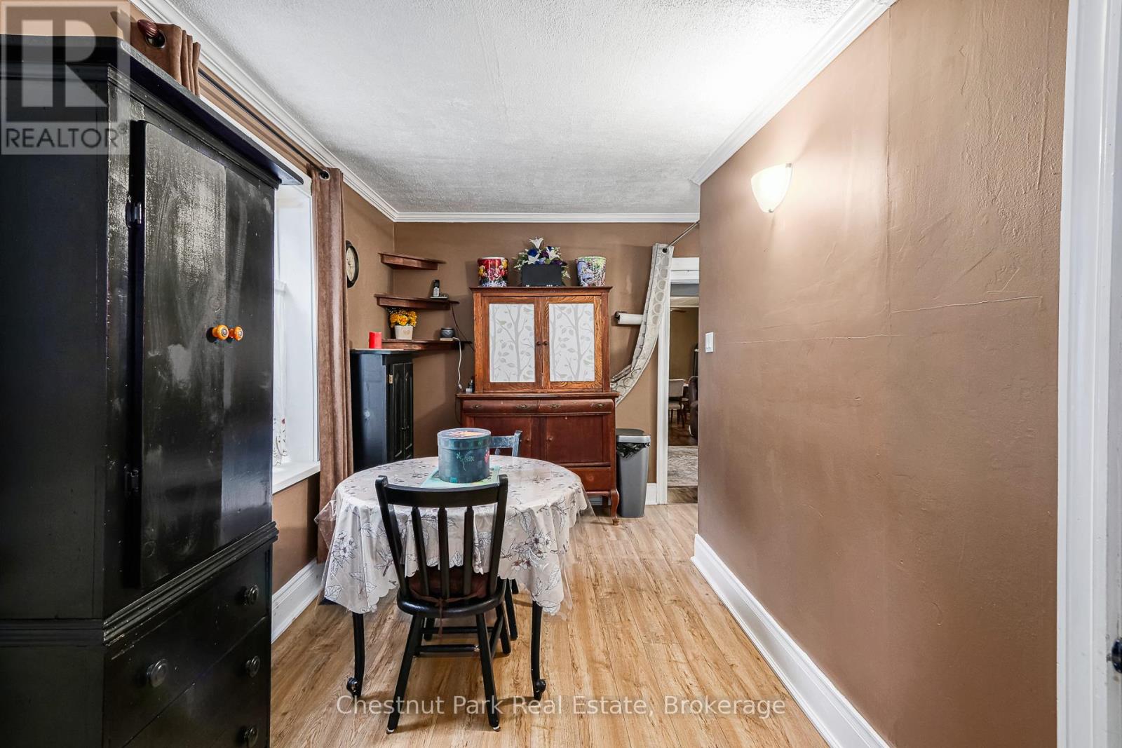 This well-maintained two-storey home offers exceptional versatility with C1 zoning, allowing for both residential and commercial uses. Ideally located within walking distance to downtown Collingwood, the YMCA, Curling Club, shops, restaurants, and the town's extensive trail system, this property combines convenience, lifestyle, and opportunity. The main floor welcomes you with a bright front sunroom, a formal dining room, convenient main-floor laundry, and a two-piece bathroom. The eat-in kitchen opens onto a spacious deck overlooking the backyard-perfect for outdoor dining, entertaining, or simply relaxing. Upstairs, you'll find three comfortable bedrooms and a four-piece bathroom, with durable laminate flooring running throughout both the main and second levels. A true highlight of the property is the impressive detached 24' x 32' garage and workshop, offering outstanding space for hobbyists, tradespeople, entrepreneurs, or anyone in need of substantial storage and workspace. Above the garage is an approximately 800 sq. ft. loft with its own separate entrance, presenting exciting potential for a studio, office, creative workspace, or possible accessory apartment (subject to approvals). The expansive backyard also features two additional garden sheds for even more storage. With flexible C1 zoning, a generous lot, and a standout garage/workshop with loft space, this property presents a rare opportunity for homeowners, investors, or business owners looking to take advantage of a highly desirable location just steps from all that Collingwood has to offer. (id:64974)