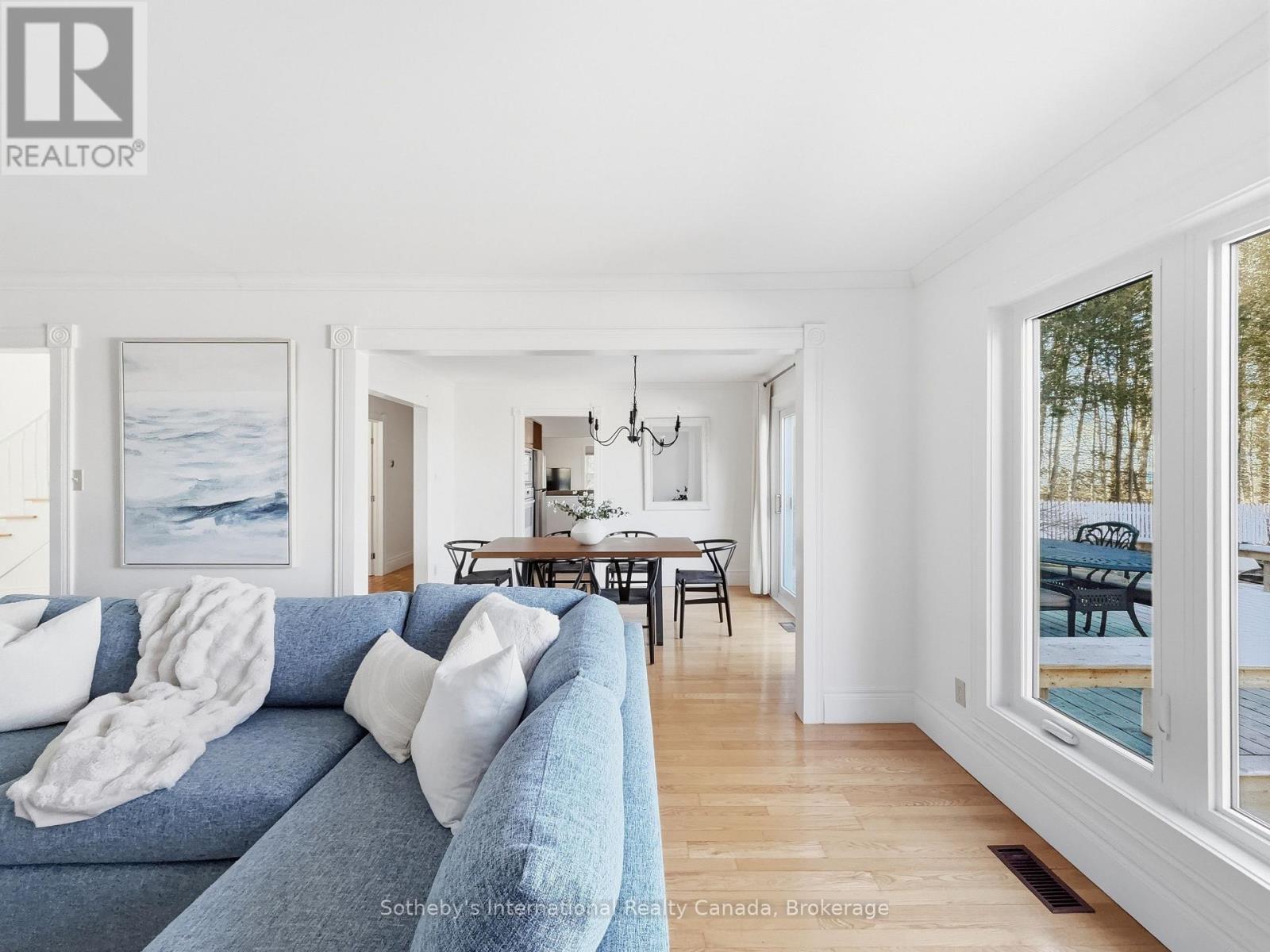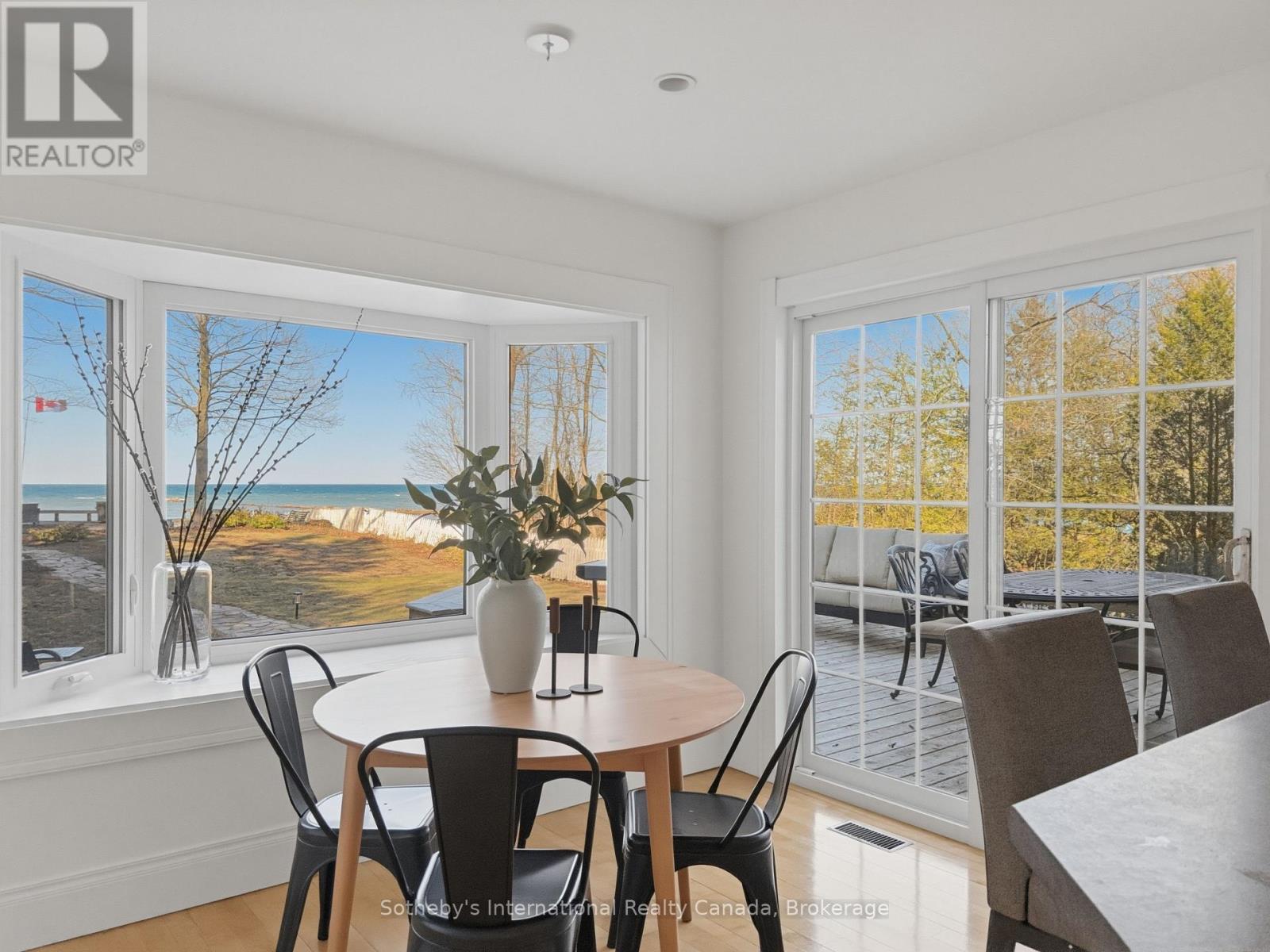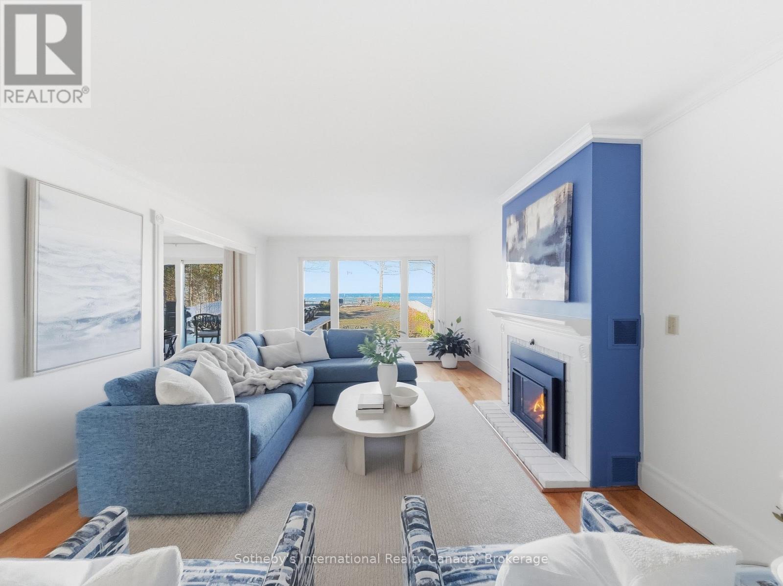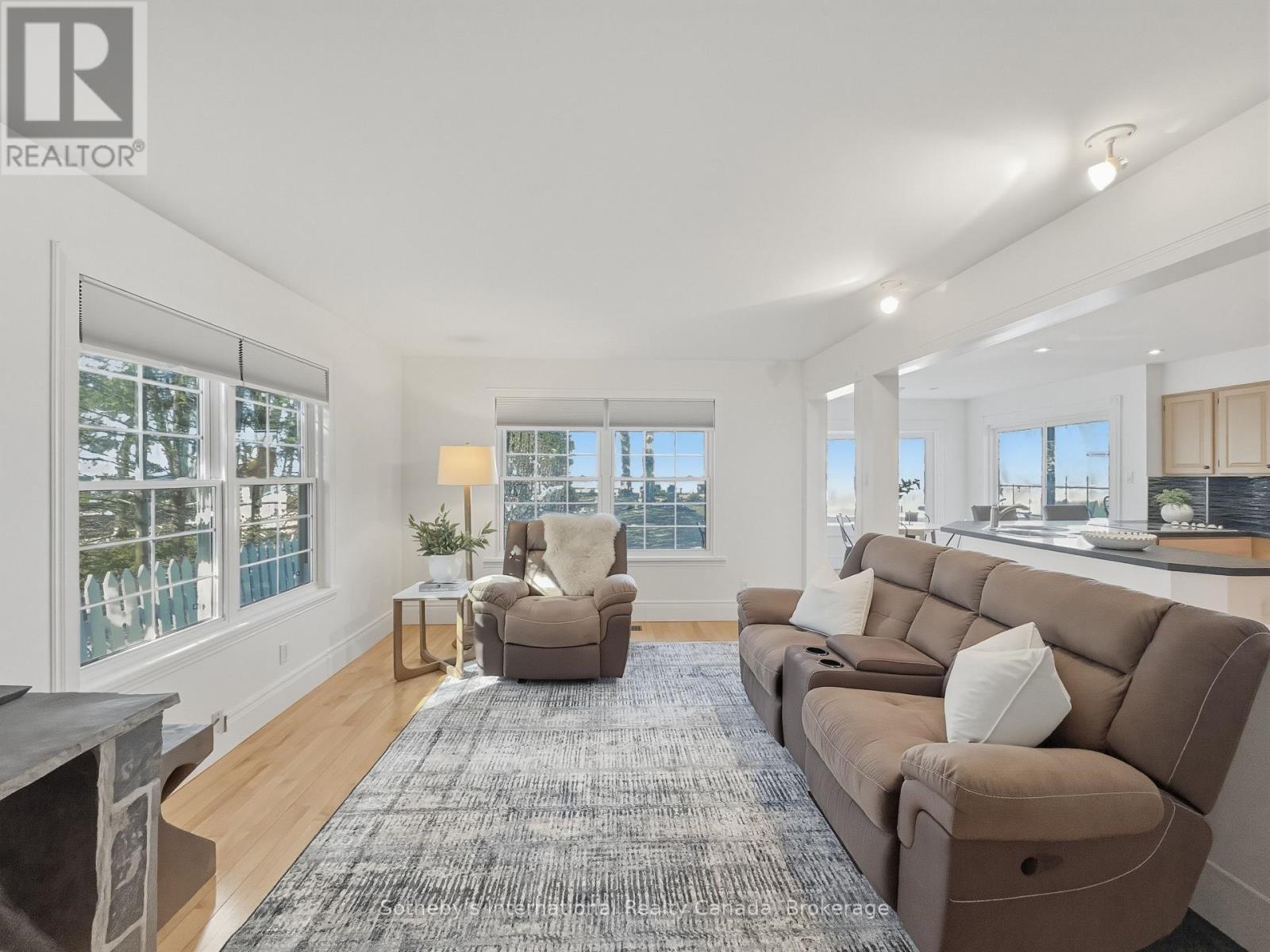 Set along the pristine shores of Georgian Bay, 47 Vera Street offers 68.54 feet of coveted waterfront and a rare private 272-foot deep lot where the calming rhythm of the water sets the pace of daily life. This stately home is enveloped by mature trees, a natural stream, and perennial gardens. A private sanctuary that feels worlds apart, yet moments from Meaford center, the charm of Meaford Harbour and Memorial Park. Step inside through a gracious foyer with a sweeping staircase that signals the elegance within. The main floor unfolds thoughtfully, beginning with a dining room where new patio doors (2024) open directly to the expansive deck, your front-row seat to the Bay. The living room anchors the heart of the home, its new picture window (2025) framing breathtaking water views while a new Valor gas fireplace (2024) keeps the space warm and inviting year-round. The kitchen flows into a sunlit breakfast area with its own Bay view, opening into a cozy family room with a wood-burning fireplace, the kind of space where evenings stretch on beautifully. A main-floor office or overflow bedroom, laundry room, and 3-piece bath round out the practical side, with inside access to the 2-car garage. Upstairs, three generous bedrooms and a 4-piece bath are joined by a serene primary suite complete with walk-in closets, a gas fireplace, and a spa-like ensuite with a jacuzzi tub. Outside, the story comes alive. A firepit, shoreline deck, and manicured gardens lead you to the water's edge, where sunrises over the Bay are simply part of the routine. A dedicated gas line for the BBQ makes alfresco dining effortless. The home with ample parking sits on full municipal services and natural gas, the perfect foundation for a property this special. A new A/C with Ecobee thermostat, furnace, on-demand hot water, refrigerator, and washer/dryer (all 2025) mean this turnkey waterfront retreat is ready for you, whether it's a full-time residence, a seasonal cottage retreat, or a ski chalet. (id:64974)