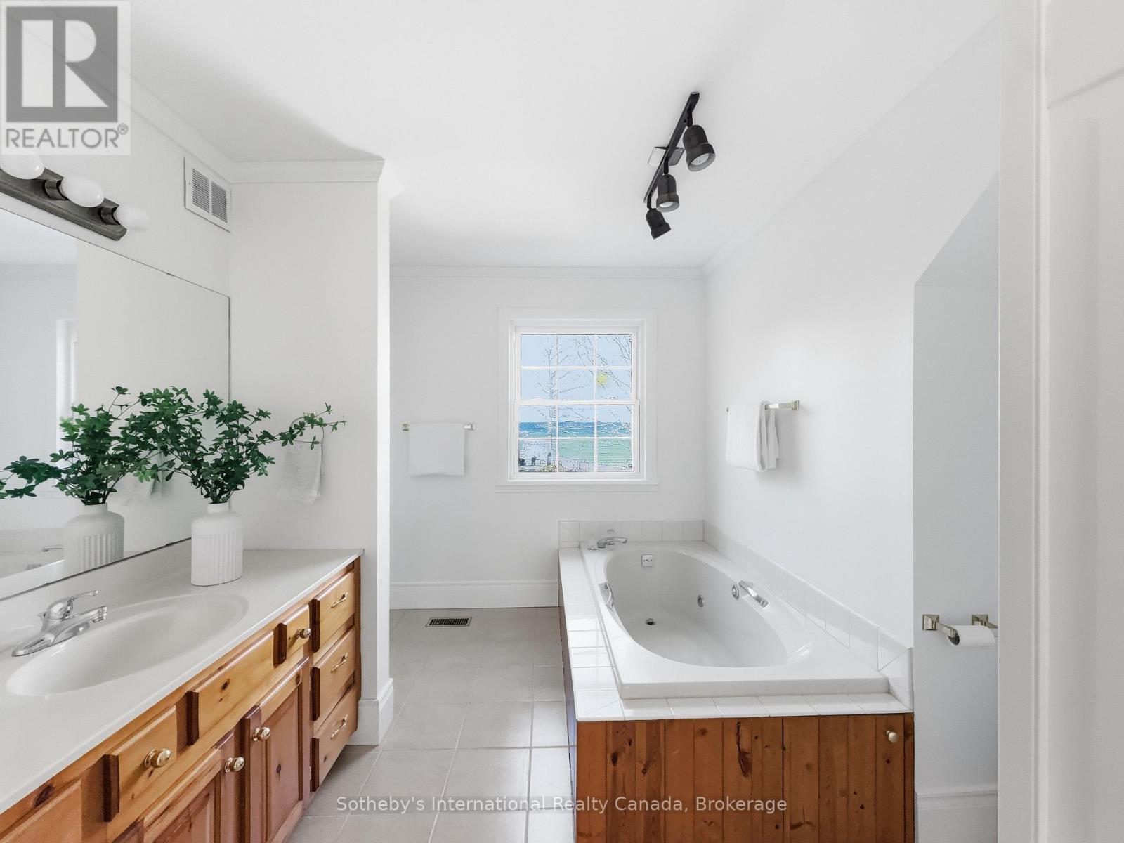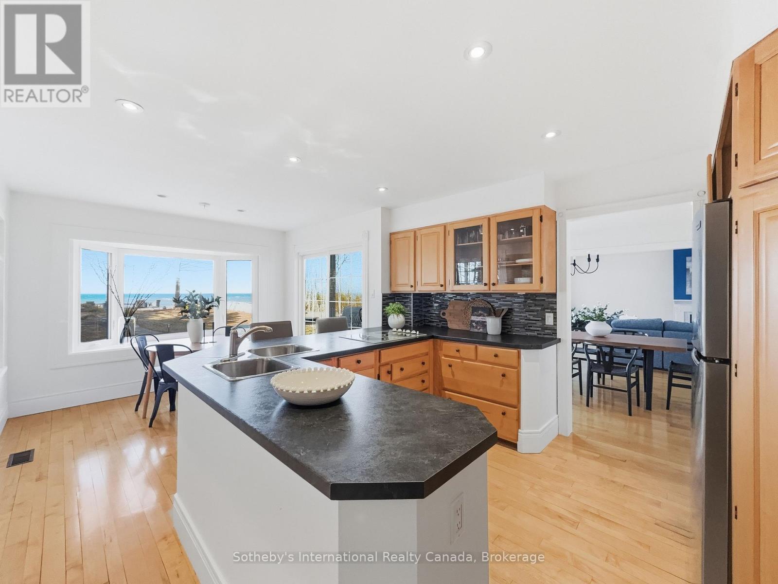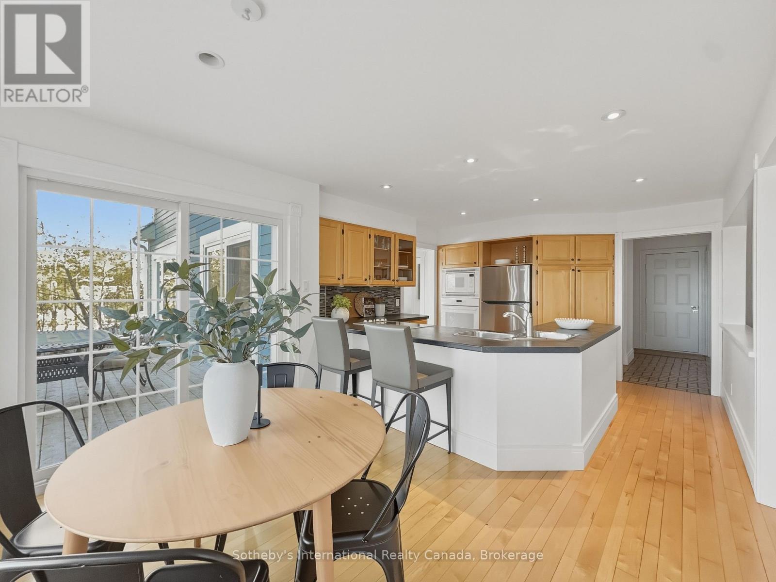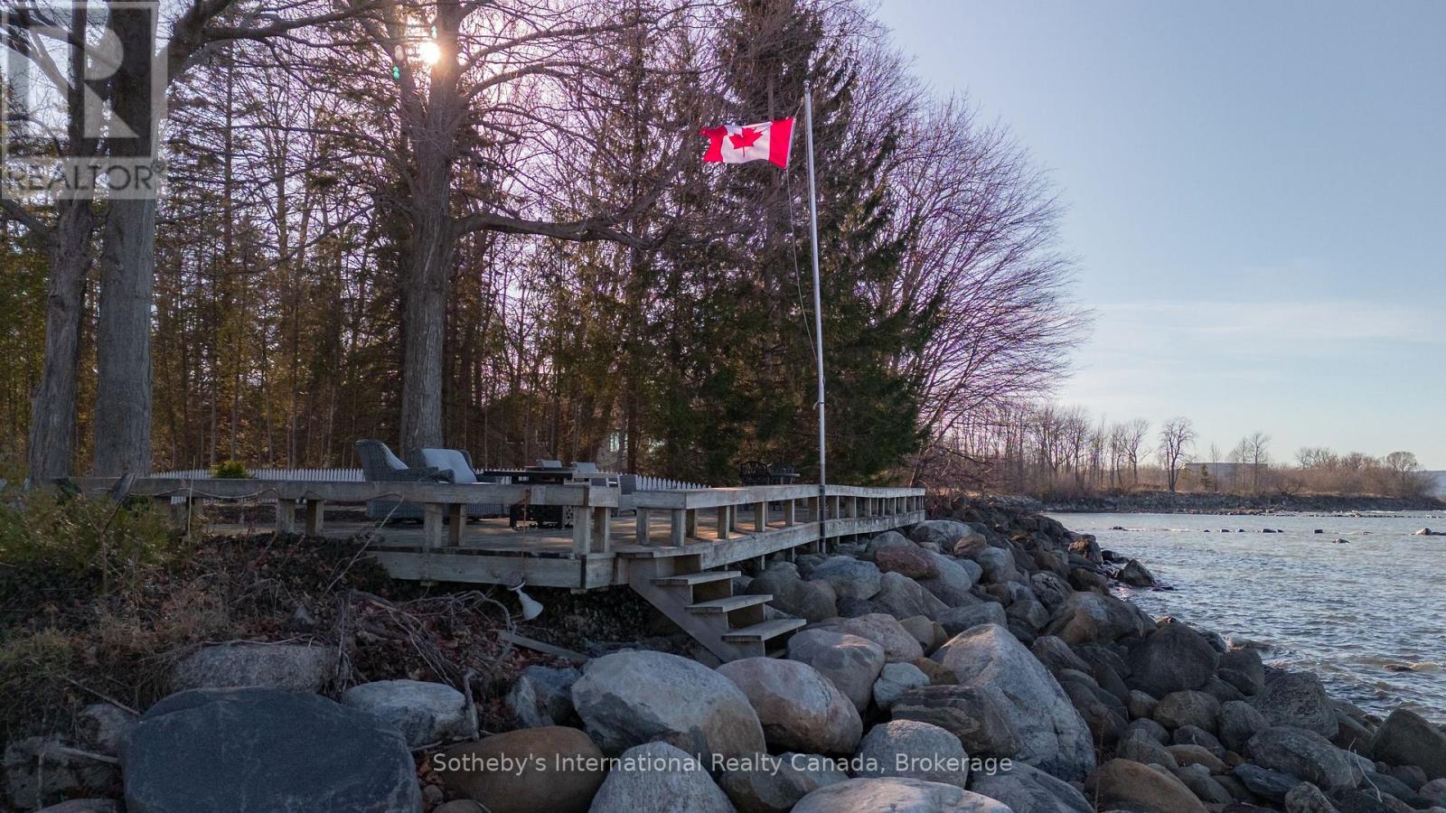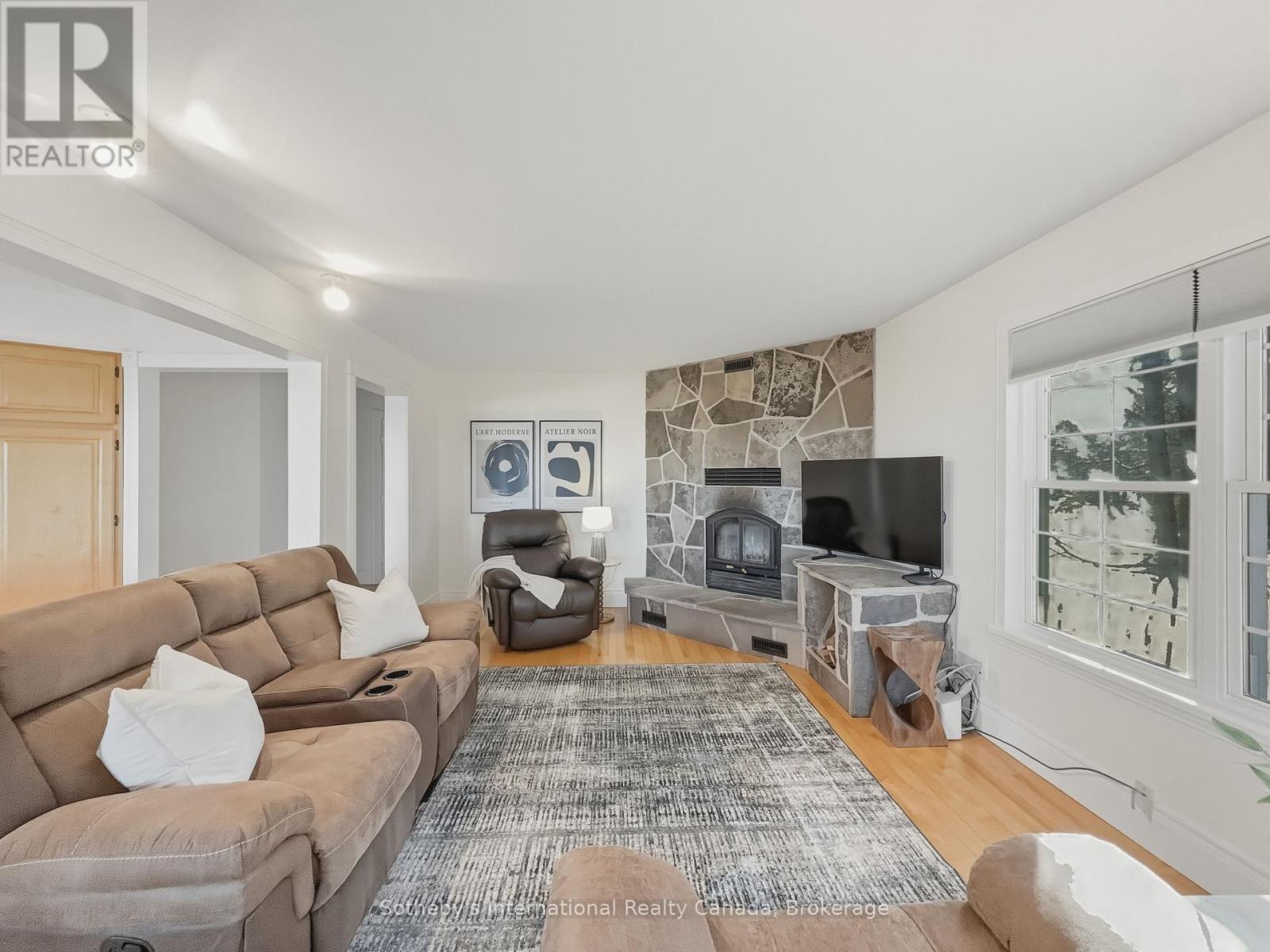 Set along the pristine shores of Georgian Bay, 47 Vera Street offers 68.54 feet of coveted waterfront and a rare private 272-foot deep lot where the calming rhythm of the water sets the pace of daily life. This stately home is enveloped by mature trees, a natural stream, and perennial gardens. A private sanctuary that feels worlds apart, yet moments from Meaford center, the charm of Meaford Harbour and Memorial Park. Step inside through a gracious foyer with a sweeping staircase that signals the elegance within. The main floor unfolds thoughtfully, beginning with a dining room where new patio doors (2024) open directly to the expansive deck, your front-row seat to the Bay. The living room anchors the heart of the home, its new picture window (2025) framing breathtaking water views while a new Valor gas fireplace (2024) keeps the space warm and inviting year-round. The kitchen flows into a sunlit breakfast area with its own Bay view, opening into a cozy family room with a wood-burning fireplace, the kind of space where evenings stretch on beautifully. A main-floor office or overflow bedroom, laundry room, and 3-piece bath round out the practical side, with inside access to the 2-car garage. Upstairs, three generous bedrooms and a 4-piece bath are joined by a serene primary suite complete with walk-in closets, a gas fireplace, and a spa-like ensuite with a jacuzzi tub. Outside, the story comes alive. A firepit, shoreline deck, and manicured gardens lead you to the water's edge, where sunrises over the Bay are simply part of the routine. A dedicated gas line for the BBQ makes alfresco dining effortless. The home with ample parking sits on full municipal services and natural gas, the perfect foundation for a property this special. A new A/C with Ecobee thermostat, furnace, on-demand hot water, refrigerator, and washer/dryer (all 2025) mean this turnkey waterfront retreat is ready for you, whether it's a full-time residence, a seasonal cottage retreat, or a ski chalet. (id:64974)