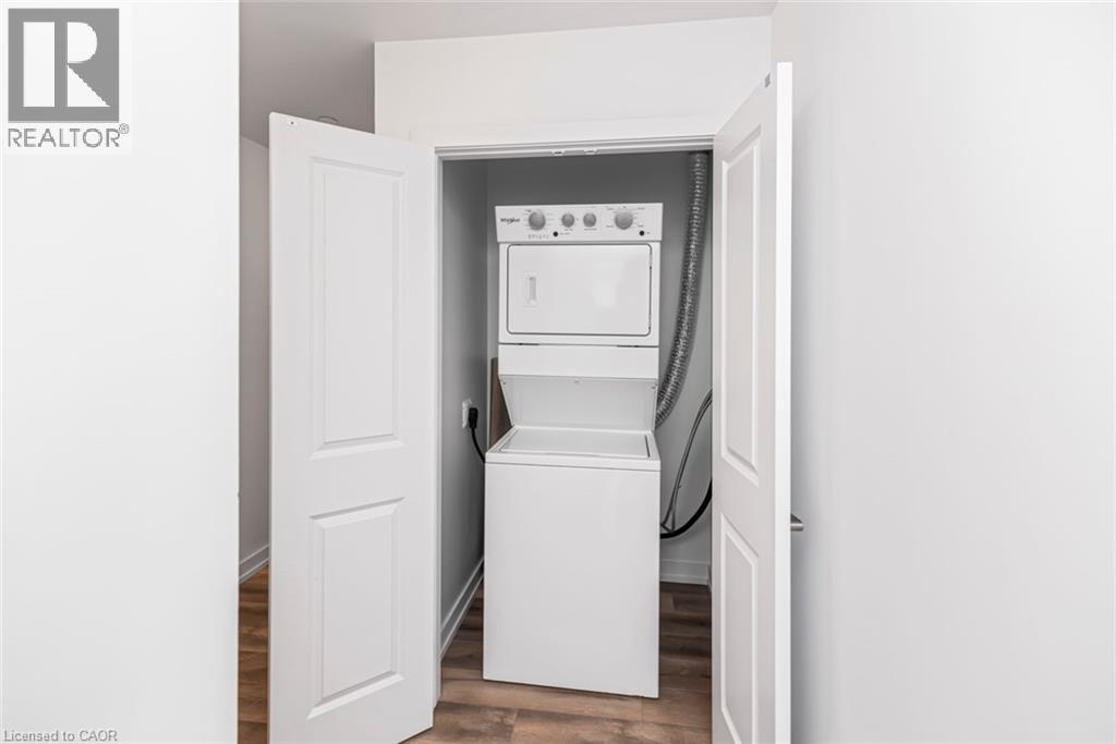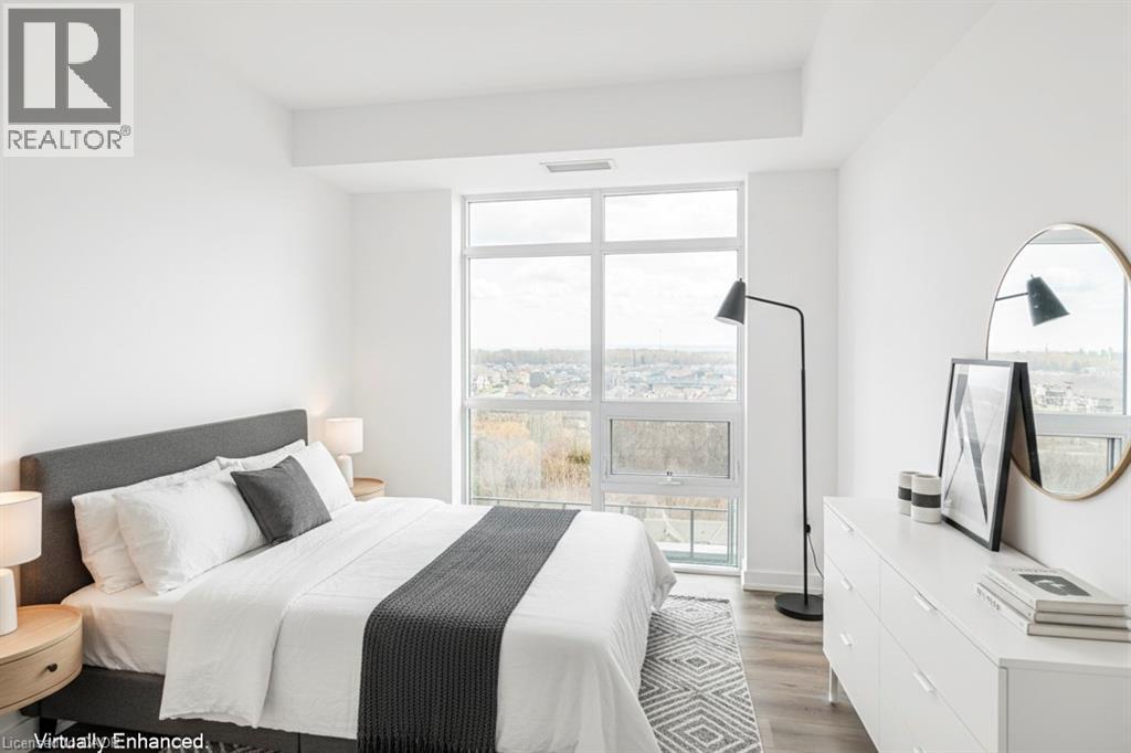 Welcome to this stunning 10th-floor unit in the highly sought-after Trend 3 community! Step into a bright and inviting 2-bedroom, condo. The open concept layout seamlessly connects the modern kitchen and living area, featuring brand-new stainless steel appliances, a stylish breakfast bar with quartz counter tops, and direct access to your private balcony w/exposure to two sides. A well-appointed 4-piece bathroom and the convenience of in-suite laundry complete this thoughtfully designed space. Enjoy a lifestyle of comfort and convenience with exceptional building amenities, including vibrant party rooms, a state of the art fitness center, scenic roof top patios, and secure bike storage. Located in the heart of Waterdown, this home features effortless access to top-rated dining, shopping, schools, and picturesque parks. Included with the unit is 1 owned surface parking space and an owned locker for extra storage. Experience contemporary living at its finest in this exceptional condo (id:64974)