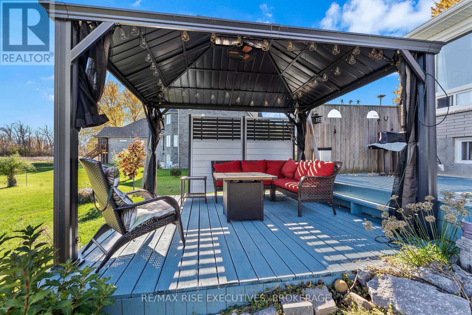 Experience exceptional waterfront living on the beautiful Napanee River, offering panoramic views, calm waters, and a rare flat, gently sloping property leading right to the shoreline. Enjoy the peace and privacy of riverfront life while still being within town limits and on full municipal services-including natural gas, a rare feature for waterfront properties. Step inside to an inviting open-concept layout designed to maximize water views. The spacious living and dining area flows openly to the outdoors, creating a seamless connection to nature. Floor-to-ceiling windows frame the river, and a cozy gas fireplace adds warmth and ambiance. This home features 2 bedrooms on the main level and 2 additional bedrooms in the lower level, offering excellent in-law suite potential with a private walk-down entry from the garage. The attached two-car garage provides convenience and ample storage. Outside, a large two-tier deck with a covered gazebo offers the perfect setting for relaxing, entertaining, or dining while overlooking the water-a true extension of your living space, morning through evening. (id:64974)