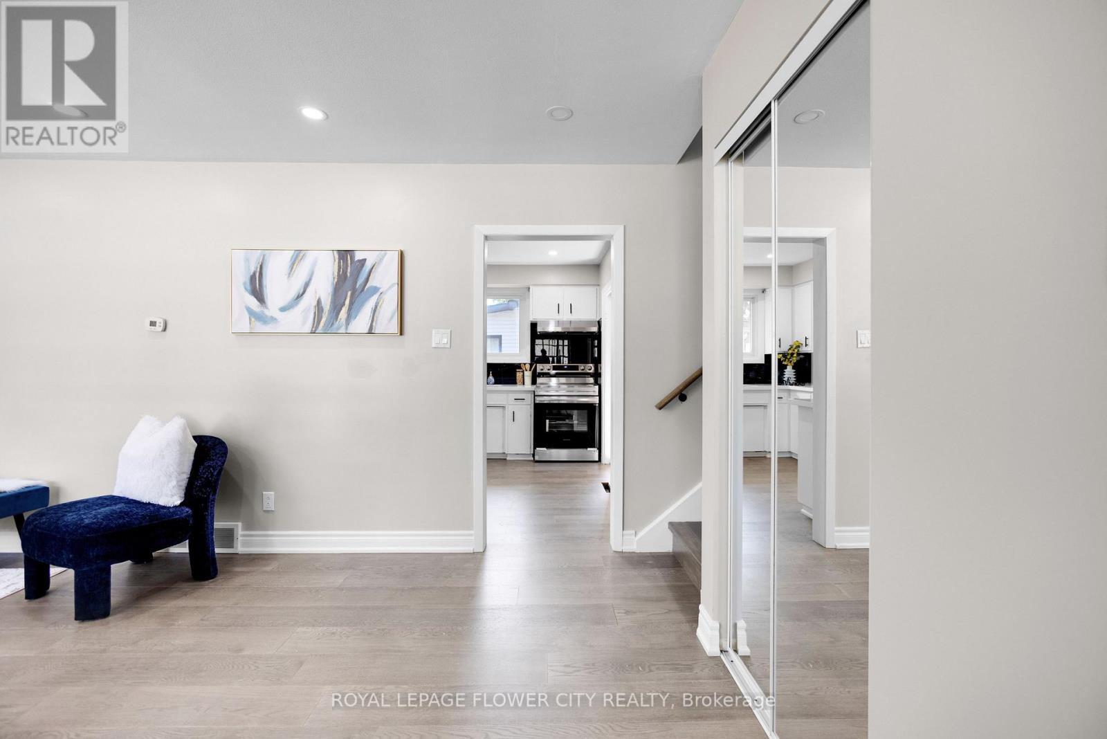 Welcome to this stunningly updated 3-bedroom, 2-bathroom side-split detached home, ideally situated on a premium corner lot in the highly desirable Stanley Park neighborhood. Offering exceptional curb appeal, a functional layout, and extensive recent upgrades, this home is truly move-in ready. Step inside to discover a bright and airy interior featuring new hardwood flooring, recessed LED pot lights, and fresh modern paint throughout. The thoughtfully renovated kitchen is a chefs dream, complete with quartz countertops, a stylish backsplash, stainless steel appliances, and ample cabinetry perfect for both everyday living and entertaining. Both bathrooms have been fully updated, including the addition of a brand-new second washroom, enhancing comfort and convenience for families and guests. Additional laundry connection added on second level for ease and comfort. The fully finished lower level offers additional living space with a cozy recreation room featuring a fireplace ideal for relaxing or entertaining. Outdoors, enjoy a generous side yard and expansive backyard, providing the perfect setting for gardening, family activities, or summer barbecues. The corner lot location enhances privacy and adds to the home's appeal. Located in a vibrant, family-friendly neighborhood, this home is just minutes from top-rated schools, parks, shopping centers, transit, and offers easy access to the expressway and Highway 401. This home wont last long! Solid family home awaits your ideas and vision! Pictures are from previous listing. (id:64974)