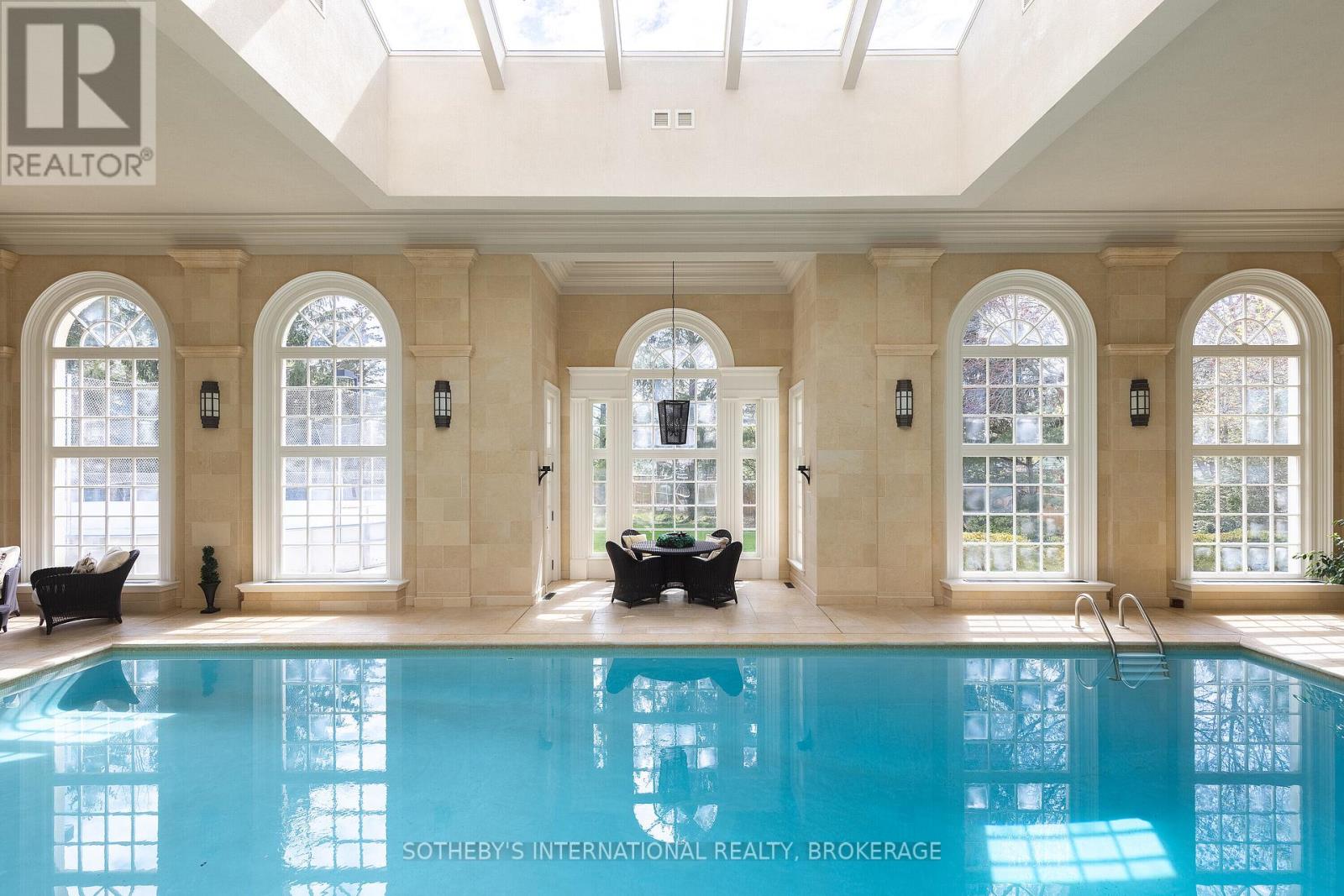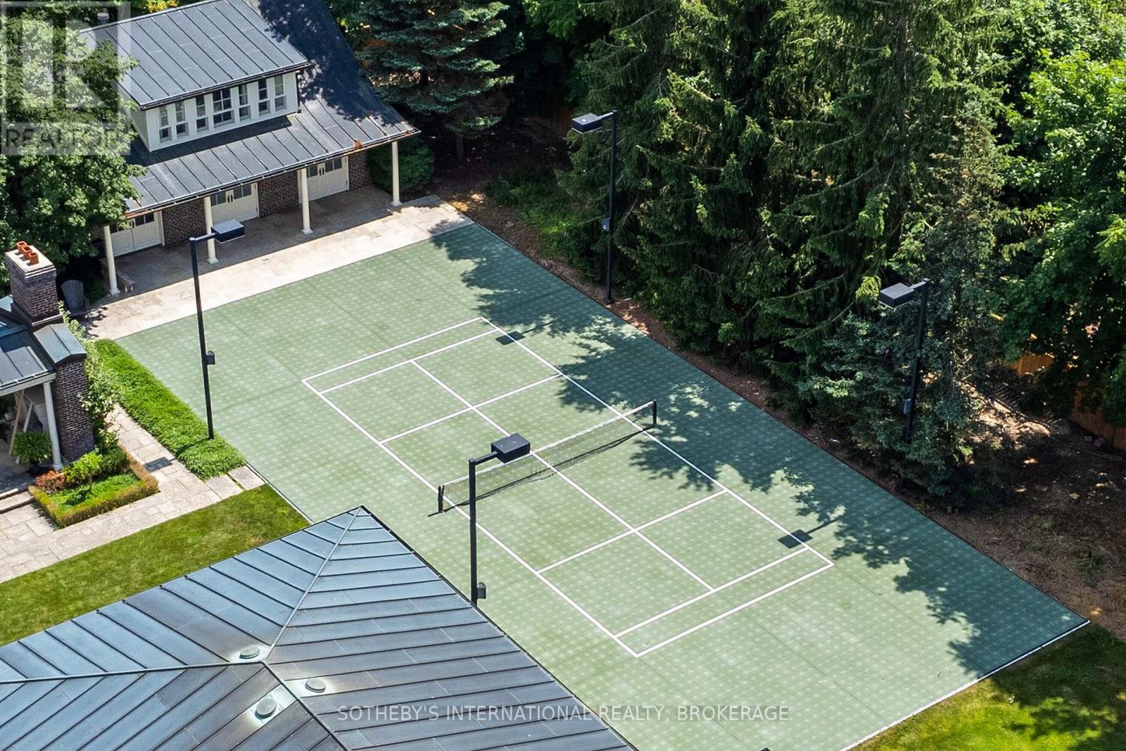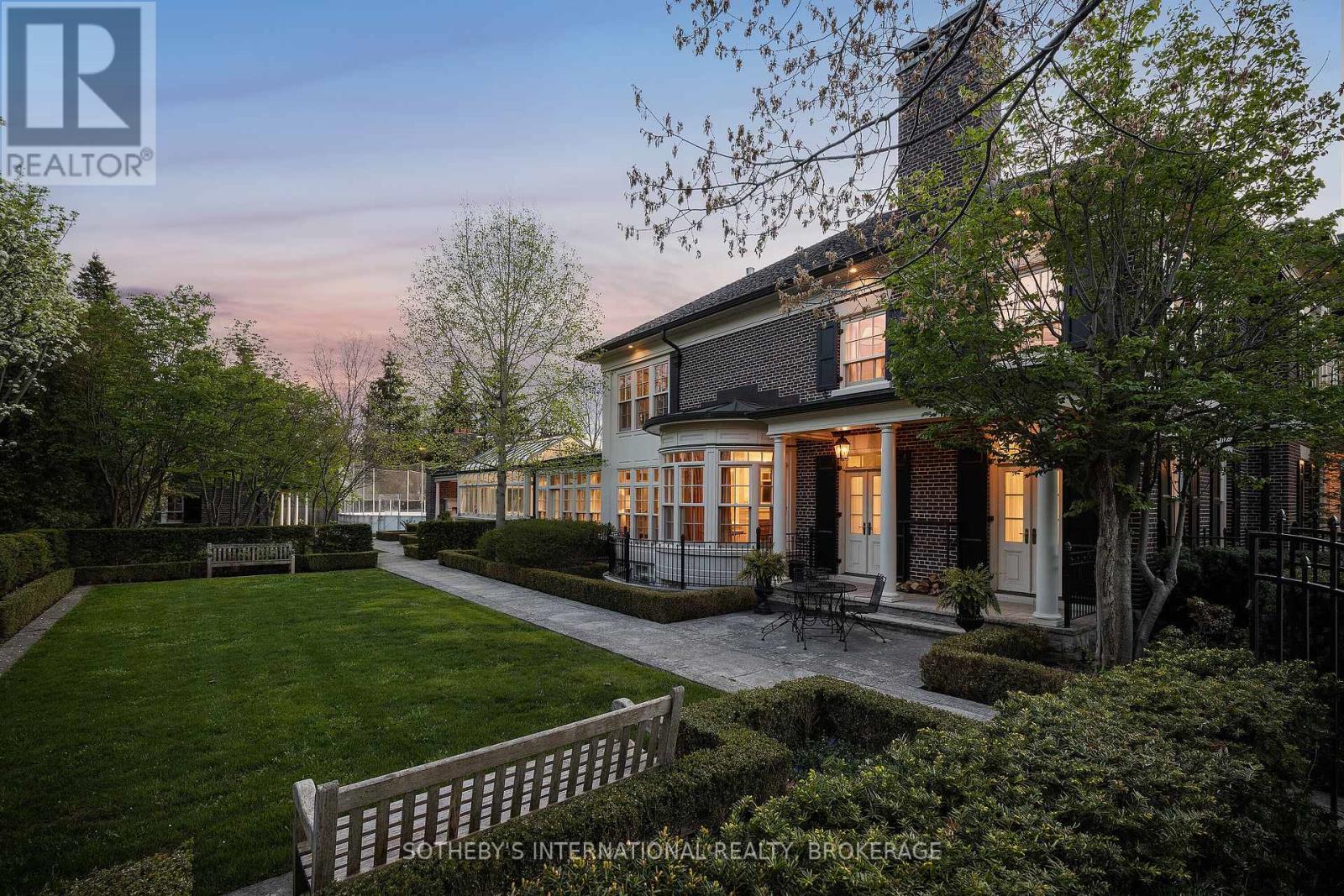 THE MOST PRESTIGIOUS HOME IN NIAGARA ON THE LAKE, this spectacular family estate in Old Towne, (featured in Canadian House and Home) has over 15,000 sq ft of living space. On nearly an acre of land just steps to the lake, this gorgeous residence manifests timeless elegance and warmth inside and out. Custom designed with exquisite attention to detail, it is both an entertainer's dream and true family home. The main floor features an office, formal living room with a fireplace and walkouts, dining room with bay window and fireplace, magnificent panelled games room with wet bar and fireplace. The chef's kitchen has a large island, Miele appliances & walkouts to a four season sunporch, custom greenhouse and conservatory, leading to outdoor fireplace, manicured gardens, lighted stone pathways and iron gates, all very private. Upstairs, a stunning large mahogany panelled office has a fireplace and a private two piece. The luxurious primary suite has a sitting room, sunroom, panelled walk in closet and six piece ensuite. All five bedrooms include ensuites. Enjoy the professional level oversized fitness room and convenient second floor laundry. The lower level has a craft room with built in cabinetry, family room and a 1000 bottle custom wine cellar. One spectacular feature of this home is the indoor pool house with an 18'x40' salt water pool enclosed in imported Jerusalem limestone, copper roof and skylights, hot tub, his/her change rooms each with a three piece bath, speakers, wet bar, fridge, dishwasher, mahogany windows and doors opening to the garden and patio. The 40'x80' rink easily converts to a paddle ball court for seasonal use. The brick Field House has a change room, three piece bath and upstairs studio. Enjoy the heated four car garage with two sinks and floor drains. The home features extensive A/C systems, multiple LED screens, smart home lighting and sound, TV, and cameras. This outstanding property is a jewel in the heart of Ontario Wine Country. (id:64974)