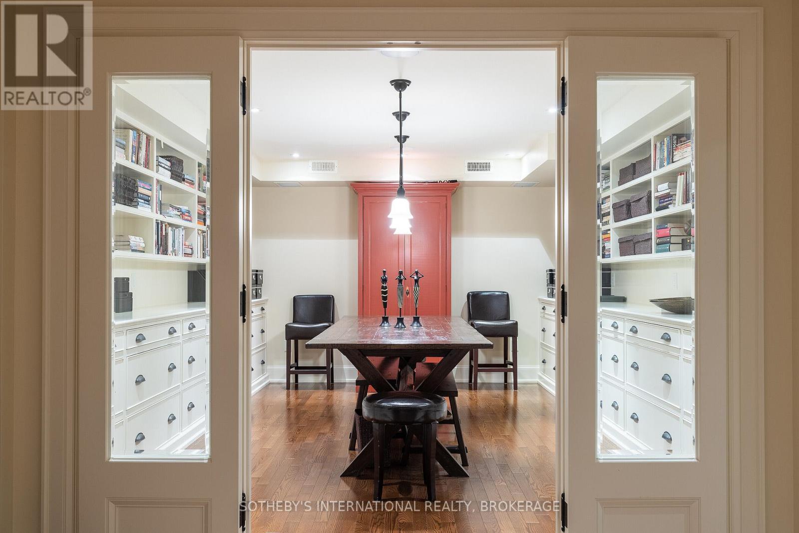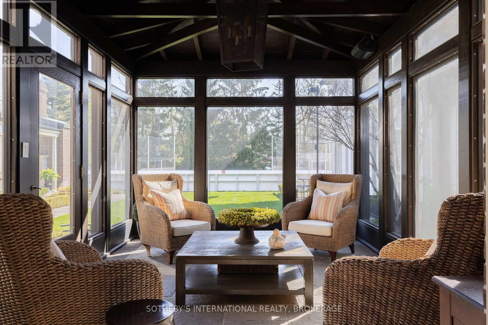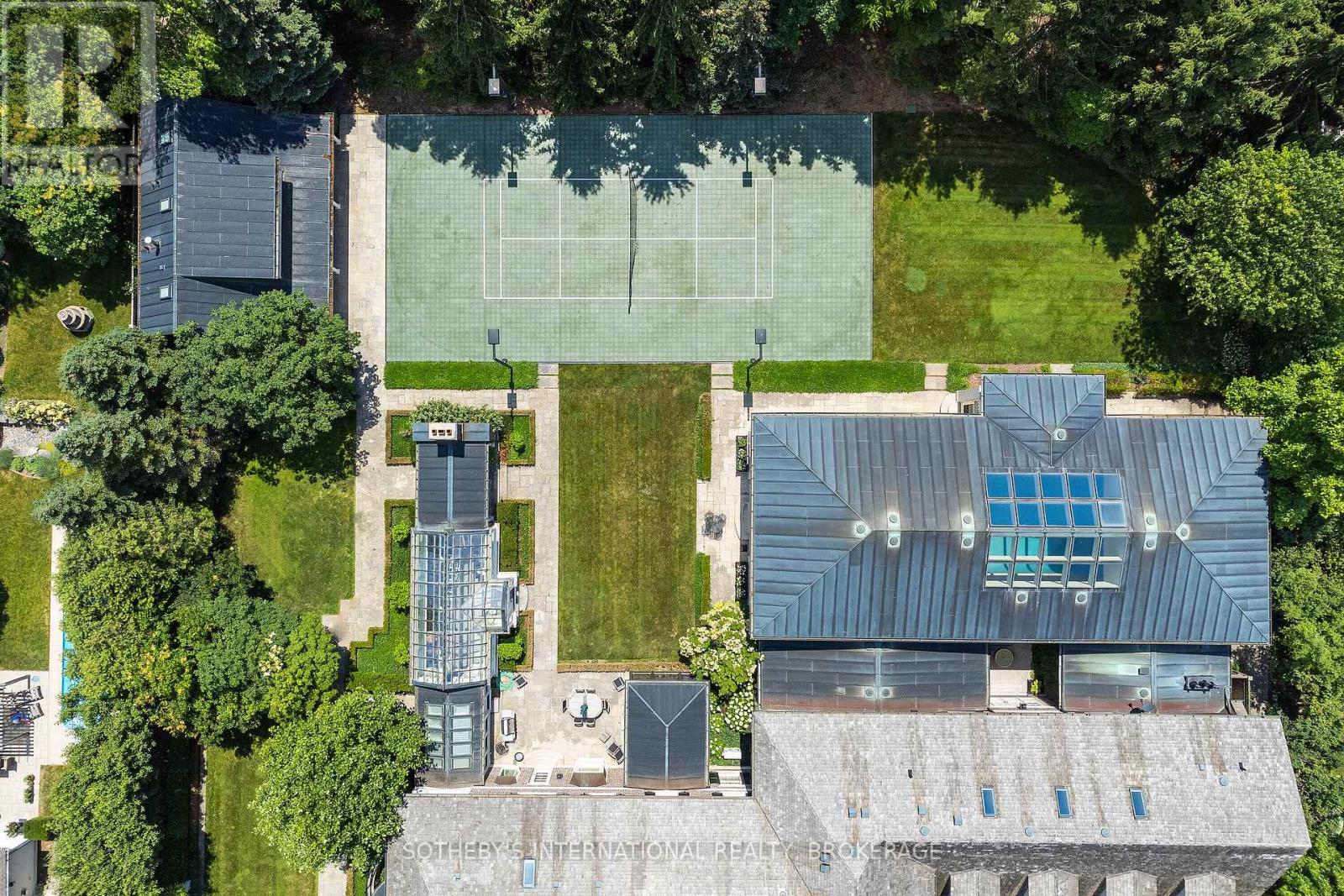 THE MOST PRESTIGIOUS HOME IN NIAGARA ON THE LAKE, this spectacular family estate in Old Towne, (featured in Canadian House and Home) has over 15,000 sq ft of living space. On nearly an acre of land just steps to the lake, this gorgeous residence manifests timeless elegance and warmth inside and out. Custom designed with exquisite attention to detail, it is both an entertainer's dream and true family home. The main floor features an office, formal living room with a fireplace and walkouts, dining room with bay window and fireplace, magnificent panelled games room with wet bar and fireplace. The chef's kitchen has a large island, Miele appliances & walkouts to a four season sunporch, custom greenhouse and conservatory, leading to outdoor fireplace, manicured gardens, lighted stone pathways and iron gates, all very private. Upstairs, a stunning large mahogany panelled office has a fireplace and a private two piece. The luxurious primary suite has a sitting room, sunroom, panelled walk in closet and six piece ensuite. All five bedrooms include ensuites. Enjoy the professional level oversized fitness room and convenient second floor laundry. The lower level has a craft room with built in cabinetry, family room and a 1000 bottle custom wine cellar. One spectacular feature of this home is the indoor pool house with an 18'x40' salt water pool enclosed in imported Jerusalem limestone, copper roof and skylights, hot tub, his/her change rooms each with a three piece bath, speakers, wet bar, fridge, dishwasher, mahogany windows and doors opening to the garden and patio. The 40'x80' rink easily converts to a paddle ball court for seasonal use. The brick Field House has a change room, three piece bath and upstairs studio. Enjoy the heated four car garage with two sinks and floor drains. The home features extensive A/C systems, multiple LED screens, smart home lighting and sound, TV, and cameras. This outstanding property is a jewel in the heart of Ontario Wine Country. (id:64974)