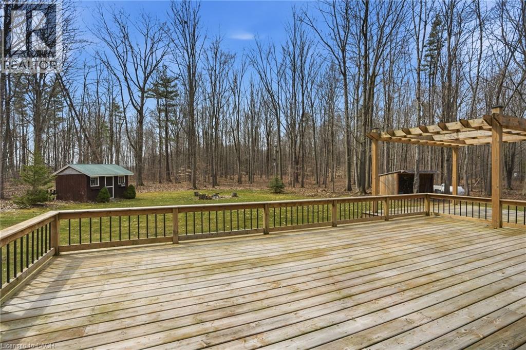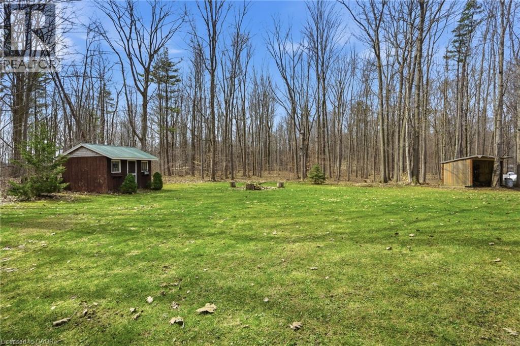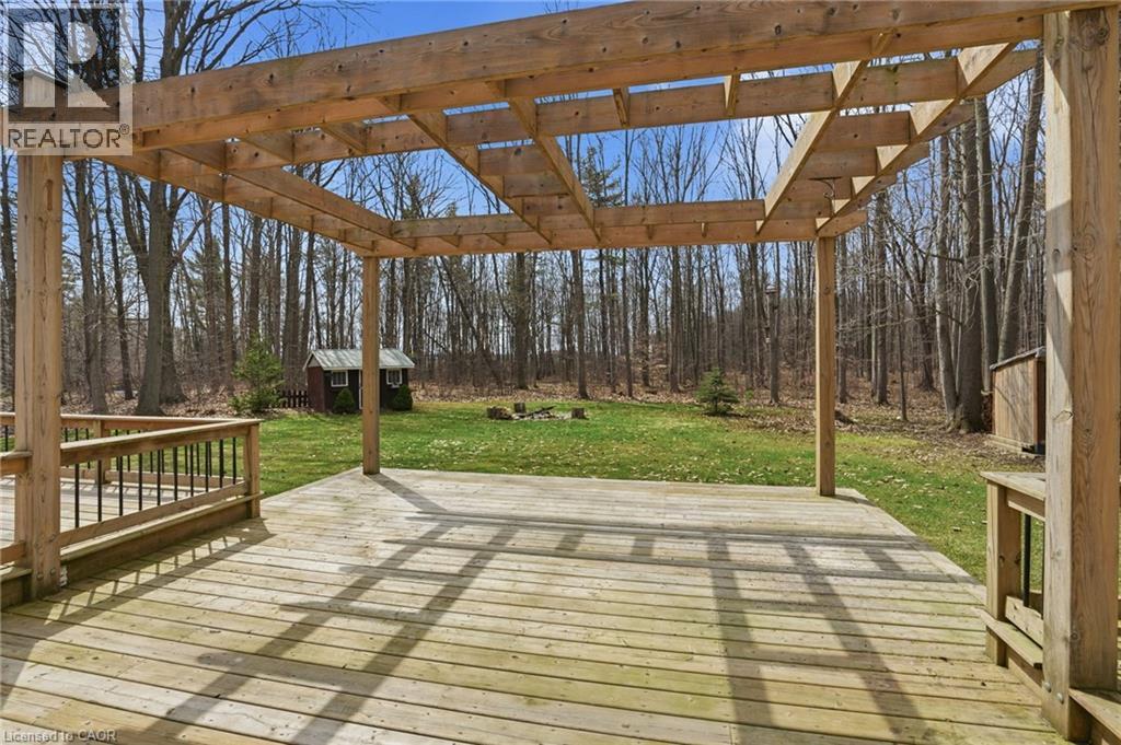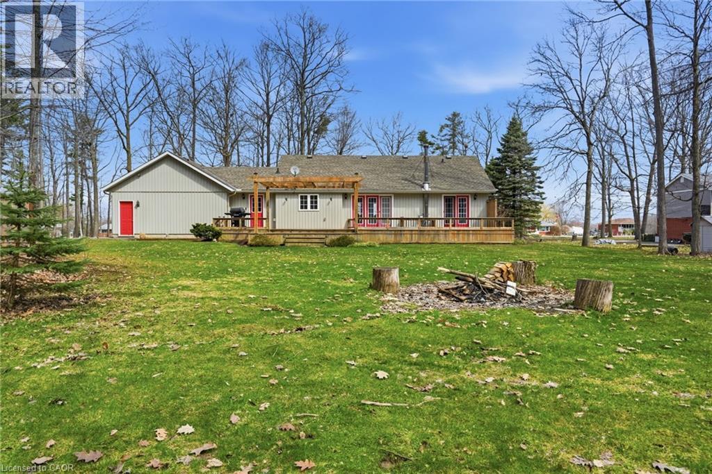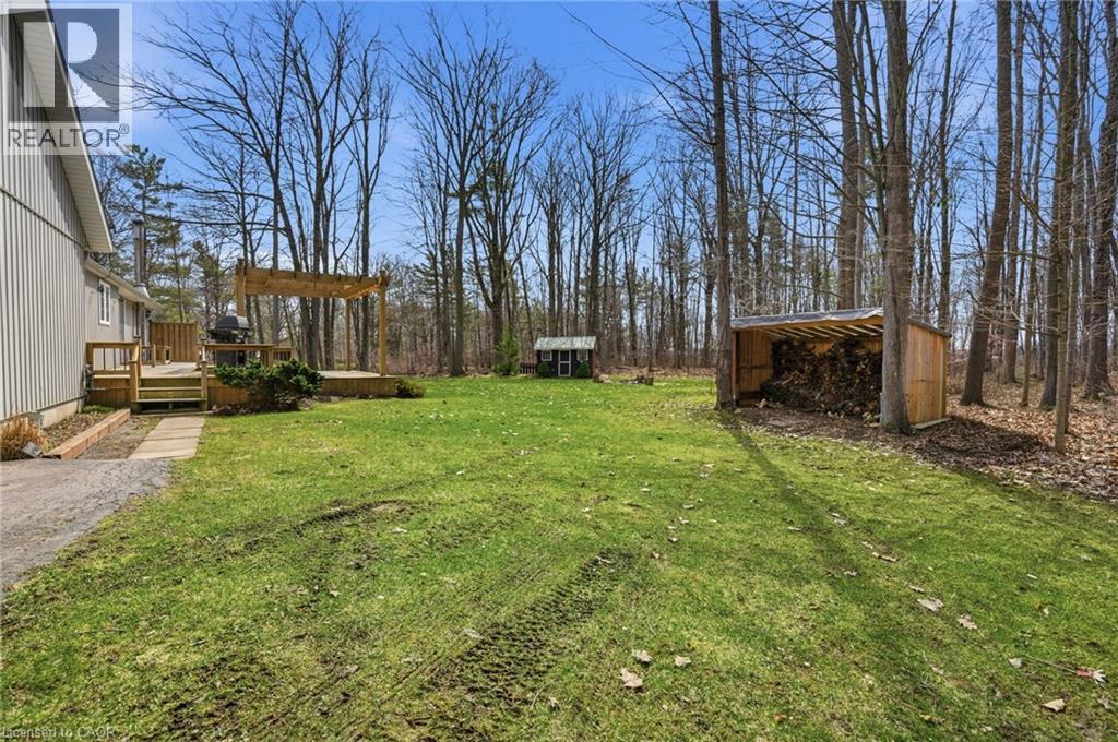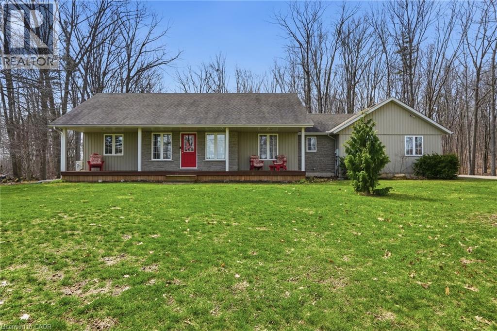 PRIVATE COUNTRY LIVING JUST MINUTES FROM TOWN! This beautiful 1,230 sqft bungalow built in 2000 by JL Cowan features 2+1 beds, 2.5 baths & is your own private slice of paradise. Nestled on a serene 4-acre wooded lot surrounded by nature, this property is ideally located just 2 mins from Byng Island Conservation & only 5 mins to downtown Dunnville. The covered front porch welcomes you & is the perfect place for enjoying quiet mornings & relaxing evenings. Inside, the open-concept living room, dining area, & kitchen is ideal for entertaining. The living room features a cathedral ceiling, cozy fireplace & patio door leading to the backyard. The kitchen is well-appointed w/ maple cabinetry, granite countertops & all appliances including a gas stove. The spacious primary features a 4pc ensuite, his & hers closets & a patio door w/ direct access to the outdoors. A 2nd bedroom, 3pc bath, laundry room & mudroom complete the main level. The fully finished basement provides additional living space including a rec room w/ bar area & Vermont Castings wood stove, a 3rd bedroom, 2pc bathroom & ample storage. Step outside to enjoy the multi-tiered deck w/ pergola overlooking the private backyard surrounded by mature trees. Additional backyard features include a shed & wood storage area. Ample parking is available w/ a private driveway accommodating up to 10 vehicles along w/ an attached 2-car garage. Updates include furnace & shingles (approx 2015 by the previous owners), all back decking & pergola built approx 2019, cistern pump replaced approx 2022, kitchen cabinets refinished approx 2023, air conditioner (w/ capacity for heat pump, not wired) & hot water heater (both approx 2025). The home is serviced by a 6,000-gallon cistern, septic system, & propane tank (rental). Don’t miss this rare opportunity to enjoy peaceful country living w/ convenient access to nearby amenities - this property is a must-see! (id:64974)