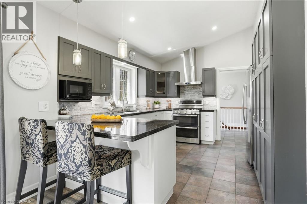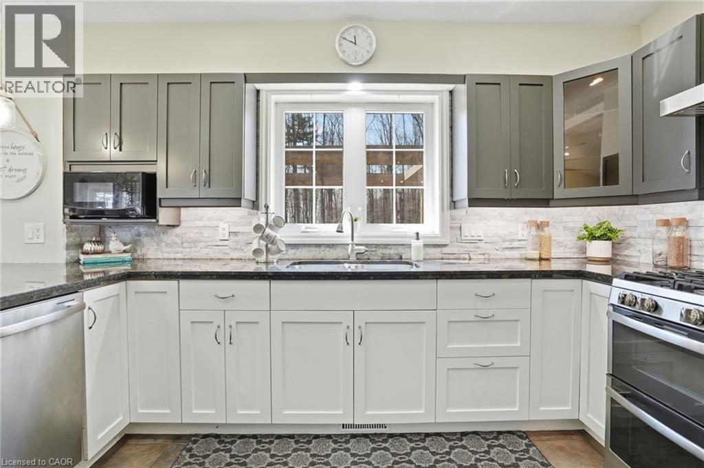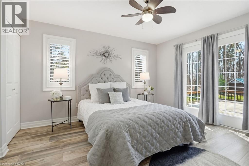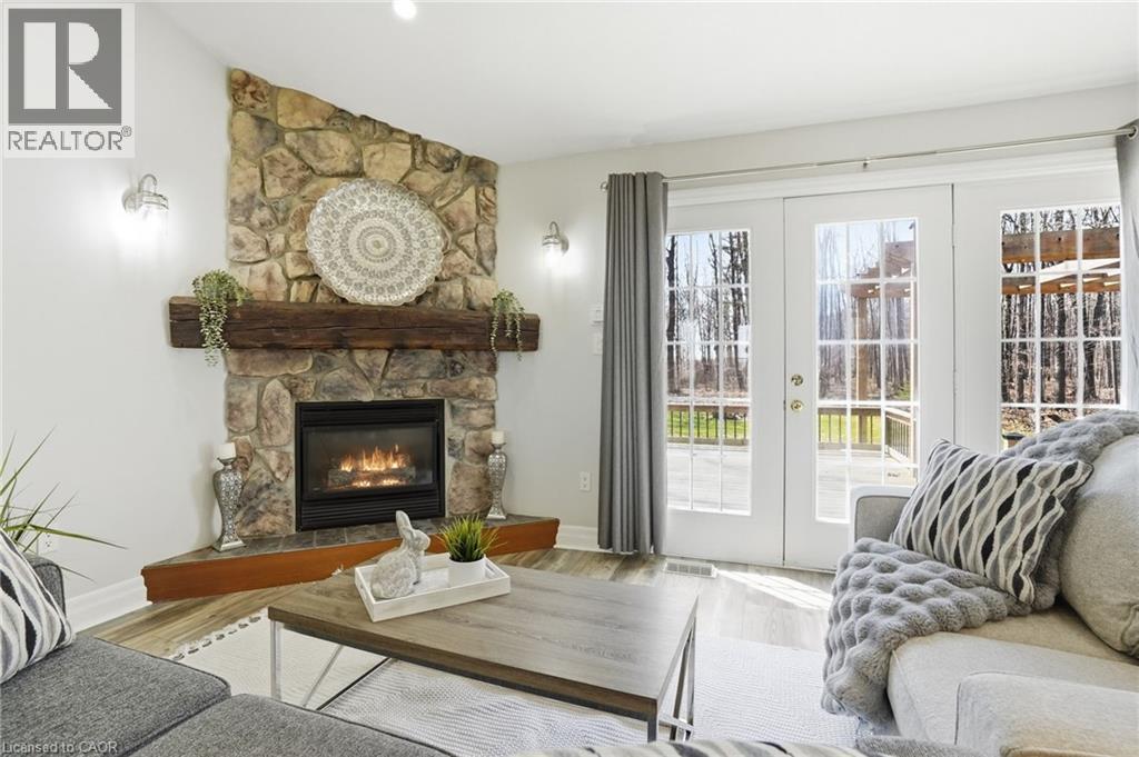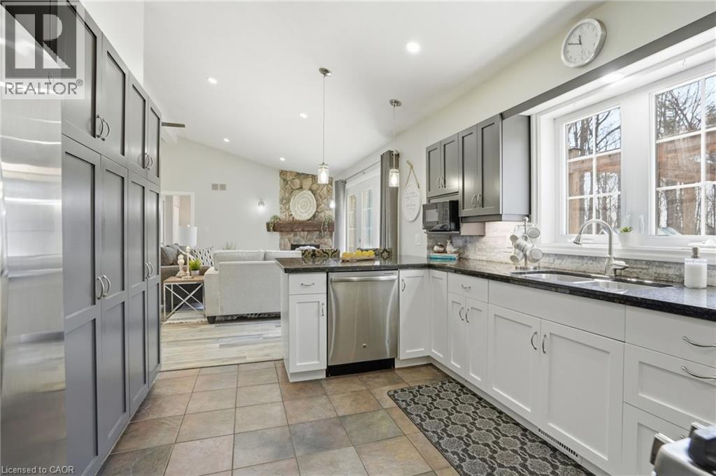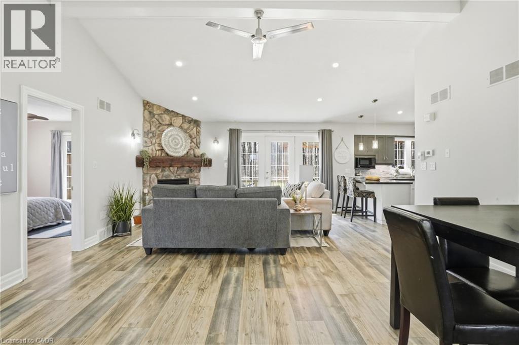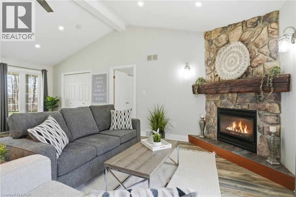 PRIVATE COUNTRY LIVING JUST MINUTES FROM TOWN! This beautiful 1,230 sqft bungalow built in 2000 by JL Cowan features 2+1 beds, 2.5 baths & is your own private slice of paradise. Nestled on a serene 4-acre wooded lot surrounded by nature, this property is ideally located just 2 mins from Byng Island Conservation & only 5 mins to downtown Dunnville. The covered front porch welcomes you & is the perfect place for enjoying quiet mornings & relaxing evenings. Inside, the open-concept living room, dining area, & kitchen is ideal for entertaining. The living room features a cathedral ceiling, cozy fireplace & patio door leading to the backyard. The kitchen is well-appointed w/ maple cabinetry, granite countertops & all appliances including a gas stove. The spacious primary features a 4pc ensuite, his & hers closets & a patio door w/ direct access to the outdoors. A 2nd bedroom, 3pc bath, laundry room & mudroom complete the main level. The fully finished basement provides additional living space including a rec room w/ bar area & Vermont Castings wood stove, a 3rd bedroom, 2pc bathroom & ample storage. Step outside to enjoy the multi-tiered deck w/ pergola overlooking the private backyard surrounded by mature trees. Additional backyard features include a shed & wood storage area. Ample parking is available w/ a private driveway accommodating up to 10 vehicles along w/ an attached 2-car garage. Updates include furnace & shingles (approx 2015 by the previous owners), all back decking & pergola built approx 2019, cistern pump replaced approx 2022, kitchen cabinets refinished approx 2023, air conditioner (w/ capacity for heat pump, not wired) & hot water heater (both approx 2025). The home is serviced by a 6,000-gallon cistern, septic system, & propane tank (rental). Don’t miss this rare opportunity to enjoy peaceful country living w/ convenient access to nearby amenities - this property is a must-see! (id:64974)