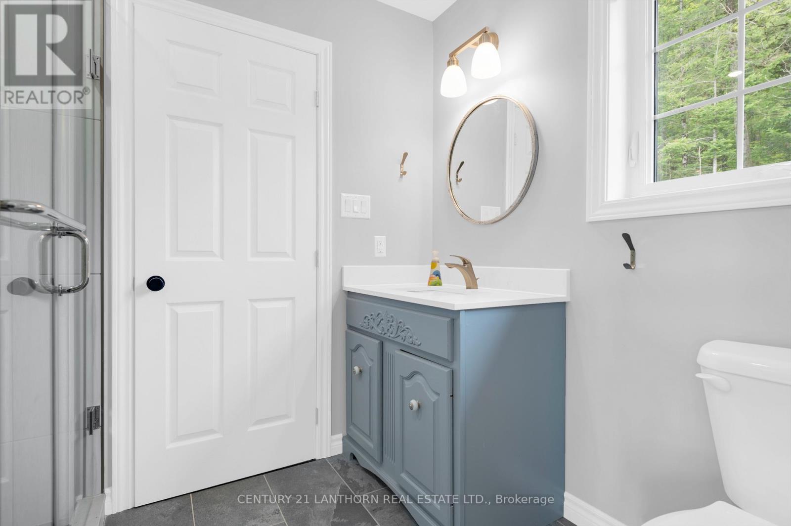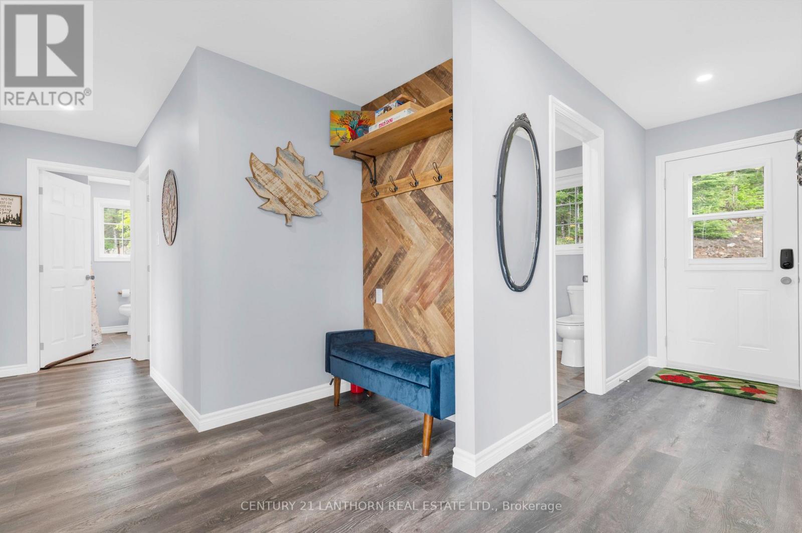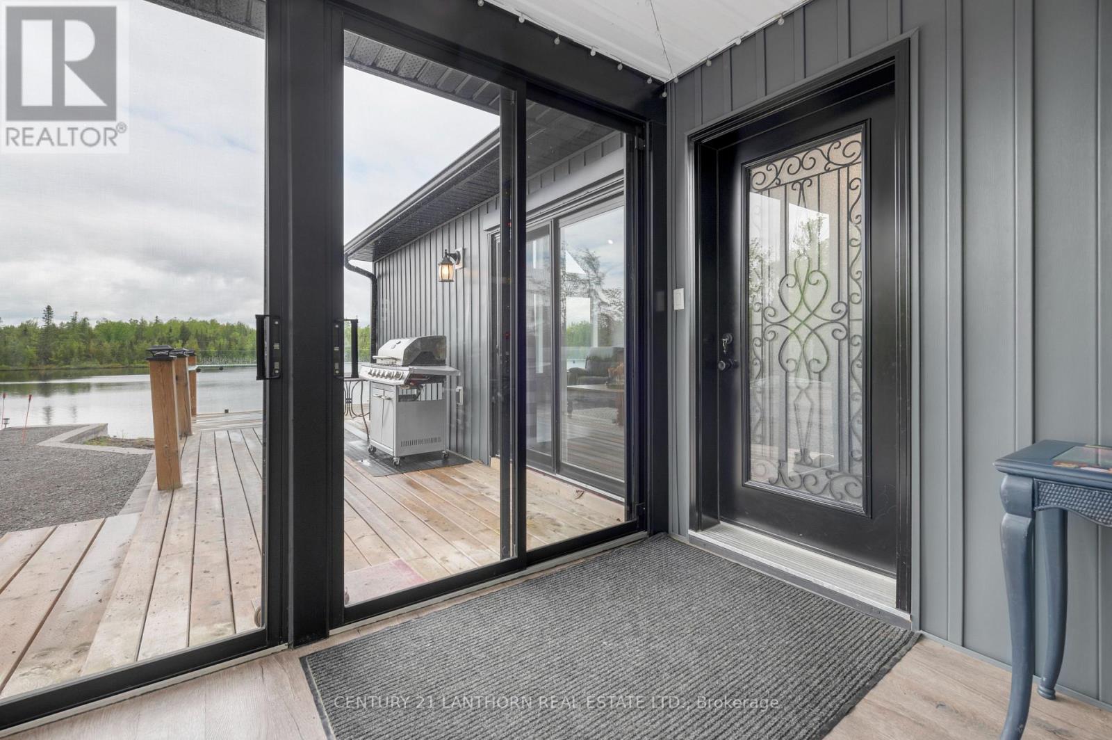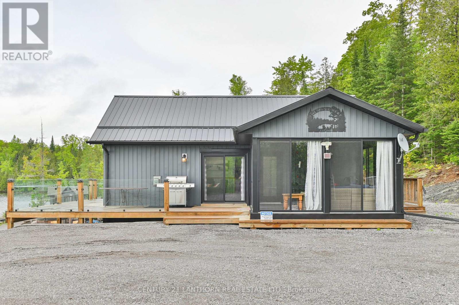 Escape to your own private retreat! Whether you're seeking peace and quiet with a waterfront view or the perfect place to host unforgettable gatherings filled with ATV and snowmobile adventures, this exceptional turn-key, off-grid property truly offers the best of both worlds. Set on 50 acres in a stunning natural landscape, and located near the Heritage Trail between Madoc and Bancroft, this property is accessed via a seasonal road and a long private driveway that leads to a breathtaking setting overlooking your own private lake, stocked with rainbow trout. The six year-old home features a thoughtfully designed main level with three bedrooms, two bathrooms, and a bright open-concept kitchen and living area. Large windows frame picturesque lake views and provide direct access to a full-length deck with sleek glass railings, as well as a charming three-season sunroom-perfect for relaxing or entertaining. The fully usable lower level includes a bar, a partially finished recreation area, and a walkout to an expansive interlocking stone patio. Here, you'll find a firepit and a wood-fired hot tub right at the water's edge, ideal for unwinding under the stars. Designed for self-sufficiency, the home is powered by an 11 kW diesel generator and features two propane fireplaces along with a heat pump providing both heating and air conditioning. A detached 24' x 20' garage with a wood stove, plus a 12-foot lean-to, offers ample storage for all your recreational equipment. Outdoor enthusiasts will love the endless opportunities for adventure, with abundant wildlife-including deer and moose-right at your doorstep, and numerous nearby lakes just a short drive away. Abutting 100's of acres of Conservation land, your privacy is guaranteed. This is a rare opportunity to own a truly special property, don't miss your chance. (id:64974)