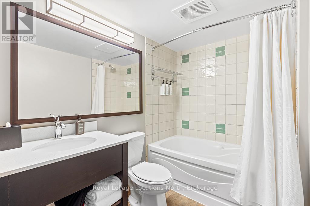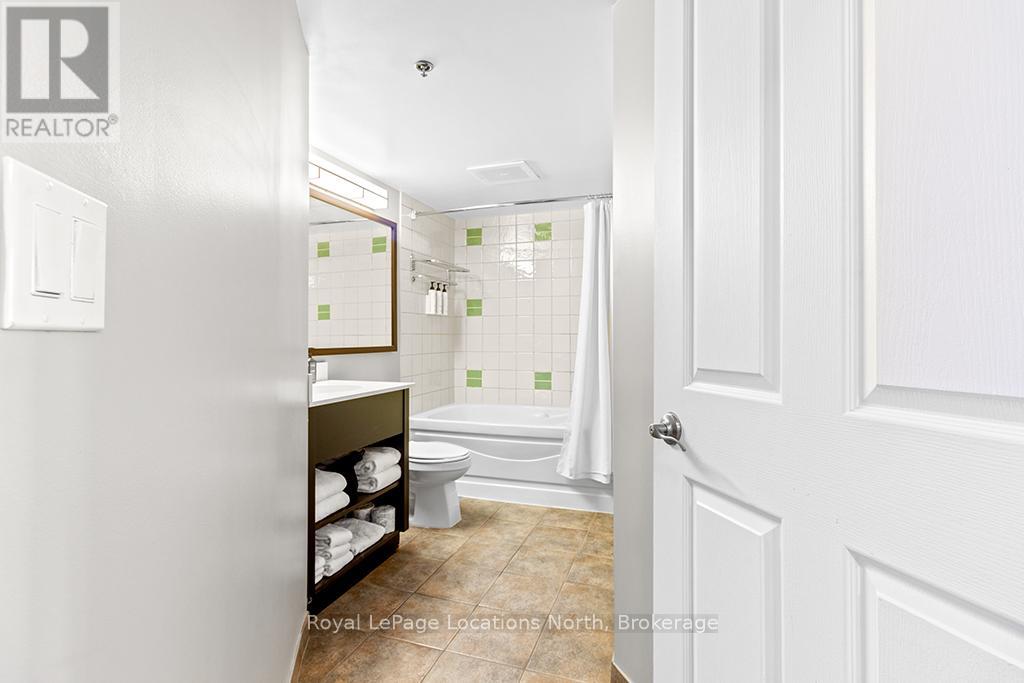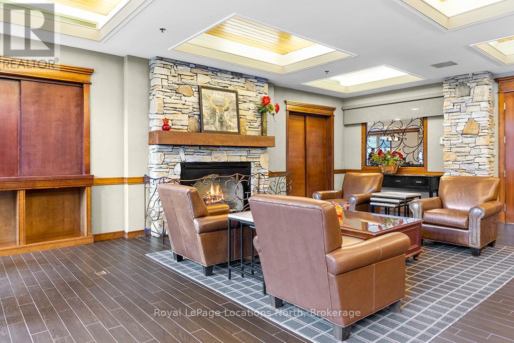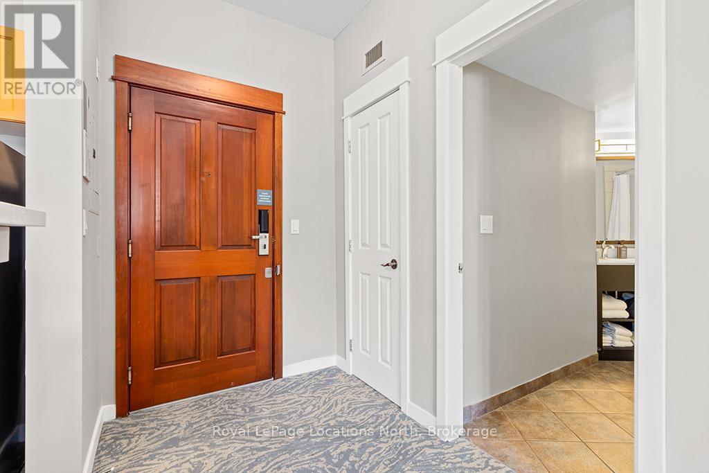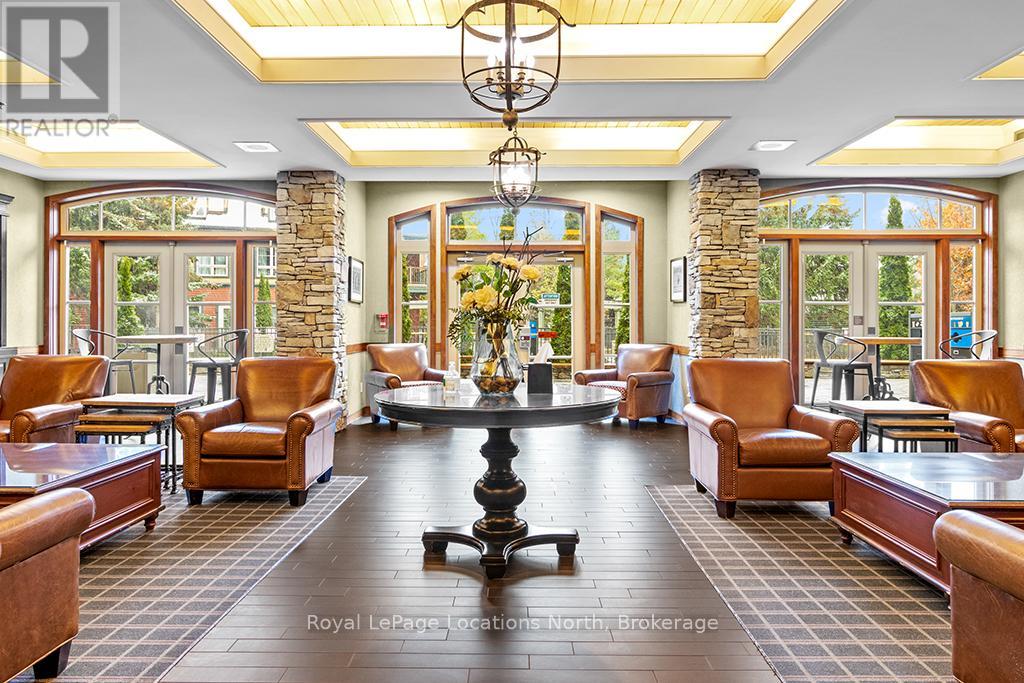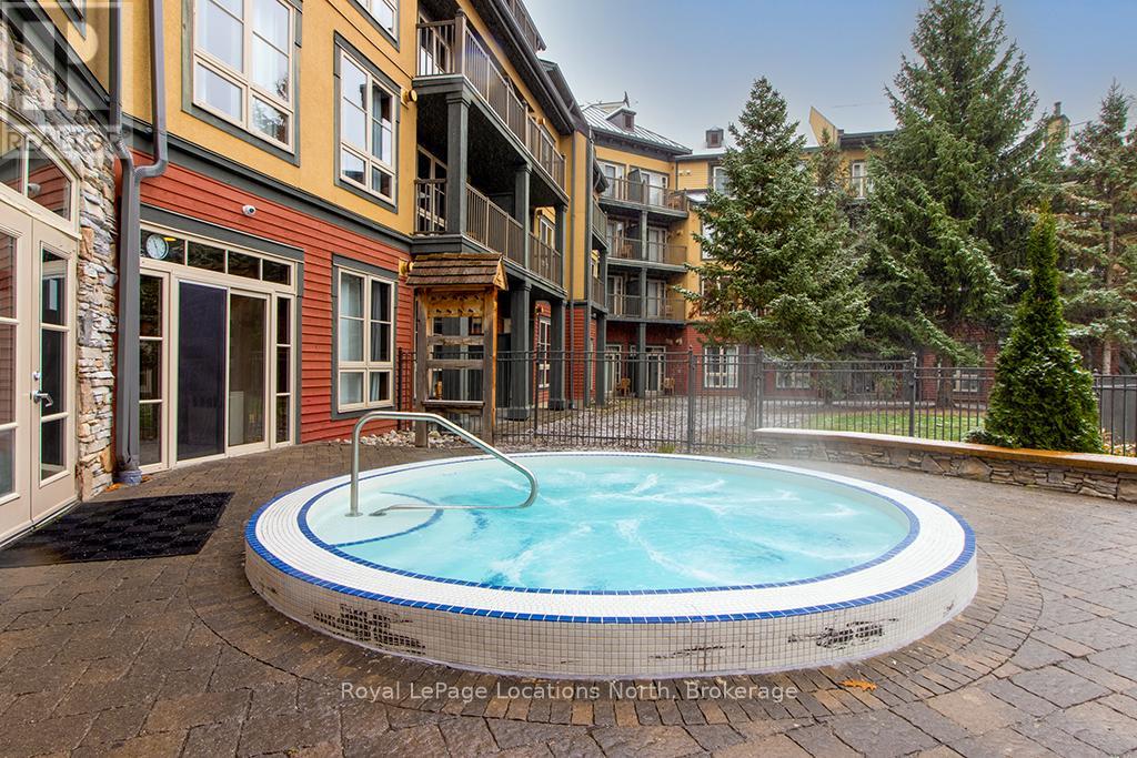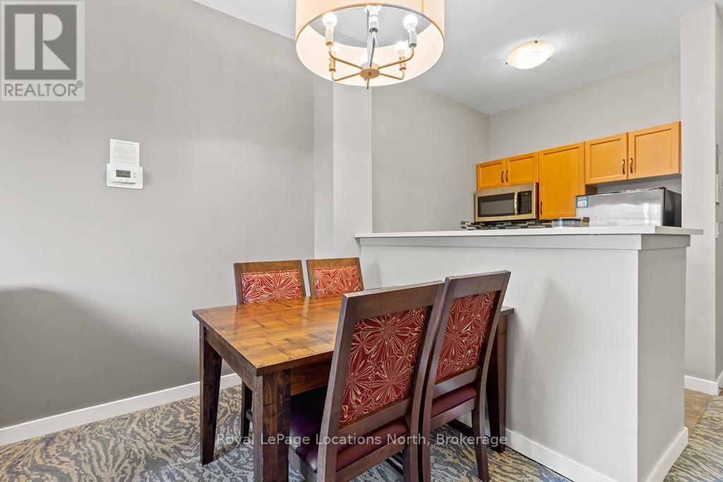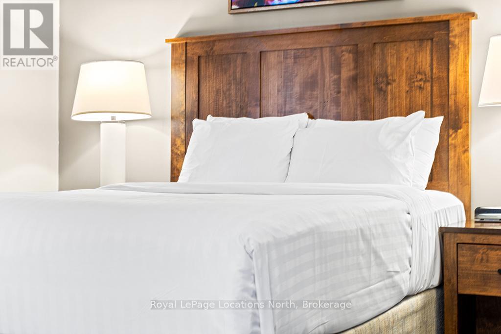 Enjoy the mountain view in this SUPERIOR OVERSIZED BACHELOR RESORT CONDOMINIUM. Welcome to the sought-after Alcove Model in The Grand Georgian, ideally located at the base of the ski slopes in Ontario's premier four-season resort, Blue Mountain Village. This fully furnished bachelor suite features a full kitchen and a thoughtfully designed alcove sleeping area that creates a spacious and functional layout. Enjoy your private balcony overlooking the courtyard - a perfect place to unwind after a day on the slopes or trails. The Grand Georgian offers outstanding amenities including a seasonal outdoor pool, two oversized year-round hot tubs, sauna, fitness room, owners' lounge, private ski locker, and two levels of heated underground parking. Ownership includes participation in the Blue Mountain Resort rental management program, providing income potential while allowing for personal use. Step outside to enjoy year-round activities, events, restaurants, cafés, boutique shopping, spa services, skiing, golfing, and mountain biking. Just minutes to Collingwood, Georgian Bay, marinas, and the sandy shores of Wasaga Beach. Condo fees include utilities. HST is applicable to the purchase price but may be deferred. BMVA fees apply, including a one-time membership fee of 2% + HST of the purchase price and an annual fee of $1.08 + HST per square foot. A TURNKEY OPPORTUNITY in one of Ontario's most desirable resort destinations. (id:64974)