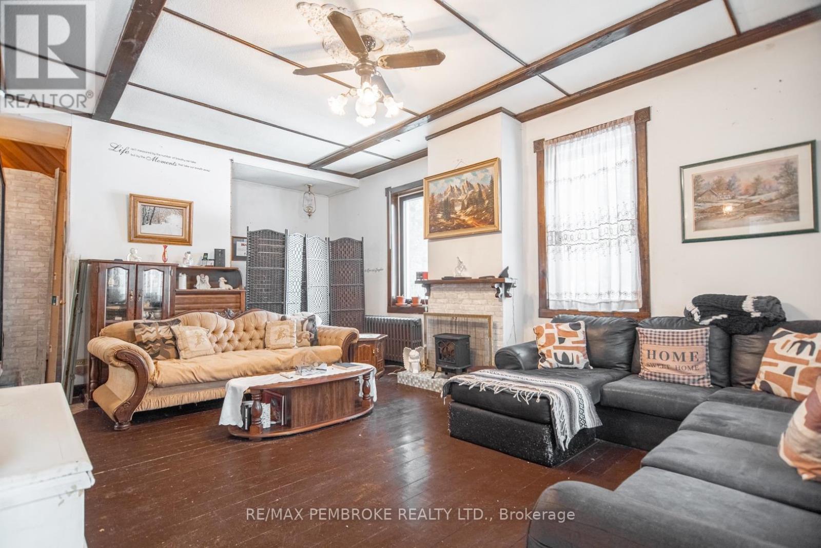 Charming detached brick century home set on 3.82 private, treed acres just minutes to Petawawa! This 3-bedroom, 2-bath home blends country living with convenience, offering character and potential throughout. Detached garage and chicken coop provide great outdoor utility and hobby options. Enjoy the peaceful setting surrounded by mature trees while being close to town amenities. Ideal for those seeking privacy, space, and a touch of rural charm within easy reach of everything. (id:64974)