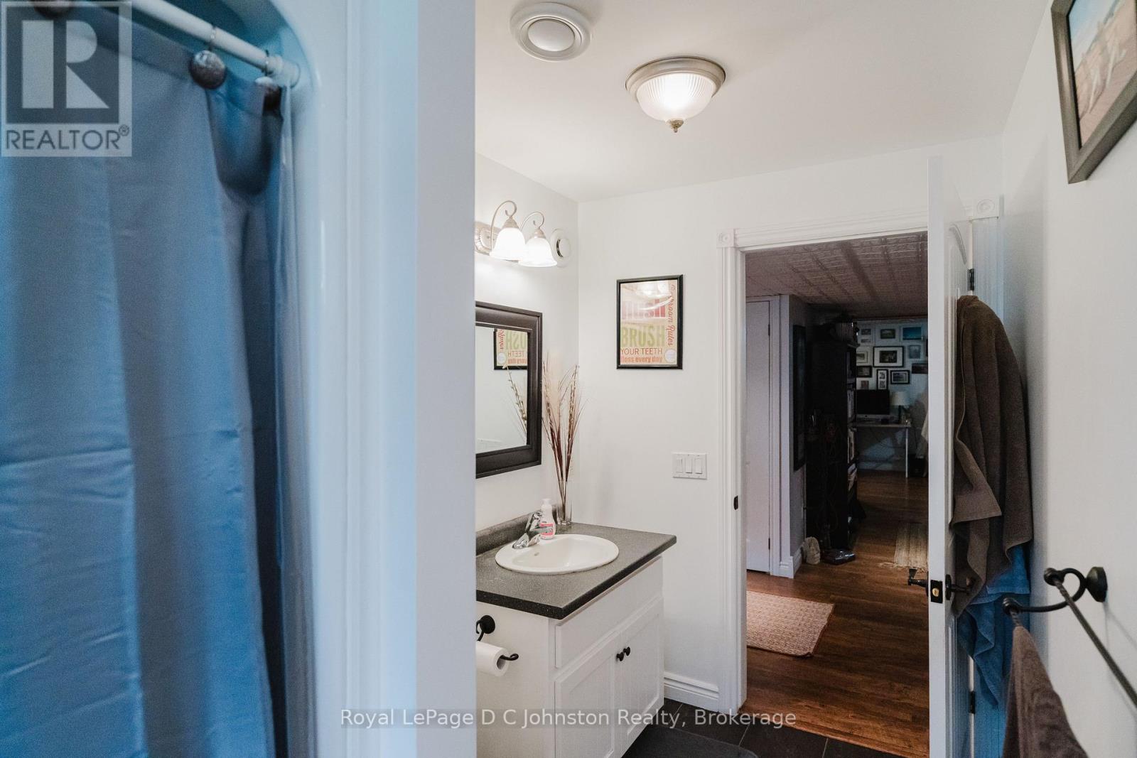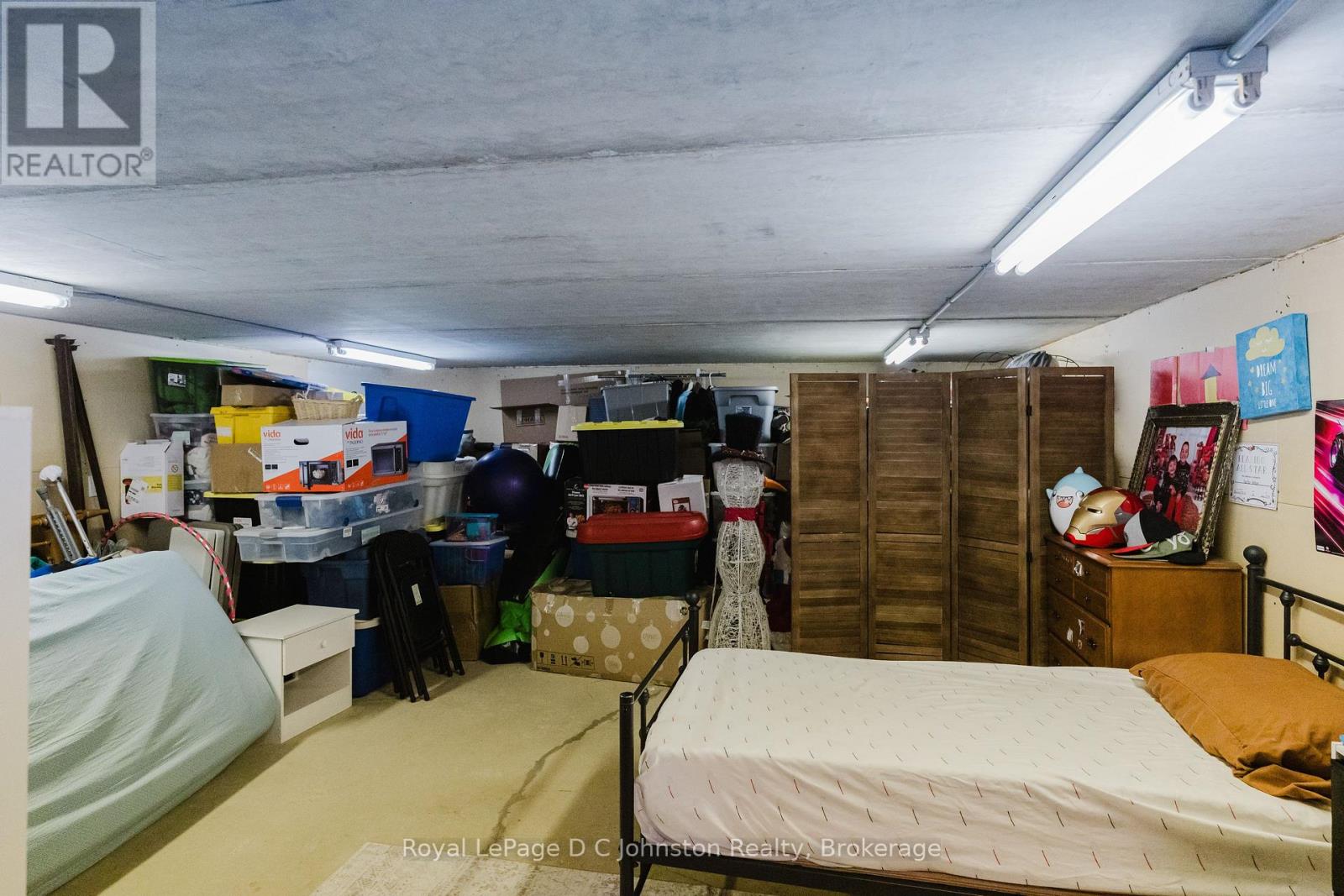 Welcome to this custom Beldman-Built stone bungalow on a spacious corner lot in a much sought after area of Port Elgin. This beautifully maintained bungalow is move-in-ready and offers main floor living as well as a fully finished basement in-law suite, ideal for families, retirees, or those needing extra guest space. Recent upgrades within the last two years include quartz countertops in the kitchen and bathroom, new appliances including an induction stove (with built-in convection oven and air fryer), new stackable laundry pair, new quieter running dishwasher, new patio door and screen, additional full kitchen in the basement, and a brand-new central air conditioner (2025). Main level features ash hardwood flooring with ceramic tile foyer and kitchen areas, custom hickory kitchen cabinetry, large island, open-concept dining and living room with tray ceiling, and walkout to private deck. Primary bedroom with two double closets, second bedroom/office with queen-sized murphy bed and closet, 4-pc bathroom with clawfoot soaker tub, and main floor laundry with garage access. Lower level includes large family room, two additional bedrooms, 3-pc bath with shower, full second kitchen with dining area, cold room, ample storage and a bonus room under the garage - perfect for hobbies or a workshop. Landscaped exterior with interlocking driveway and walkways, fenced backyard, a lovely covered front porch, and storage shed. A quality-built home with natural gas heating make this lovely bungalow comfortable year round. Don't delay to book a showing of this wonderful home. (id:64974)