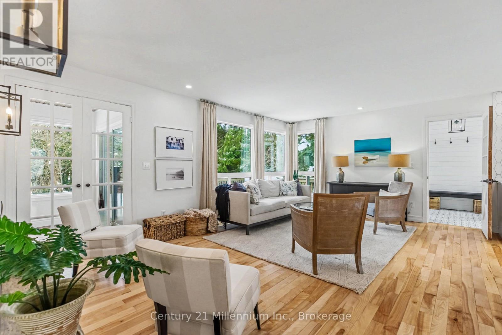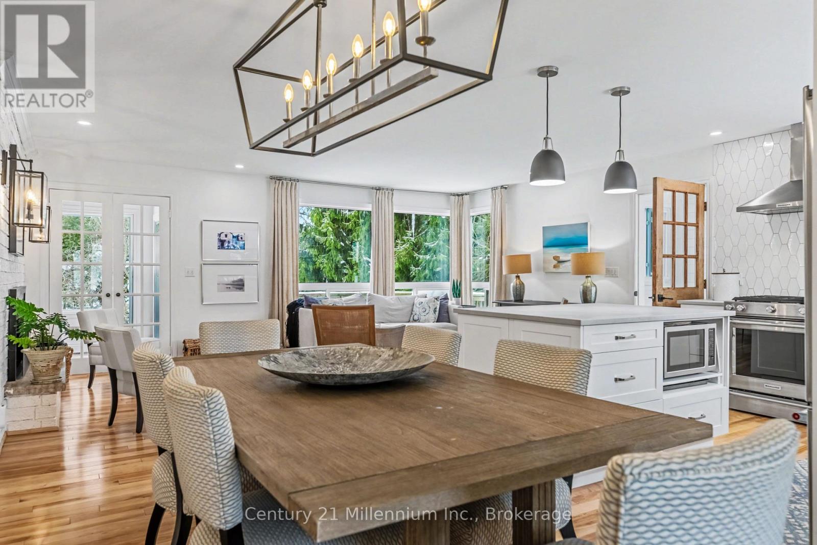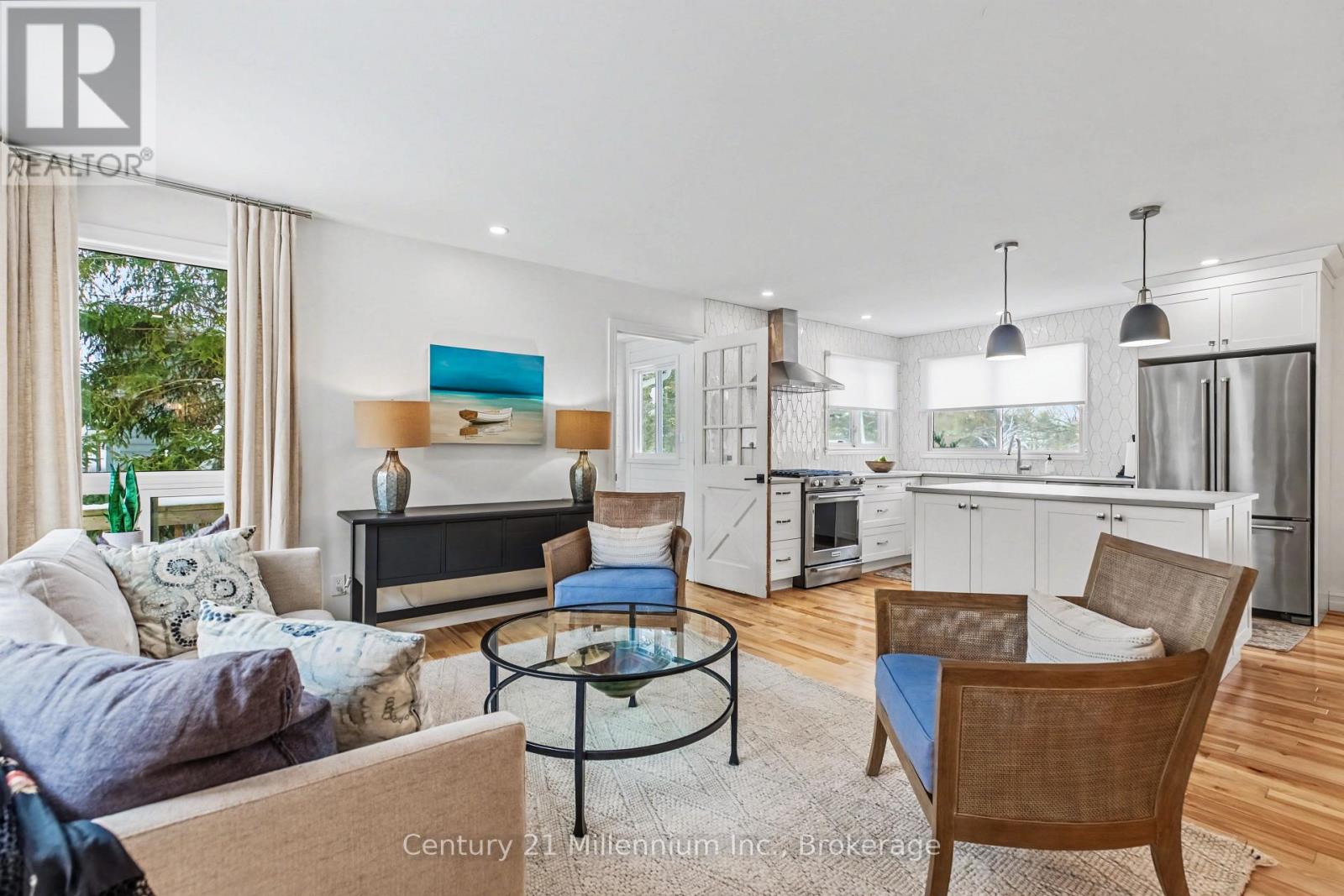 Welcome to easy living in the beautiful shoreline community of Southampton. This thoughtfully updated home offers bright, open living spaces and quality finishes throughout, all set on a fully fenced yard, with a small creek beyond, perfect for outdoor enjoyment and privacy. The heart of the home is the stunning Van Dolder kitchen, featuring stainless steel KitchenAid appliances, Caesarstone quartz countertops, tile backsplash, and a large central island ideal for gathering with family and friends. Smart storage solutions including pot drawers and a lazy susan add everyday convenience. The kitchen flows seamlessly into the open-concept living area where a natural gas fireplace with brick mantle creates a warm focal point while large windows overlook the rear yard and deck. The home offers three bedrooms, with one ideally suited as a home office or den. The updated bathroom features a stylish curb less tile shower, while the main floor laundry room includes a convenient laundry sink. A practical mudroom with tile flooring is the family entry from the driveway and provides access to the rear deck-perfect for transitioning between indoor and outdoor living. Hardwood and tile flooring run throughout the home, enhancing the clean and cohesive design. At the rear French doors lead to the bonus sunroom with bright south-facing windows offering a peaceful retreat-ideal for reading, yoga, or a home gym-with additional access to the deck and backyard. Natural gas furnace and A/C. Updated windows and doors. Comfortable, functional, and beautifully finished, this Southampton home is ready to enjoy both inside and out. (id:64974)