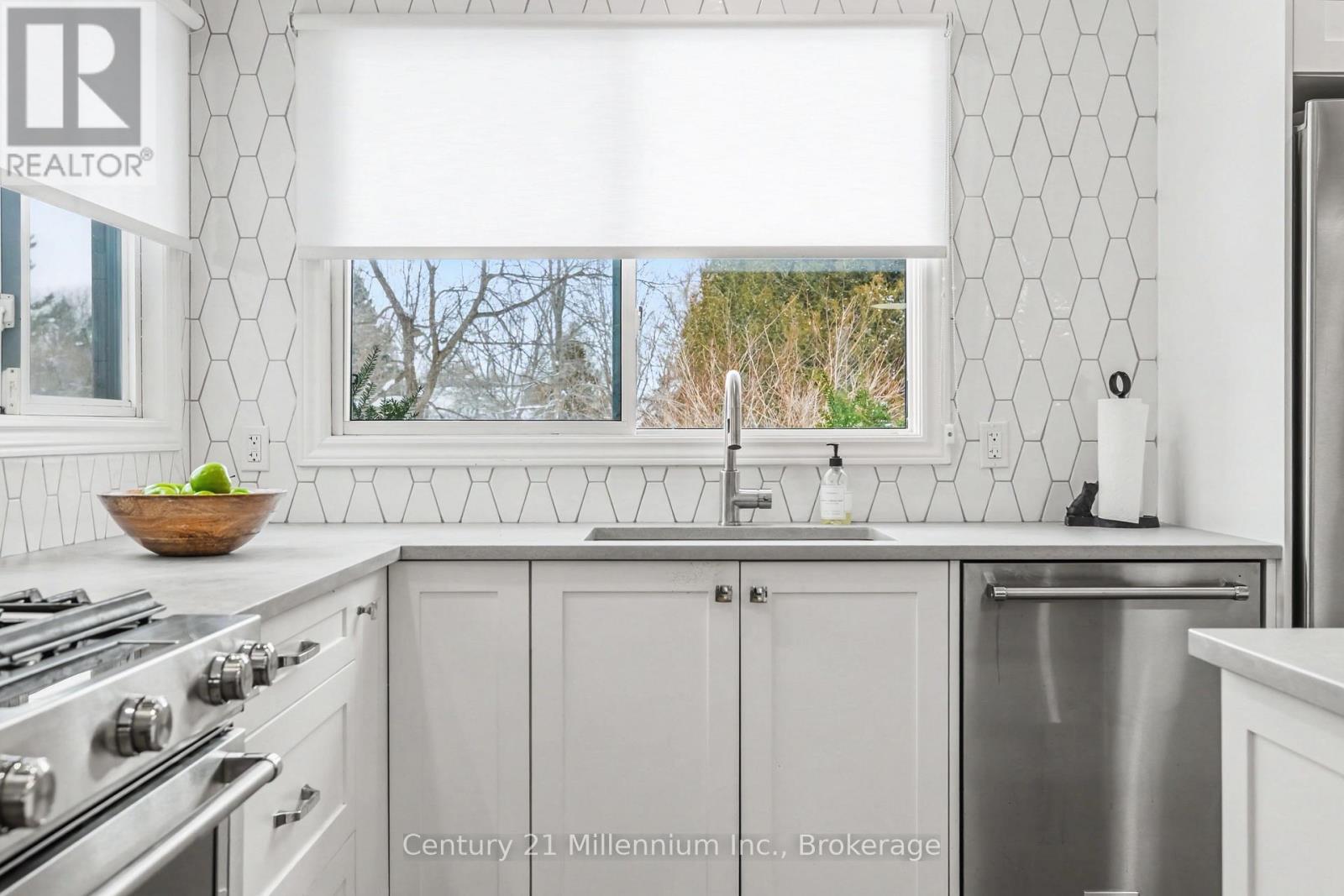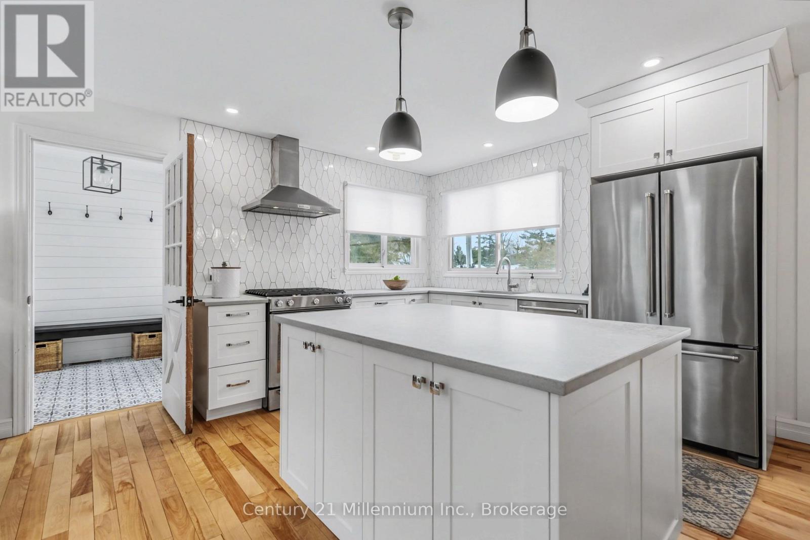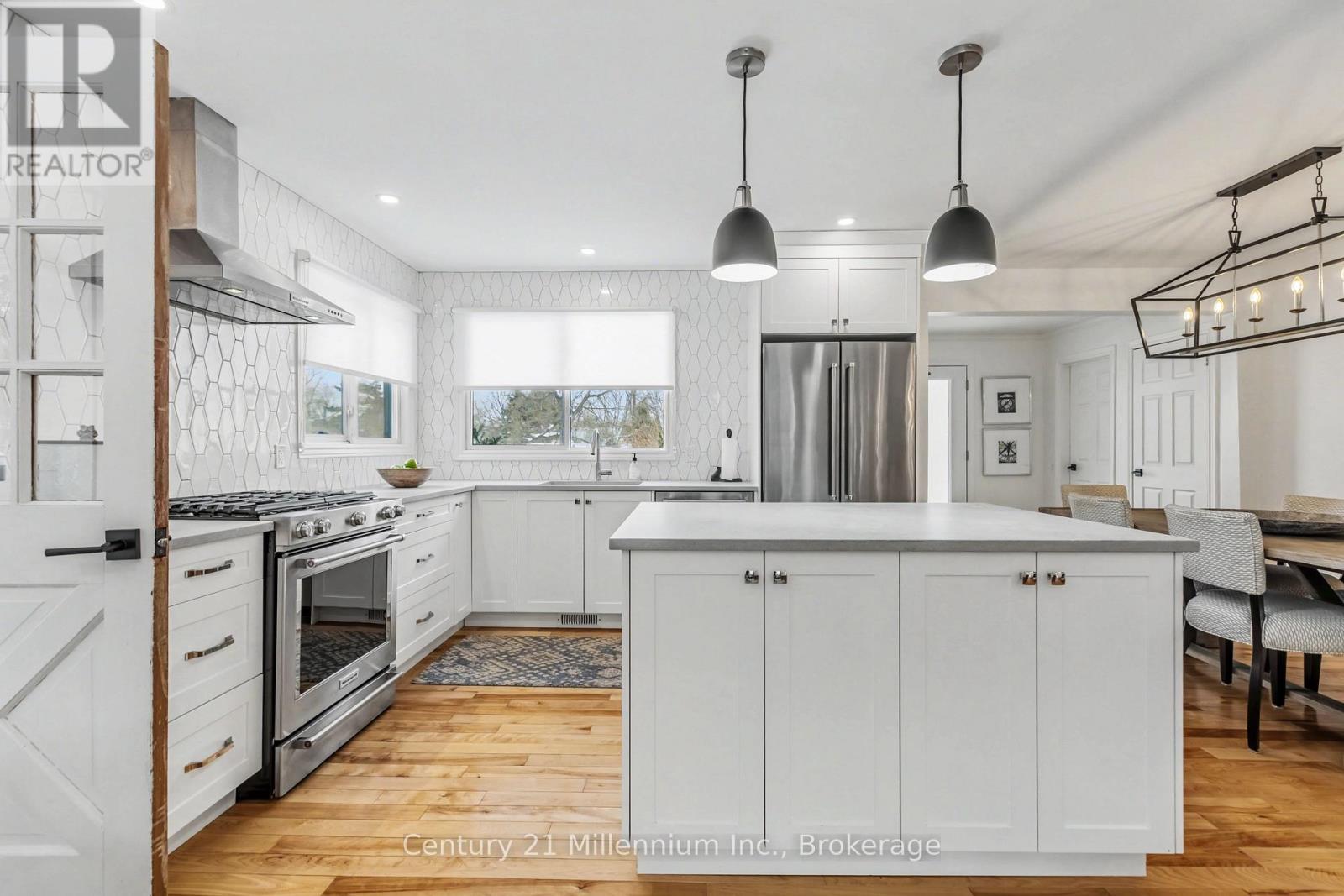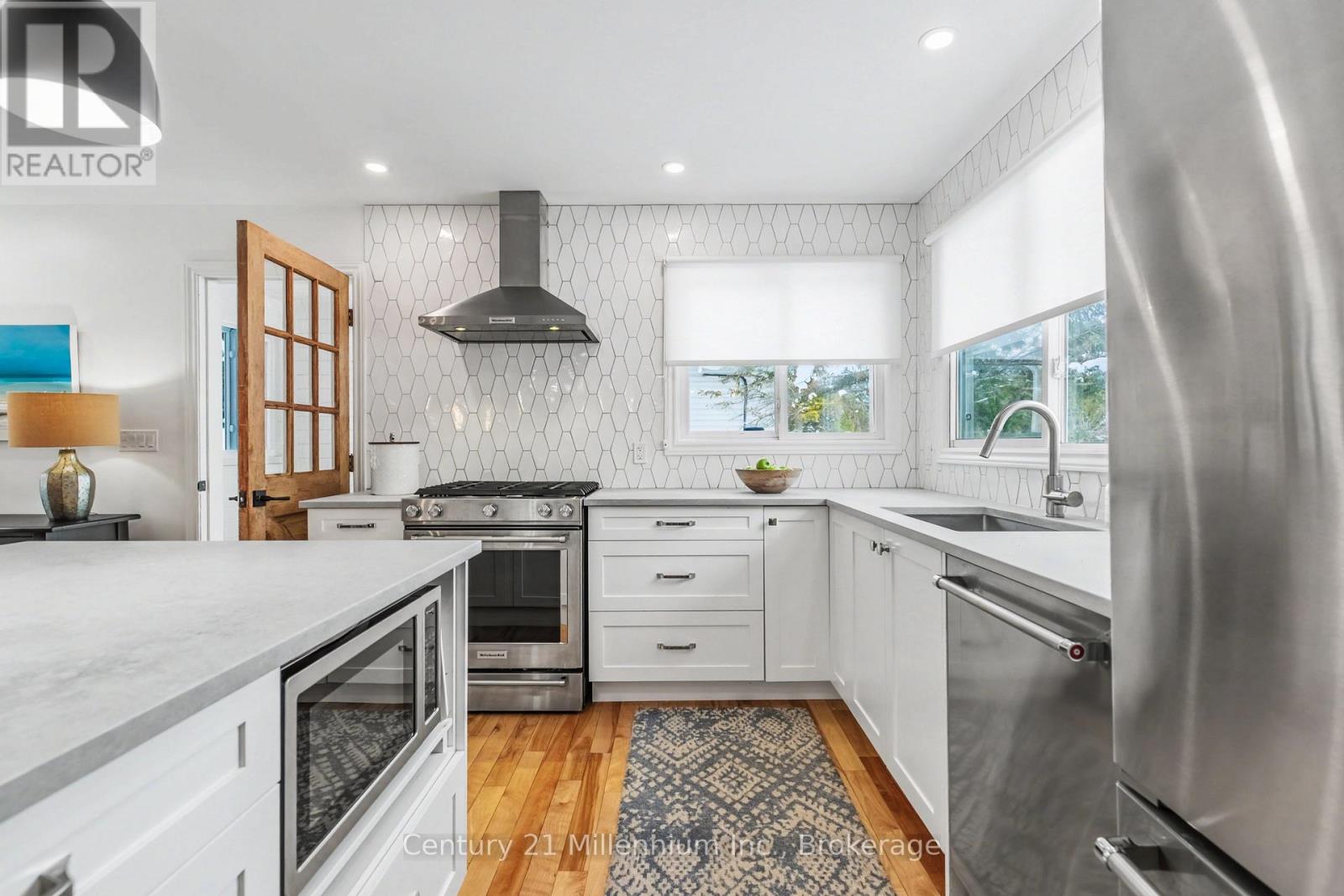 Welcome to easy living in the beautiful shoreline community of Southampton. This thoughtfully updated home offers bright, open living spaces and quality finishes throughout, all set on a fully fenced yard, with a small creek beyond, perfect for outdoor enjoyment and privacy. The heart of the home is the stunning Van Dolder kitchen, featuring stainless steel KitchenAid appliances, Caesarstone quartz countertops, tile backsplash, and a large central island ideal for gathering with family and friends. Smart storage solutions including pot drawers and a lazy susan add everyday convenience. The kitchen flows seamlessly into the open-concept living area where a natural gas fireplace with brick mantle creates a warm focal point while large windows overlook the rear yard and deck. The home offers three bedrooms, with one ideally suited as a home office or den. The updated bathroom features a stylish curb less tile shower, while the main floor laundry room includes a convenient laundry sink. A practical mudroom with tile flooring is the family entry from the driveway and provides access to the rear deck-perfect for transitioning between indoor and outdoor living. Hardwood and tile flooring run throughout the home, enhancing the clean and cohesive design. At the rear French doors lead to the bonus sunroom with bright south-facing windows offering a peaceful retreat-ideal for reading, yoga, or a home gym-with additional access to the deck and backyard. Natural gas furnace and A/C. Updated windows and doors. Comfortable, functional, and beautifully finished, this Southampton home is ready to enjoy both inside and out. (id:64974)