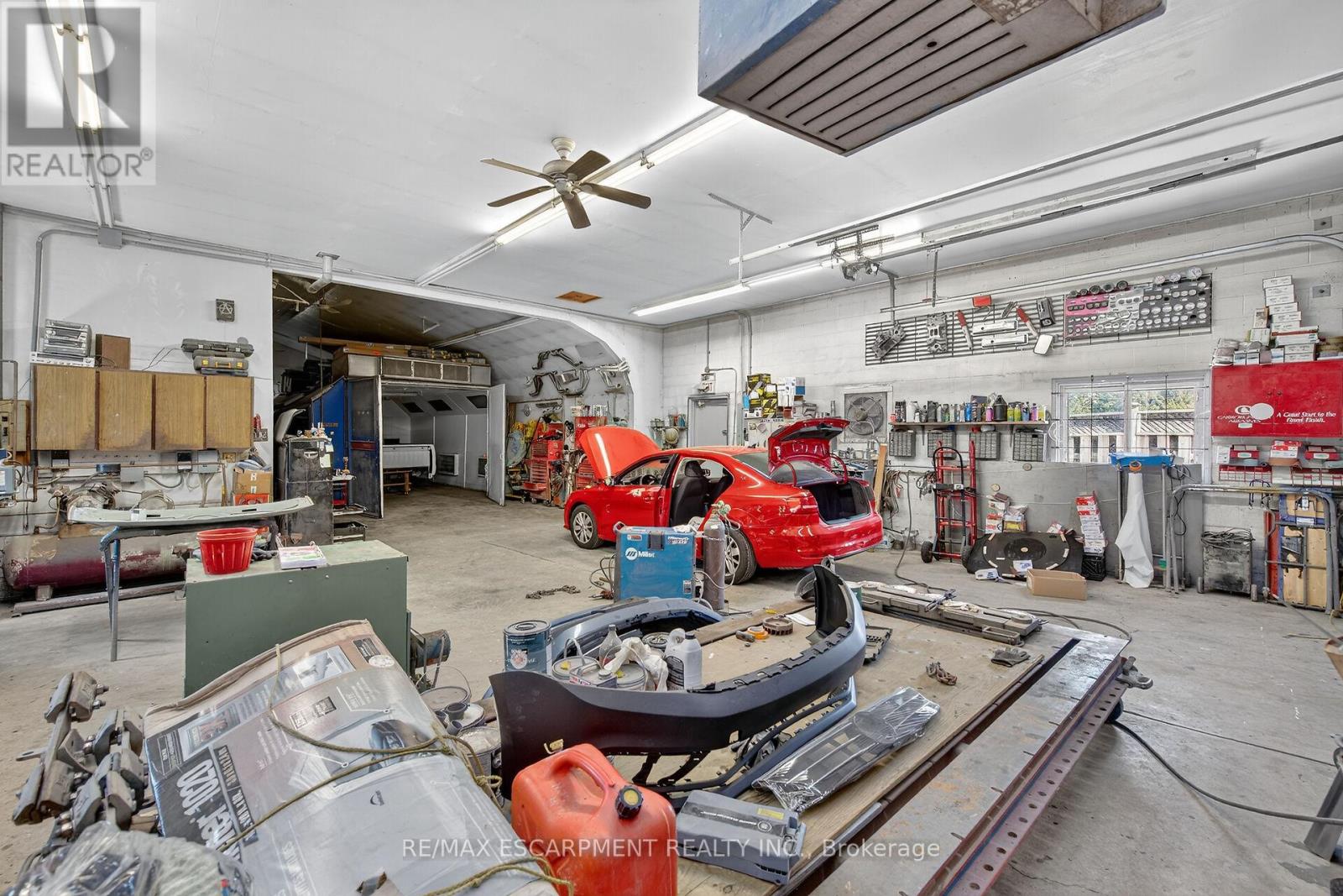 This exceptional property offers the perfect blend of residential comfort and commercial functionality - ideal for contractors, mechanics, auto body professionals, or landscapers. Situated just minutes from Ancaster and Brantford, this fully finished, highly upgraded 4-level backsplit includes a separate in-law setup and a fully operational mechanics shop complete with spray booth and vehicle lift. Inside the home, you'll find Canadian-made Bruce hardwood flooring, granite countertops, a custom kitchen with built-in wall oven and Stainless steel appliances, and two gas fireplaces for added comfort. The brick and stucco exterior adds to the home's curb appeal, while large rooms and abundant natural light create a warm, welcoming atmosphere. Additional upgrades include: newer windows, UV light & water softener system, whole-home generator. Outside, the property offers parking for 10+ vehicles, making it ideal for those needing space for equipment, work vehicles, or client visits. The commercial-grade shop is a turn-key auto body repair facility - a rare opportunity to live and work from the same location. This type of property comes up once in a lifetime! (id:64974)