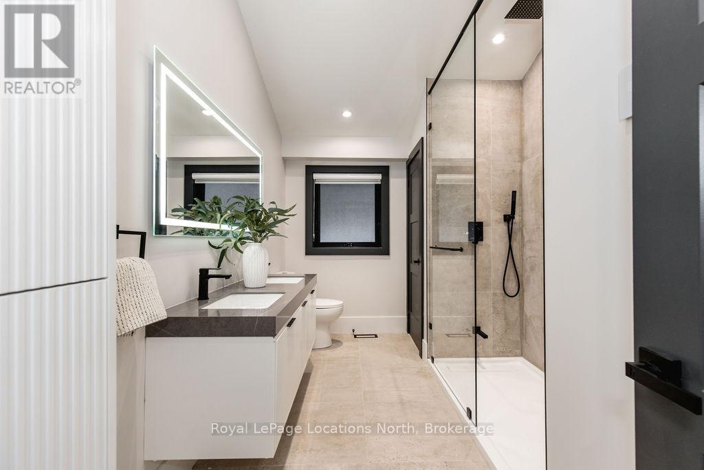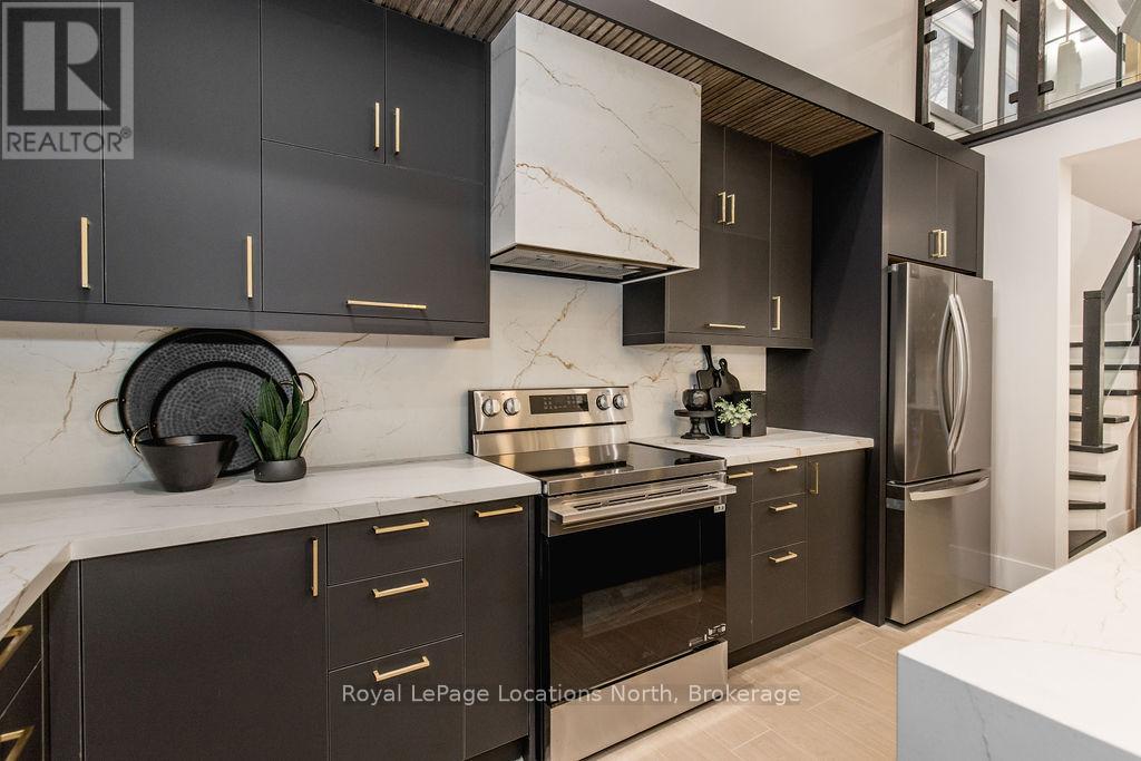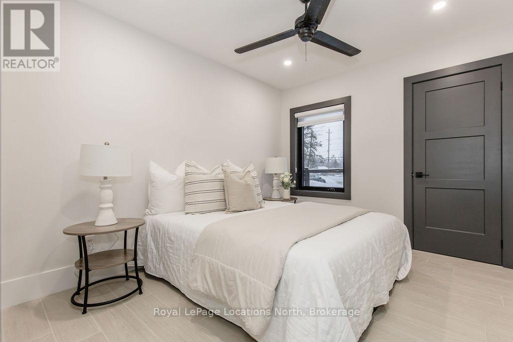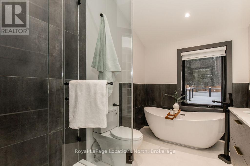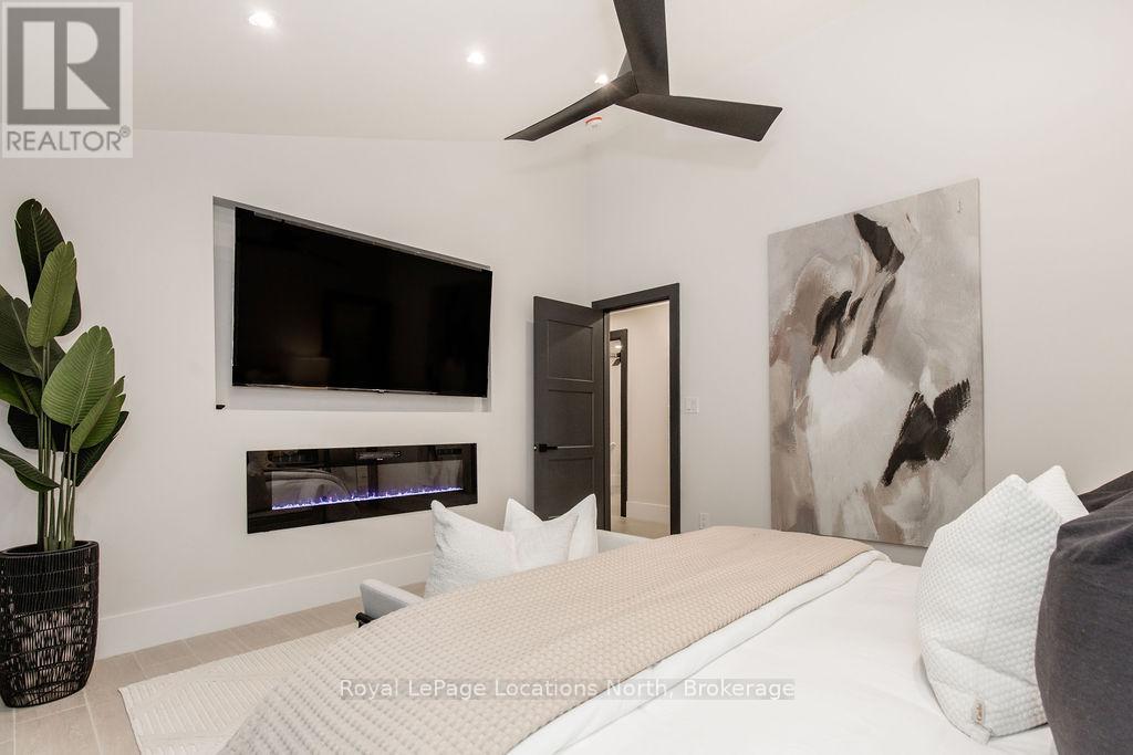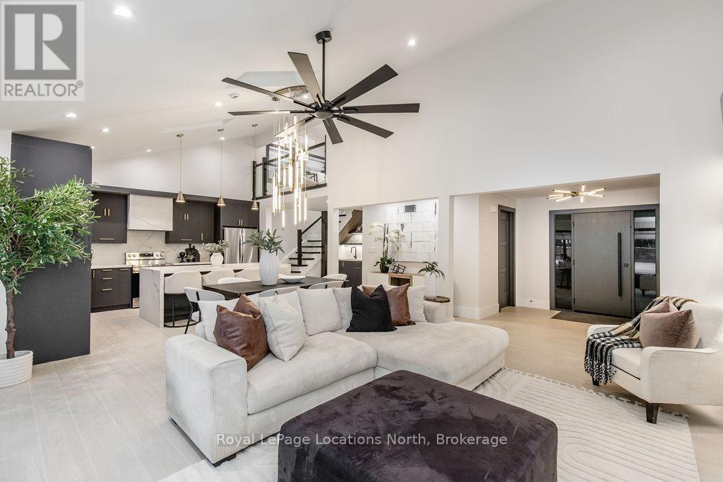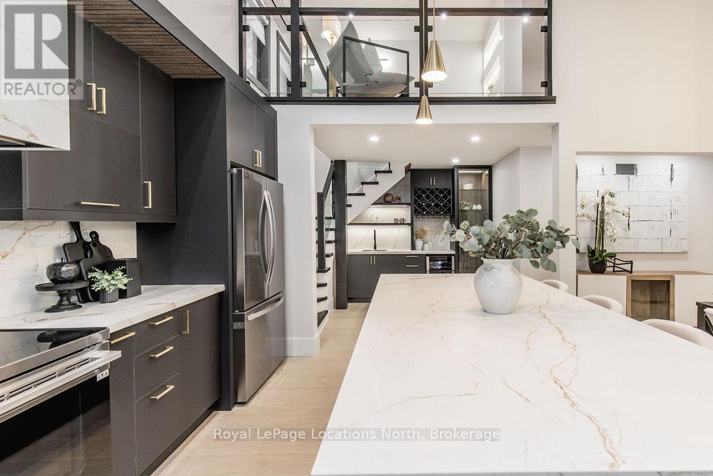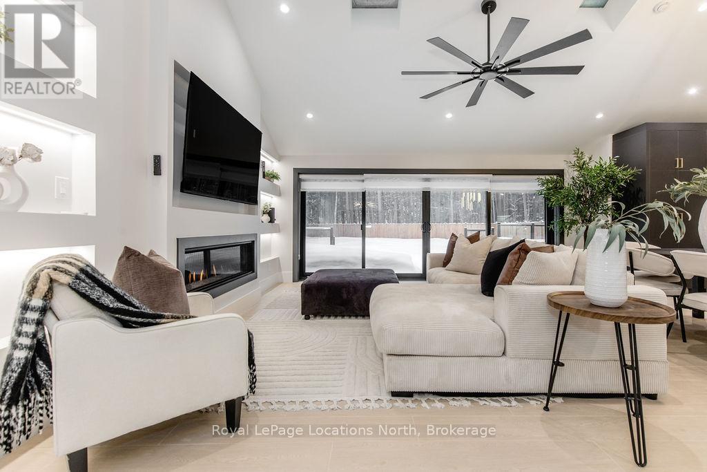 This true ranch-style bungalow offers effortless, stair-free living with oversized sliding glass doors stretching across the family room, framing views of a large, fully fenced backyard that backs directly onto 56 acres of Crown land. With no rear neighbours, this is a rare setting where privacy, nature, and everyday convenience meet.The home offers over 2,300 sqft of living space on a generous 100' x 200' lot. An oversized garage with inside entry, paired with an open concept layout, makes this an ideal forever home. Outdoor enthusiasts will love the location- snowmobile trails just down the road, Marlwood Golf Course across the street, nearby hiking/snowshoeing trails and the world's longest freshwater beach only a 7-min drive. The primary bedroom is a true retreat, featuring vaulted ceilings, a cozy fireplace, sliding doors leading directly to the rear deck, and a high-end ensuite complete with a glass shower, floating soaker tub, and walk-in closet.The home has undergone extensive renovations throughout, including a brand new roof, soffits, fascia, exterior siding, windows, garage doors, and a new high-efficiency furnace with in-floor heating. Electrical, lighting, pot lights, and all interior flooring have been fully updated.The renovated kitchen showcases quartz countertops/backsplash, oversized island, custom cabinetry with pull-out organizers, a dedicated coffee bar, a built-in full-size wine fridge, and all new stainless steel appliances. Every bathroom has been fully renovated with modern fixtures and finishes.Upgrades include expansive new rear sliding doors, custom blinds, upgraded main-floor laundry with inside entry to garage, loft with a full bathroom and second family room with new TVs, an updated fireplace with custom built-ins, cathedral ceilings, skylights, and brand new tiered decks spanning the entire back of the home. The property is fully fenced with custom stone walkways, creating a private outdoor retreat you'll enjoy year-round. (id:64974)