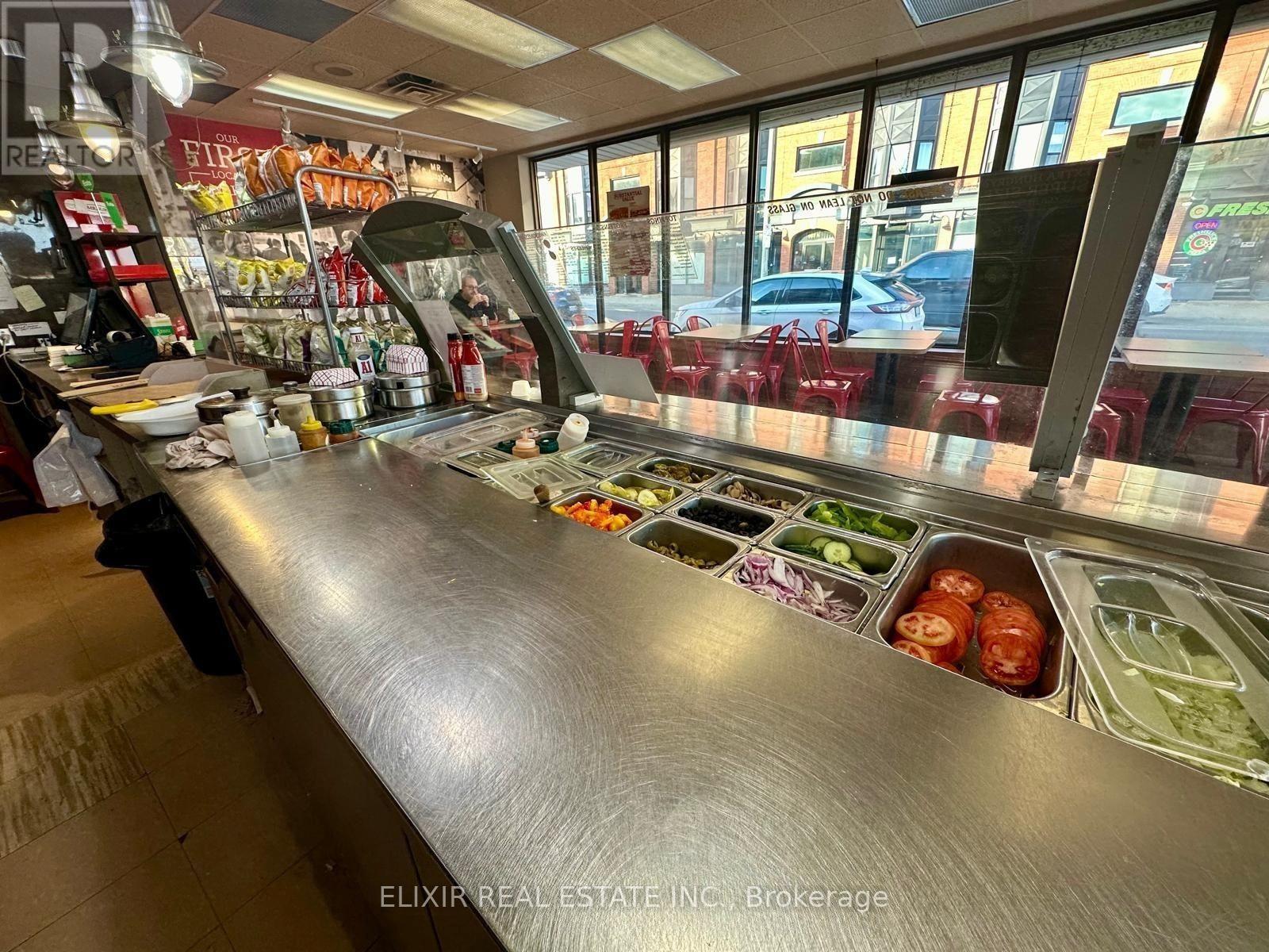 Outstanding opportunity to acquire a well-established Mr. Sub franchise located on King Street East in Hamilton, a high-visibility urban corridor with strong pedestrian and vehicular traffic. This turnkey operation benefits from Mr. Sub's long-standing Canadian brand recognition, proven systems, and ongoing franchisor support. The restaurant features a fully equipped commercial kitchen, efficient layout, clean front-of-house area, and trained staff in place, allowing for a smooth transition for a new owner. Revenue is generated through dine-in, takeout, and delivery, serving a loyal base of repeat customers, with Weekly sales averaging approximately $8,000-$10,000, food costs at 33%-35%, labour at 22%-23%, and rent approximately $3,800/month including TMI. The business is well organized and easy to manage, making it ideal for a hands-on owner-operator, family-run business, or first-time franchise buyer. Additional upside potential exists through delivery optimization, catering services, or extended operating hours. A solid, stable opportunity offering consistent cash flow in a sought-after Hamilton location. (id:64974)