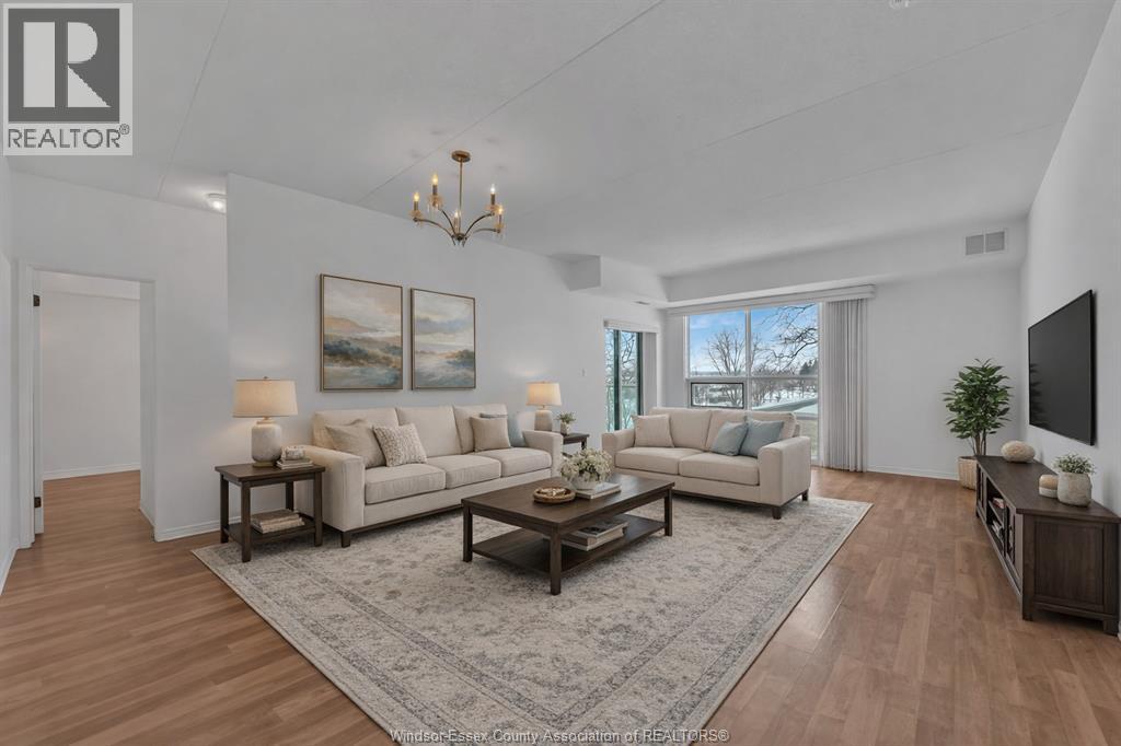 This spacious and bright 2-bedroom, 2-bathroom condominium is located in The Pinnacle boasting nearly 1200 sq ft , The pinnacle building one of Windsor’s most prestigious and highly sought-after buildings, recognized as one of the finest residences in the city. Set along the coveted Riverside Drive, the unit offers beautiful river views in a premier location. Directly across the street, a tranquil escape with its manicured grounds and the iconic Charles Brooks Peace Fountain floating on the Detroit River. The best of East Windsor’s amenities, dining, and everyday conveniences are all just moments away. The unit features a generous, well-appointed layout with in-suite laundry, updated flooring, fresh paint, and newer appliances included for added value. A private balcony showcases northeast-facing views of Windsor’s stunning riverfront—perfect for relaxing or entertaining. Residents of The Pinnacle enjoy an exceptional selection of amenities, including a fitness centre, indoor pool and sauna, meeting room, and secure underground parking complete with a car wash station. A rare opportunity to own a landmark building. Call today to book your private showing. CONDO FEES ARE 550.00 and includes water. SOME PHOTOS ARE VIRTUALLY STAGED. (id:64974)