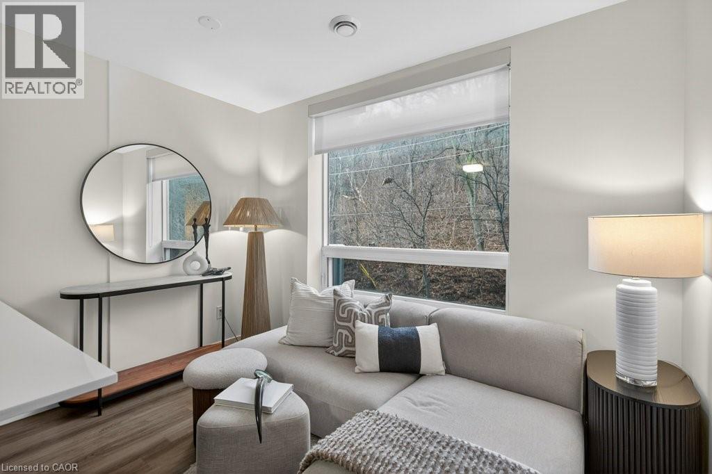 Where the love of nature and city living meet in perfect balance. This freshly painted, thoughtfully designed space offers an open-concept layout filled with natural light, a sleek modern kitchen, and a cozy living area that flows effortlessly into your private retreat with views of the trees. Perfect for young professionals, medical staff, or anyone who values comfort and convenience. What makes this location so special? 479 Charlton sits at the base of the Niagara Escarpment, giving you front-row access to the city's best hiking trails, waterfalls, and green spaces, all just steps from your door. Yet you're still minutes away from downtown Hamilton's cafés, shops, St. Joseph's Hospital, and vibrant arts scene, as well as the GO Station for commuters. It's the best of both worlds: urban energy paired with tranquil surroundings. Highlights you'll love: Modern one-bedroom layout with contemporary finishes . Bright, open living space with oversized windows Easy access to trails, parks, and scenic lookout points . Close to hospitals, restaurants, shops, and transit · Secure, well-maintained building in a highly desirable area. Comes with 1 underground parking spot, and locker. Don't miss your chance to call this Hamilton gem your new home. (id:64974)