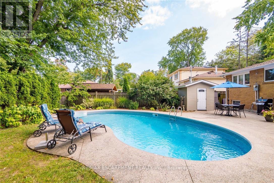 Welcome to this sun-filled, beautifully maintained, move-in-ready home on a tree-lined street in one of Southeast Burlington's sought-after neighbourhoods and the coveted Nelson school district. This 3+1 bedroom side-split offers over 2,000 sq. ft. of finished living space and a thoughtfully designed multi-level layout providing both comfort and privacy for modern family living. The bright main level showcases a tastefully renovated kitchen with charming breakfast area, elegant Silestone countertops, and a Moroccan Zellige-inspired backsplash, blending timeless design with everyday functionality. An elegant entryway with soaring ceiling creates a striking first impression, while the main floor den/office provides an ideal work-from-home space. Two sets of patio doors from the kitchen and den create exceptional indoor-outdoor living, opening directly to the backyard. Upstairs features three comfortable bedrooms, while the newly renovated lower level offers a versatile space ideal as a fourth bedroom, home gym, office, or guest retreat. Set on a generous, mature lot with established trees, the private backyard retreat features a sparkling in-ground pool with new liner, perfect for summer entertaining and relaxed outdoor living. Enjoy an exceptional lifestyle just steps to the lake, parks, GO Station, and the new community centre. A rare opportunity to own a thoughtfully updated home in one of Burlington's most desirable neighbourhoods. (id:64974)