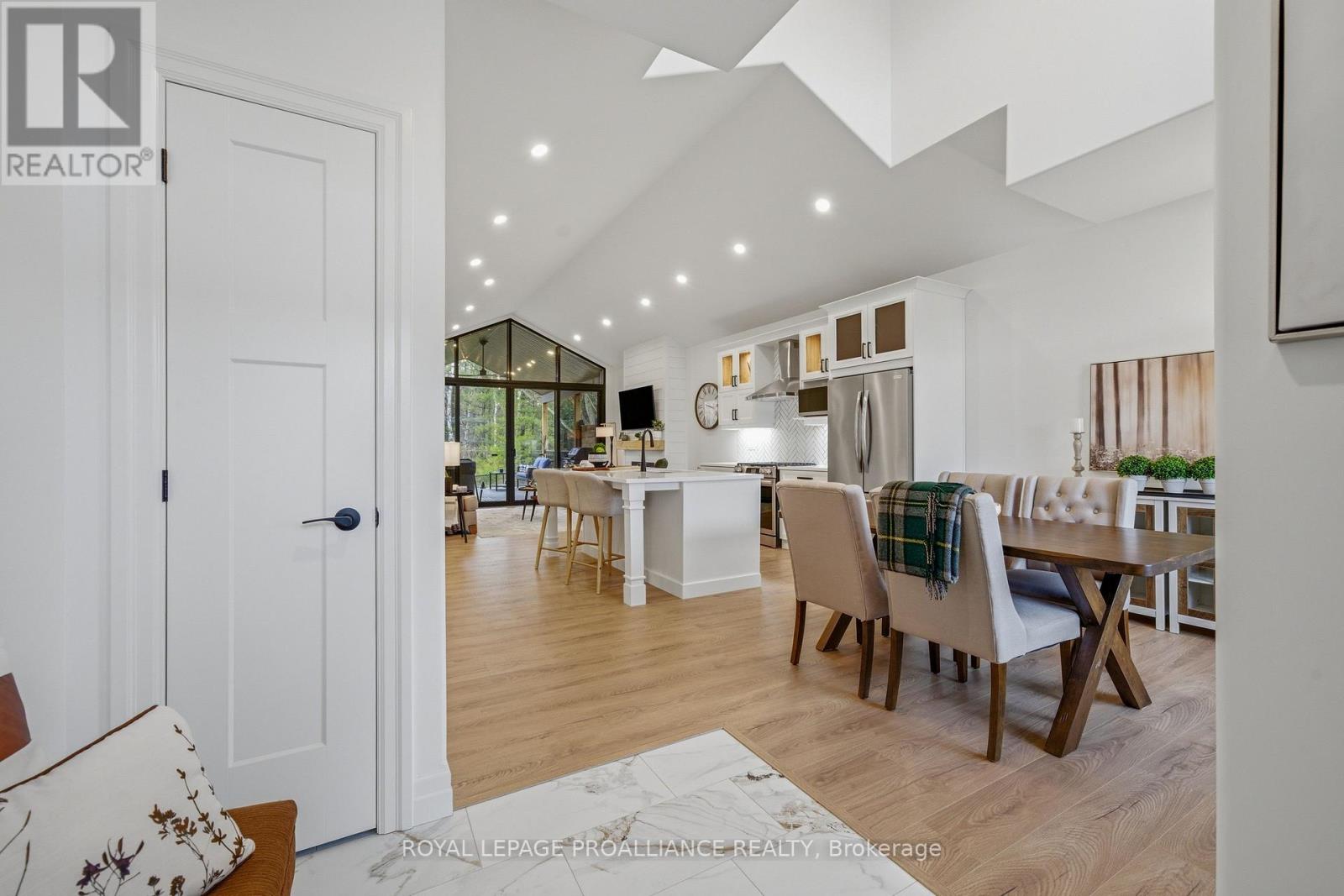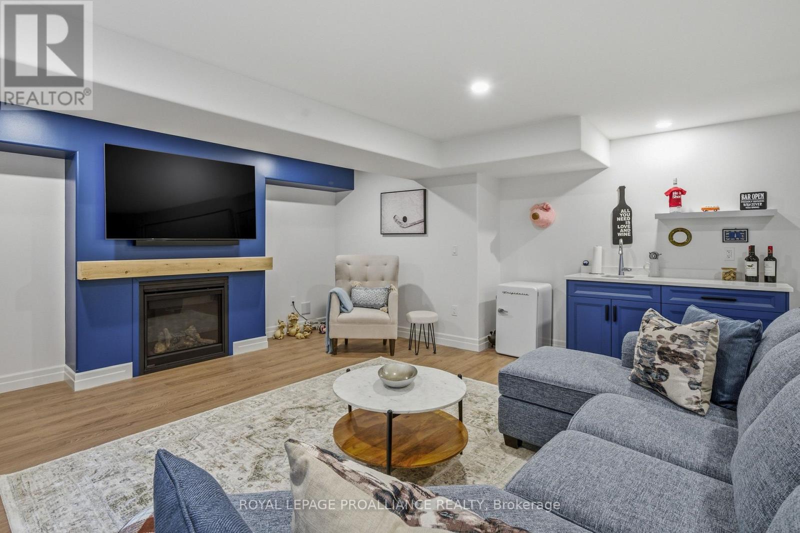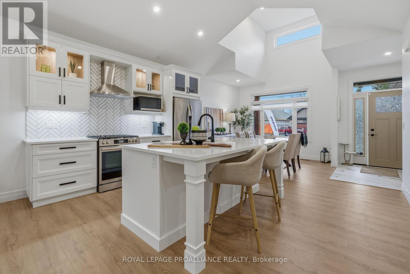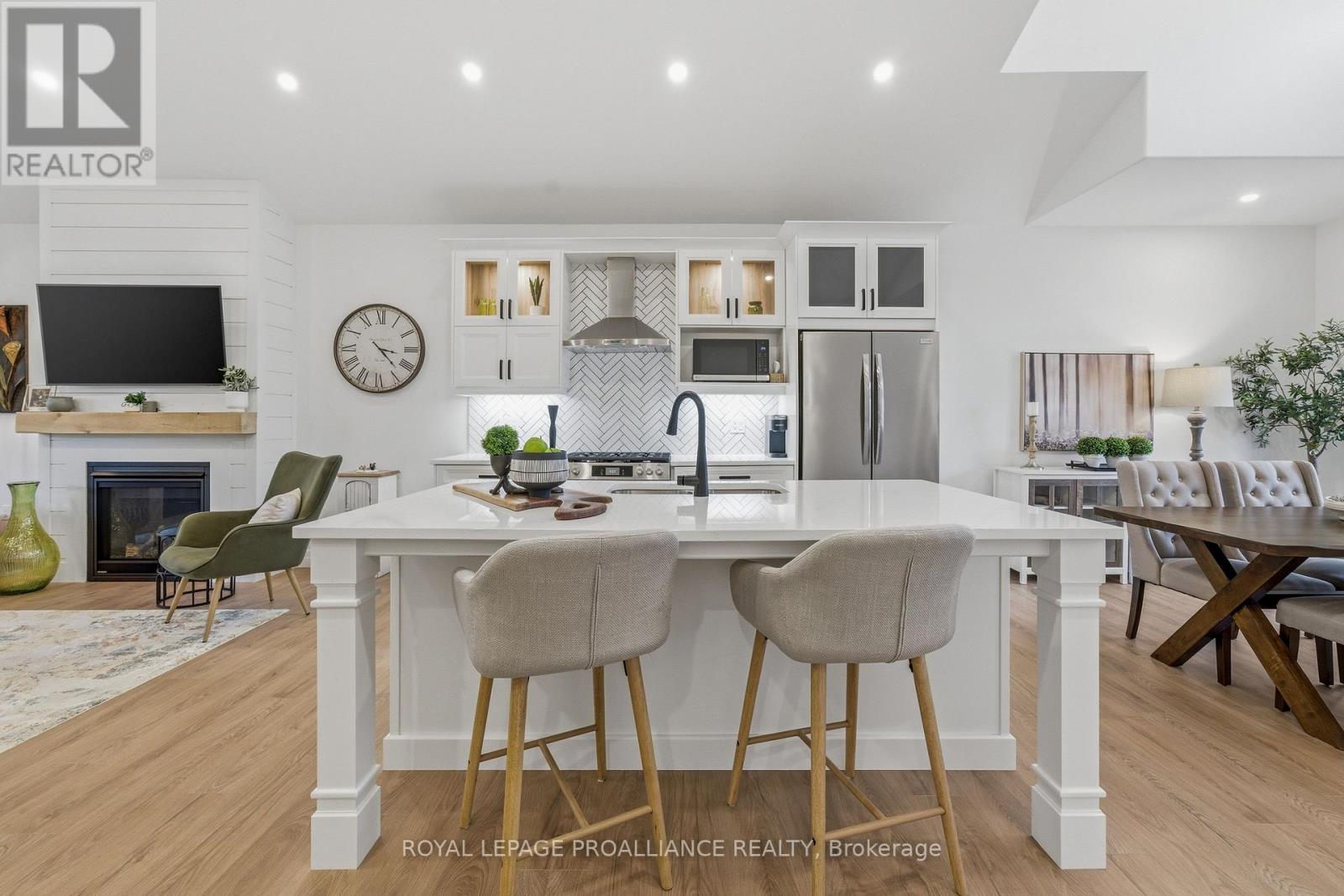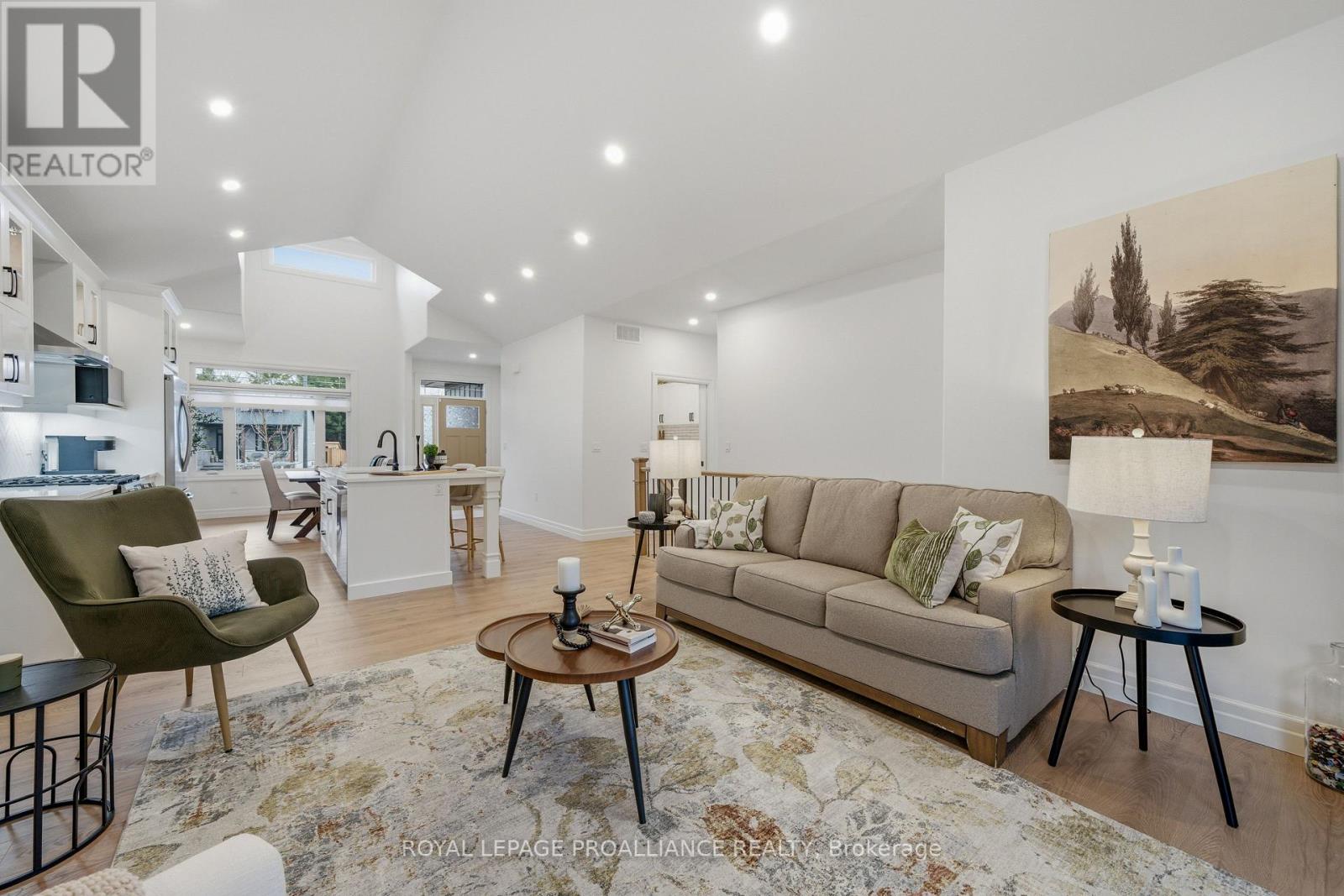 Welcome to 48 Deerview Drive in Quinte West-where modern comfort meets a peaceful, nature-inspired setting just minutes from the 401. Perfectly positioned in a sought-after neighbourhood west of Trenton, this newer home offers full city services, including Bell Fibe, while delivering a rare sense of privacy with protected green space behind-no rear neighbours, just trees and tranquility. Step inside and you're immediately drawn to the stunning wall of windows that frames the backyard like artwork, filling the home with natural light. The open-concept main floor features vaulted ceilings, upgraded flooring, and a warm, inviting living space anchored by a gas fireplace. The kitchen and living area flow seamlessly, ideal for both everyday living and entertaining. Designed with comfort in mind, the home includes a heated ensuite bathroom floor, a main floor office (or optional second bedroom), and a spacious primary retreat. Downstairs, the fully finished basement expands your living space with a large rec room, second gas fireplace, additional bedroom, and full bathroom-perfect for guests or extended family visits. Outdoor living is just as impressive, with composite decking, sleek glass railings with built-in blue lighting, a hot tub, and a beautifully landscaped yard featuring an in-ground sprinkler system in the front yard. This is a home for those looking to simplify without compromise-offering style, function, and a peaceful backdrop to enjoy for years to come. (id:64974)