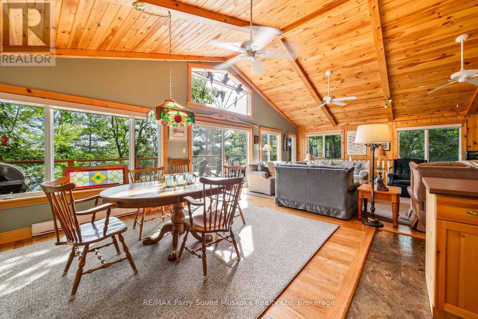 Beautiful 5-bedroom, waterfront home/cottage on Georgian Bay. 2nd bathroom (3 piece)on lower floor to be completed with a late winter/early Spring closing date.Nestled on the shores of Georgian Bay/Deep Bay area. Situated on a year-round municipal road, ideal for enjoying all-season activities at your doorstep. Gentle access into the water, with rippled sand perfect for young ones to play and deeper waters at the end of the dock ideal for boating enthusiasts and jumping in to refresh on a hot summer afternoon. Vaulted ceilings, open-concept layout enhance the spaciousness, while large picture windows flood the interior with natural light. Recently renovated with local pine and Oak hardwood floors. Lower living area with walkout.Upper and lower decks provide ample space for outdoor dining, relaxation, and taking in breathtaking views. Surrounded by mature trees, the property offers great privacy. A solid foundation pinned to granite rock. New hot water tank, pressure tank.Central vacuum system, Pacific energy, wood stove, solar shades. Granite stone integrated into landscaping. Storage shed at dockside, steel storage shed. Enjoy the unparalleled beauty of Georgian Bay's 30,000 Islands with seemingly endless boating and great fishing. Area activities include snowmobiling, ATVing, cross-country skiing, hiking, and more. Nearby marinas and crown land islands to explore. Imagine boating to a nearby restaurant. Go skating at the Carling ice rink, have fun at the Carling community centre for all ages, and join the community and cottage association for updates. The fun doesn't end there, Killbear Provincial Park is nearby. A short drive to the town of Parry Sound with schools, shopping, hospital, theatre of the arts and much more. A meticulously maintained property, renovated in 2010 by a skilled contractor. This doesn't have to be a once-in-a-lifetime experience it can be yours forever.Click on the media arrow for more info. (id:64974)