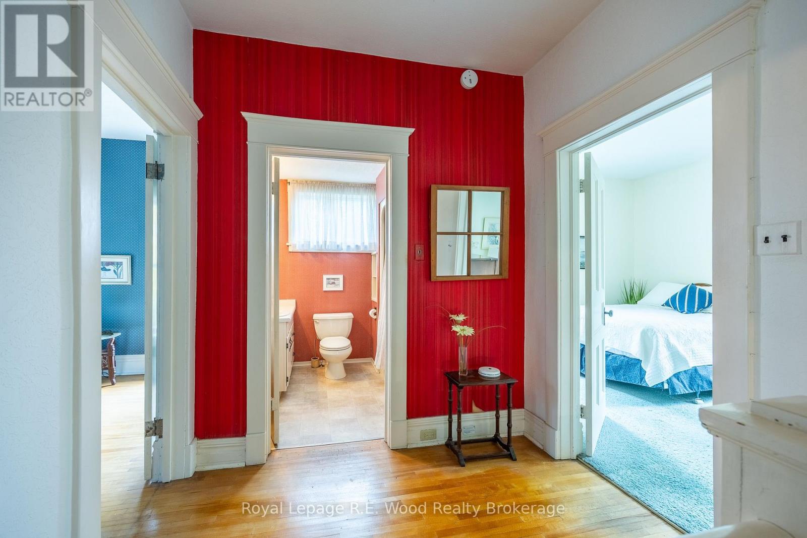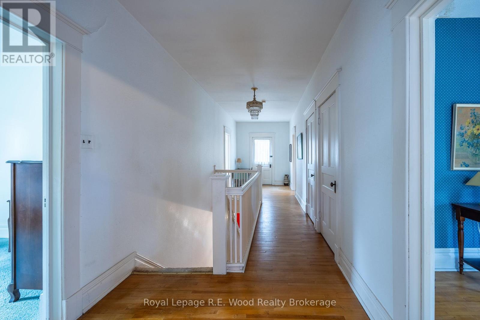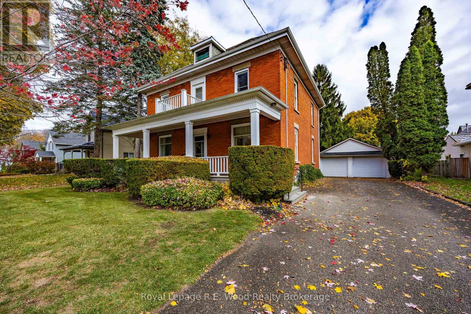 Magnificent In Town Estate! This home and property has been lovingly cared for while ensuring its historical provenance remains preserved with its classic red brick, custom mill work, slate roof, soaring main floor ceilings, hardwood, and classically appointed principal rooms. The home features 4 bedrooms & 2 bathrooms. A spacious Foyer, oversized eat-in kitchen, 2 pc. bathroom, spectacular great room, formal dining room &laundry on main level. Enjoy the sunrise from the expansive front porch. Upstairs are the 4 bedrooms and 4 pc. bathroom. Plus there's a full,accessible attic ready for your finishing touches! Detached oversized double car garage with convenient access from the home or backyard. Loads of space in the basement for extra storage, and a mid century modern recreation room with fireplace and bar. So, so cool! Conveniently located very close to schools, hospital, shopping, grocery, playgrounds and park, golf, trails, and beautiful Lake Lisgar; tranquility plus easy access to all amenities. Situated on almost a quarter acre with views of mature trees - this is a truly spectacular find! (id:64974)