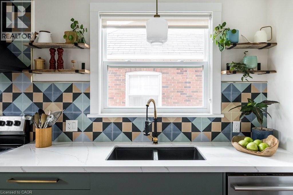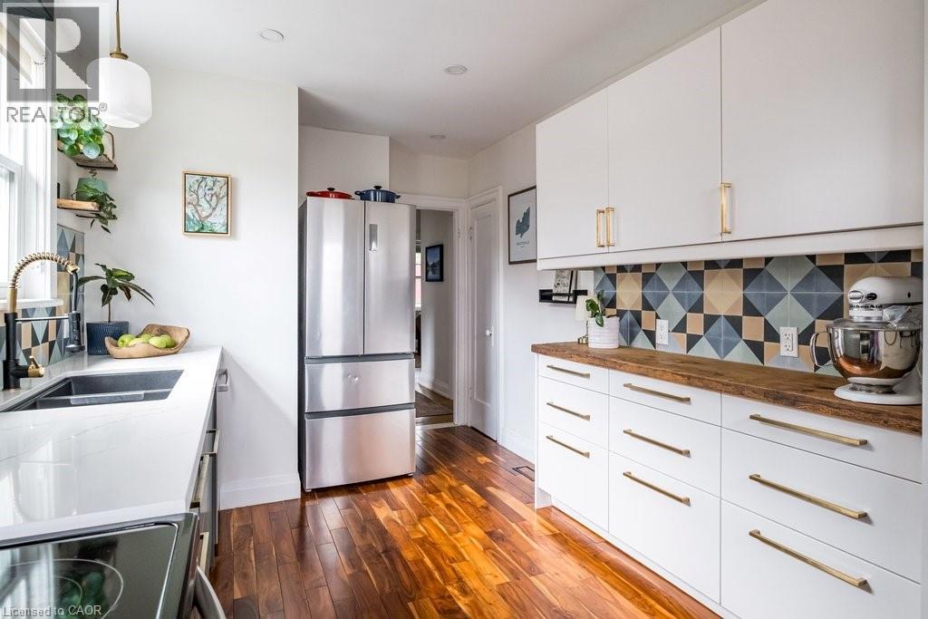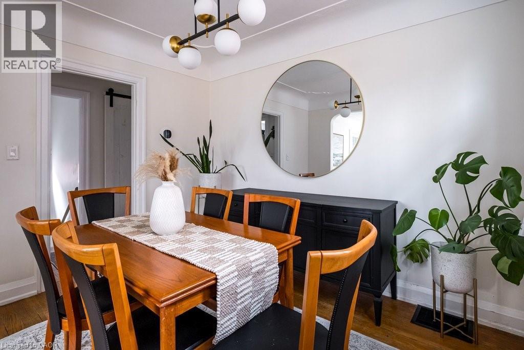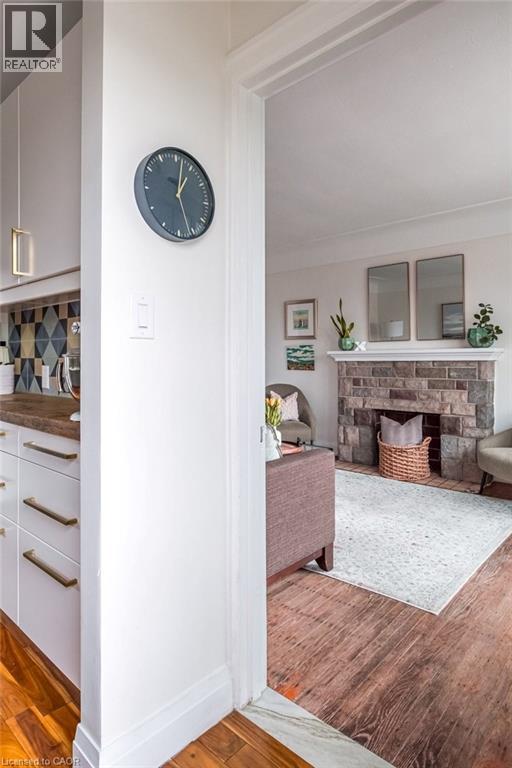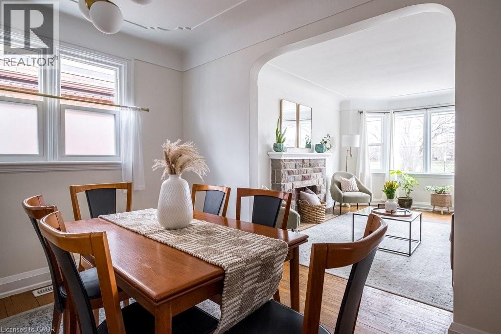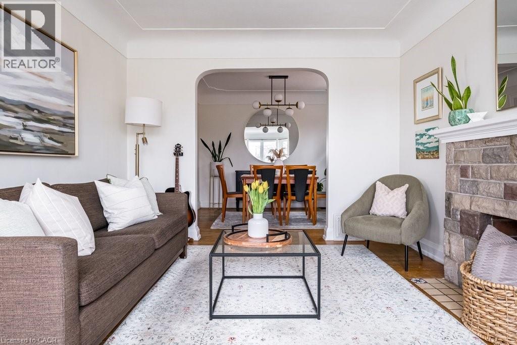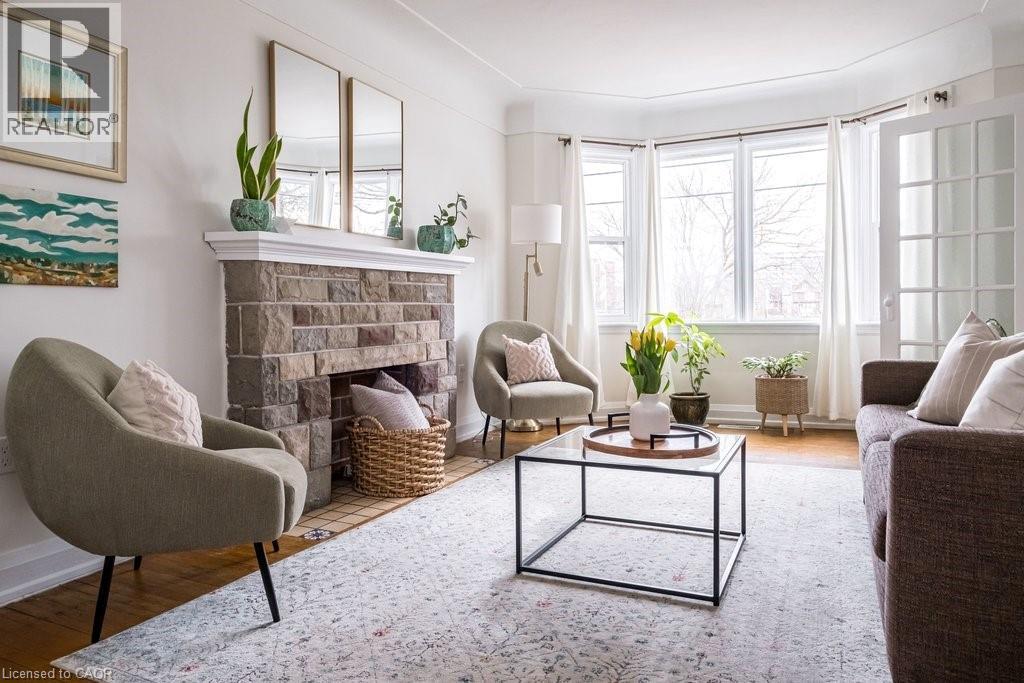 Welcome to this charming brick bungalow in fantastic Westdale - one of Hamilton's most desired neighbourhoods known for excellent schools, green spaces and trails, ease of access to highways and public transit, shopping, restaurants and overall a highly walkable lifestyle! You'll be immediately impressed by the contemporary and cool kitchen with whimsical backsplash, two toned cabinets and drawers (soft close of course), quartz and butcher block counter tops, deep double sink and oversized window to let the light in while you cook a meal. The large bay window floods the lovely living room with sunlight. Enjoy the character of original hardwood floors, stone fireplace surround with beautiful tile inlays and an inviting archway into the dining room - perfect for family meals. Two bedrooms with large windows and a stunning renovated bathroom with gorgeous green tiles and a rain shower head complete this level. Downstairs you will find a large yet cozy family room, perfect for movie nights. An ample sized soundproofed third bedroom with egress window and a stylish 3 piece bath offer coveted additional space for multiple purposes - use as a home office or space for an older child or a grandparent. Outside, enjoy a generous backyard ideal for gardening, playing or enjoying a summer meal. The front garden is home to a biodiverse assortment of indigenous plants and flowers that bloom from spring right through to fall. Don't forget the convenience of two car parking. This home is a fantastic opportunity for any buyer looking for an absolutely turn key home with many updates in an unbeatable neighbourhood. (id:64974)