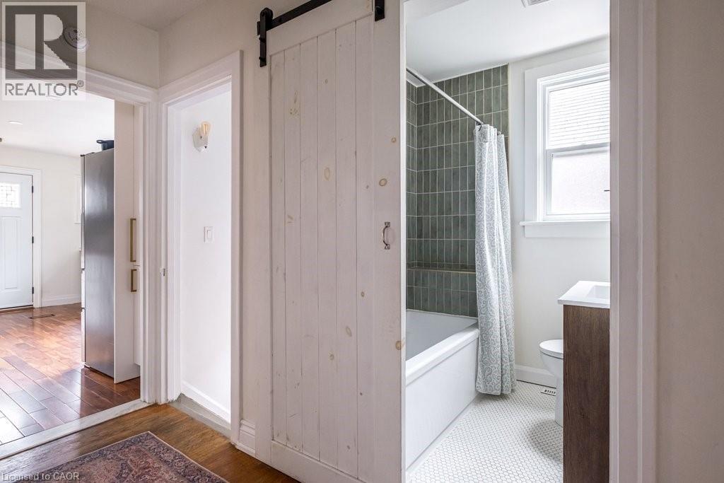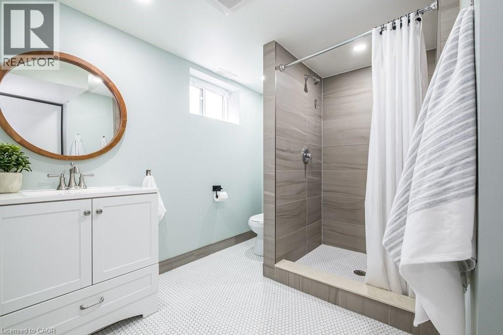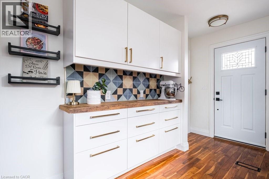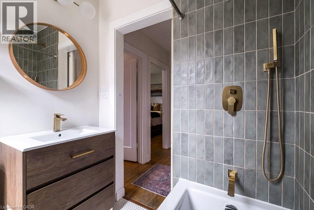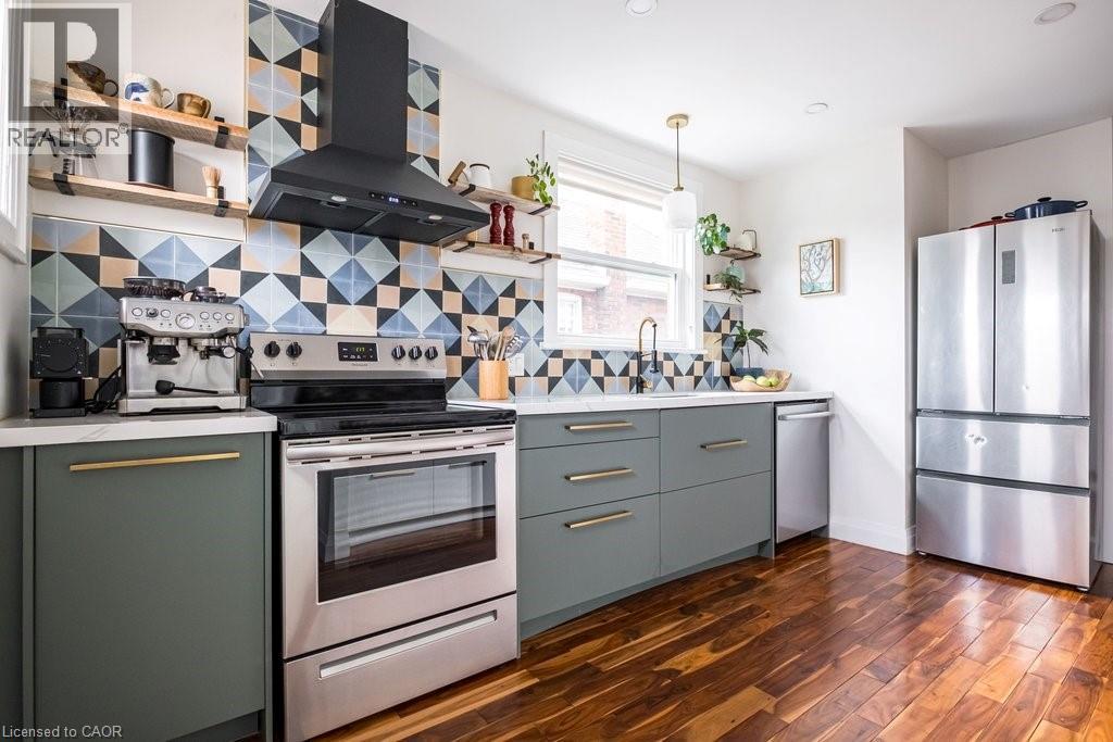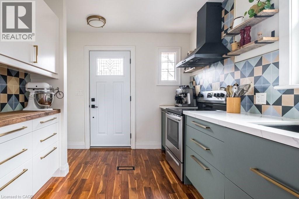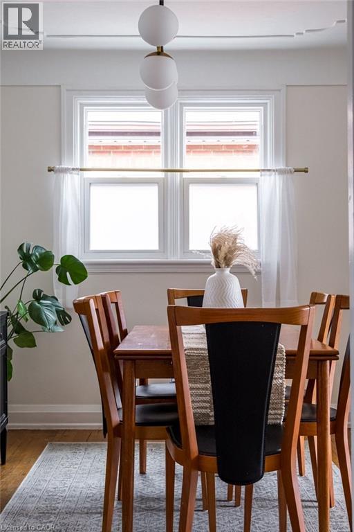 Welcome to this charming brick bungalow in fantastic Westdale - one of Hamilton's most desired neighbourhoods known for excellent schools, green spaces and trails, ease of access to highways and public transit, shopping, restaurants and overall a highly walkable lifestyle! You'll be immediately impressed by the contemporary and cool kitchen with whimsical backsplash, two toned cabinets and drawers (soft close of course), quartz and butcher block counter tops, deep double sink and oversized window to let the light in while you cook a meal. The large bay window floods the lovely living room with sunlight. Enjoy the character of original hardwood floors, stone fireplace surround with beautiful tile inlays and an inviting archway into the dining room - perfect for family meals. Two bedrooms with large windows and a stunning renovated bathroom with gorgeous green tiles and a rain shower head complete this level. Downstairs you will find a large yet cozy family room, perfect for movie nights. An ample sized soundproofed third bedroom with egress window and a stylish 3 piece bath offer coveted additional space for multiple purposes - use as a home office or space for an older child or a grandparent. Outside, enjoy a generous backyard ideal for gardening, playing or enjoying a summer meal. The front garden is home to a biodiverse assortment of indigenous plants and flowers that bloom from spring right through to fall. Don't forget the convenience of two car parking. This home is a fantastic opportunity for any buyer looking for an absolutely turn key home with many updates in an unbeatable neighbourhood. (id:64974)