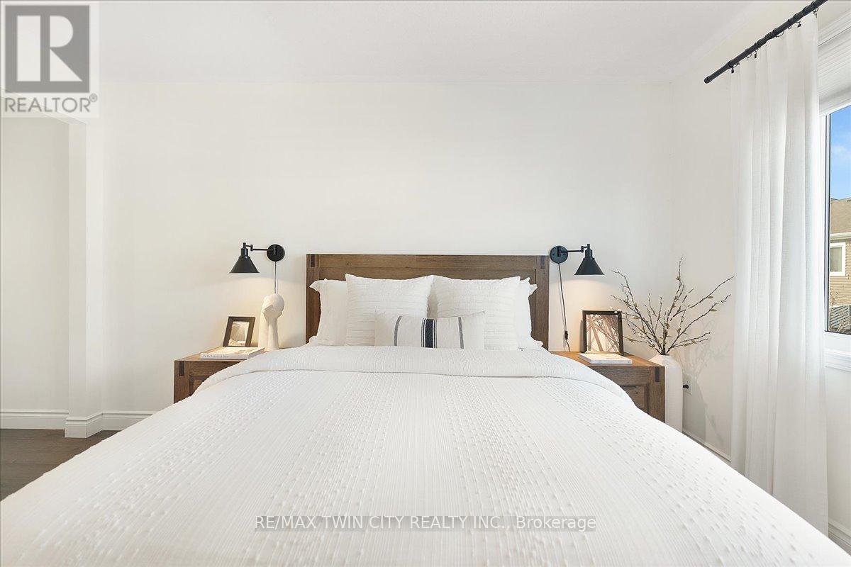 Welcome to this beautifully maintained 3-bedroom, 2.5-bath end-unit townhouse located in the heart of Cambridge. Offering exceptional space, comfort, and style, this move-in-ready home showcases numerous upgrades and refined finishes throughout. The bright open-concept main floor is ideal for both everyday living and entertaining, featuring upgraded laminate flooring throughout all levels, spacious living and dining areas enhanced with elegant crown moulding, and timeless California shutters on mainfloor. The upgraded kitchen is both stylish and functional, complete with quality countertops, ample cabinetry, a classic subway-tiled backsplash, and upgraded black stainless steel appliances. Upstairs, you'll find three generously sized bedrooms, including a spacious primary retreat with a private en-suite bath and walk-in closet. The fully finished basement provides valuable additional living space, perfect for a recreation room, home office, gym, or media area, all finished with upgraded laminate flooring for a seamless, modern look. Step outside to your private backyard oasis featuring a beautiful deck and gazebo, ideal for summer gatherings or relaxing evenings outdoors. Additional highlights include a single-car garage with private driveway parking. Conveniently located close to schools, parks, shopping, Highway 401 and major commuter routes, this exceptional home truly checks all the boxes. (id:64974)