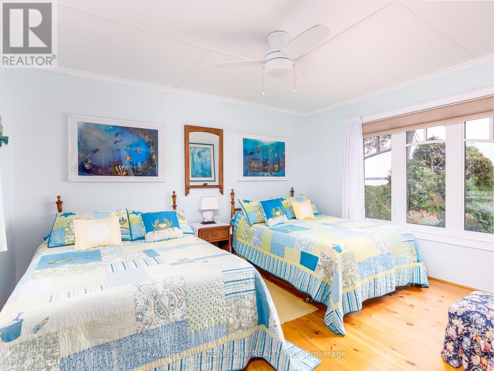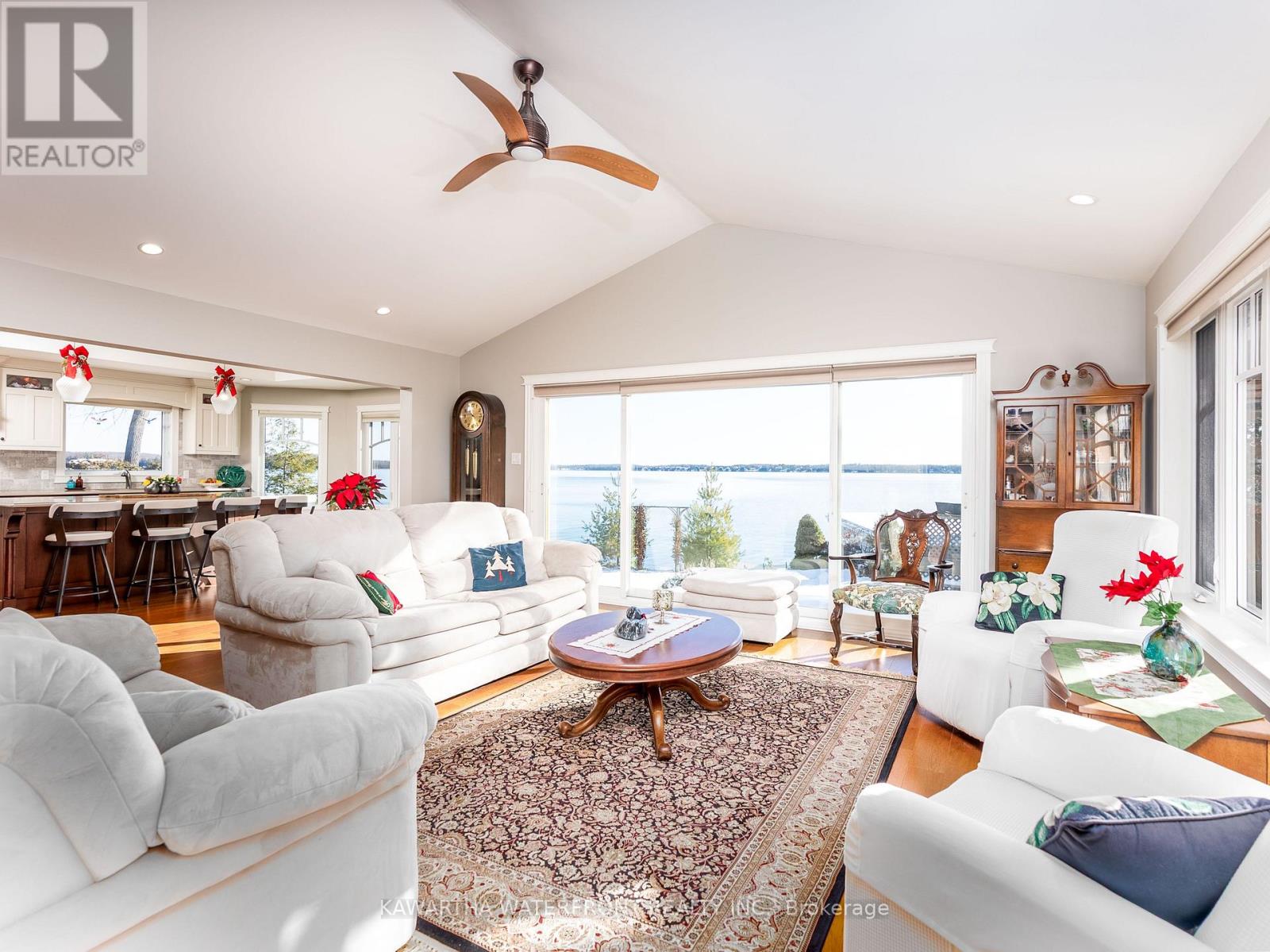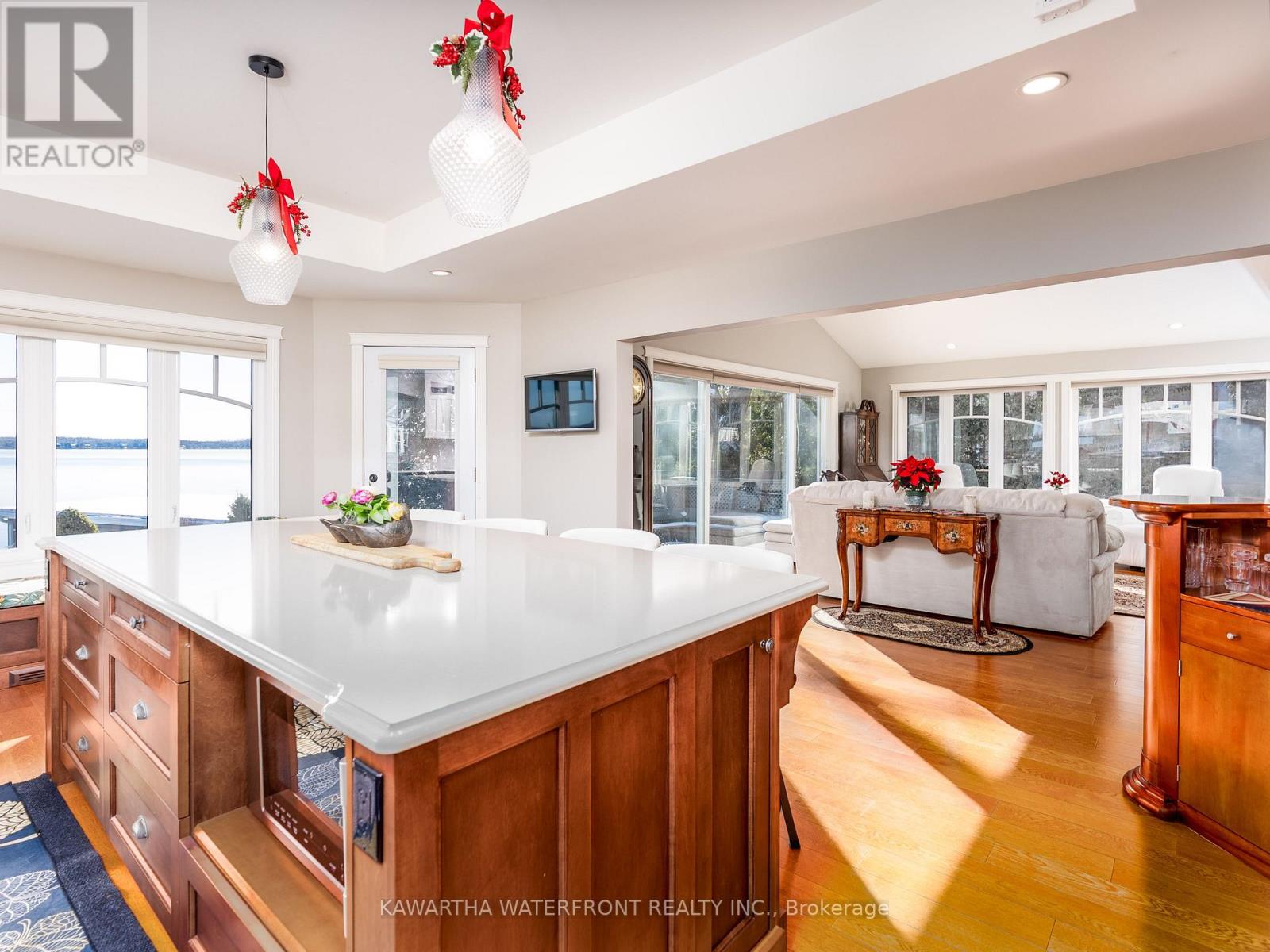 This is a comprehensively renovated and immaculately maintained Lake House plus Guest Cottage on Balsam Lake's Long Point, one of the most desirable locations on the lake where properties rarely come to market. For buyers seeking top quality waterfront, this property cannot be surpassed with its uniquely smooth, weed-free and gradually deepening limestone slab bottom that extends far out from the entirety of the 100 ft of waterfront - swimming here is divine in the famously clear Balsam Lake water. The Lake House has been sensitively renovated to maintain its original cottage charm while serving as a comfortable and efficient year-round home capable of hosting large gatherings. The main floor is highlighted by a spectacular Hickory Lane kitchen and living room with high ceilings and expansive windows that provide abundant light and glorious lake vistas. The dining area is exceptionally spacious and elegant with vaulted ceilings and a stone fireplace with an efficient wood-burning insert. High quality engineered hardwood flooring ties together all main floor living areas, including the main floor bedroom and 3 pc bathroom. The fully finished basement features a large rec room, den, two bedrooms, a 4 pc bathroom and a large laundry room. The exceptionally charming Guest Cottage blends in seamlessly with the Lake House with its similar palette and high quality windows, and is perfect for young families with its large bedroom, kitchen, living room and 3 pc bathroom. A rebuilt wetslip boathouse that can hold a 21 ft boat and a three car garage are tremendous assets. Mature hedges around the perimeter of the almost half-acre lot provide excellent privacy, and the exterior stonework and perennial gardens add to the magic of this breathtaking property. The Long Point Association owns over 170 acres in the interior of the Point and maintains walking trails, tennis/pickleball/sports courts, a playground, and hosts regattas and other events throughout the summer. (id:64974)