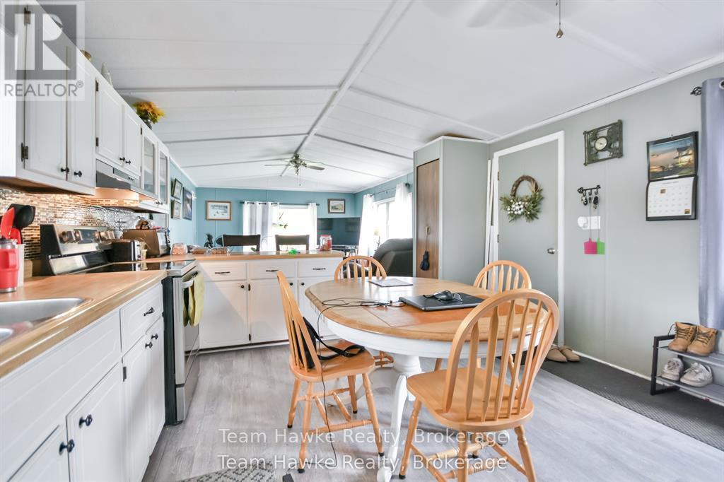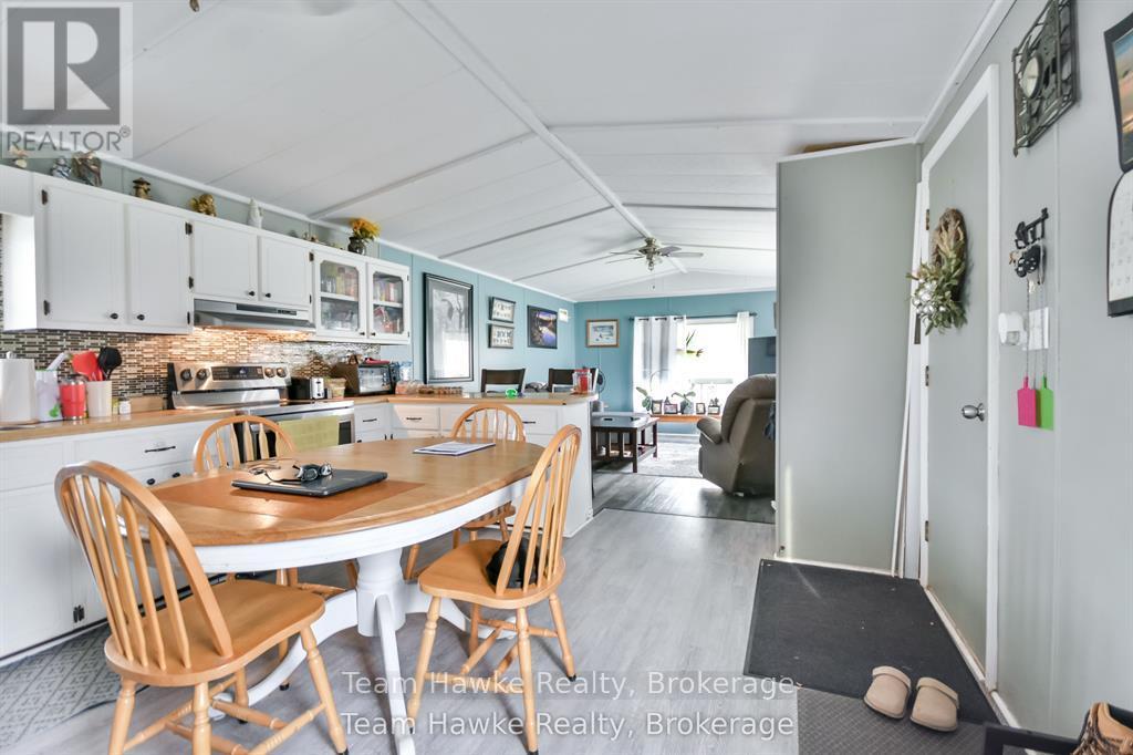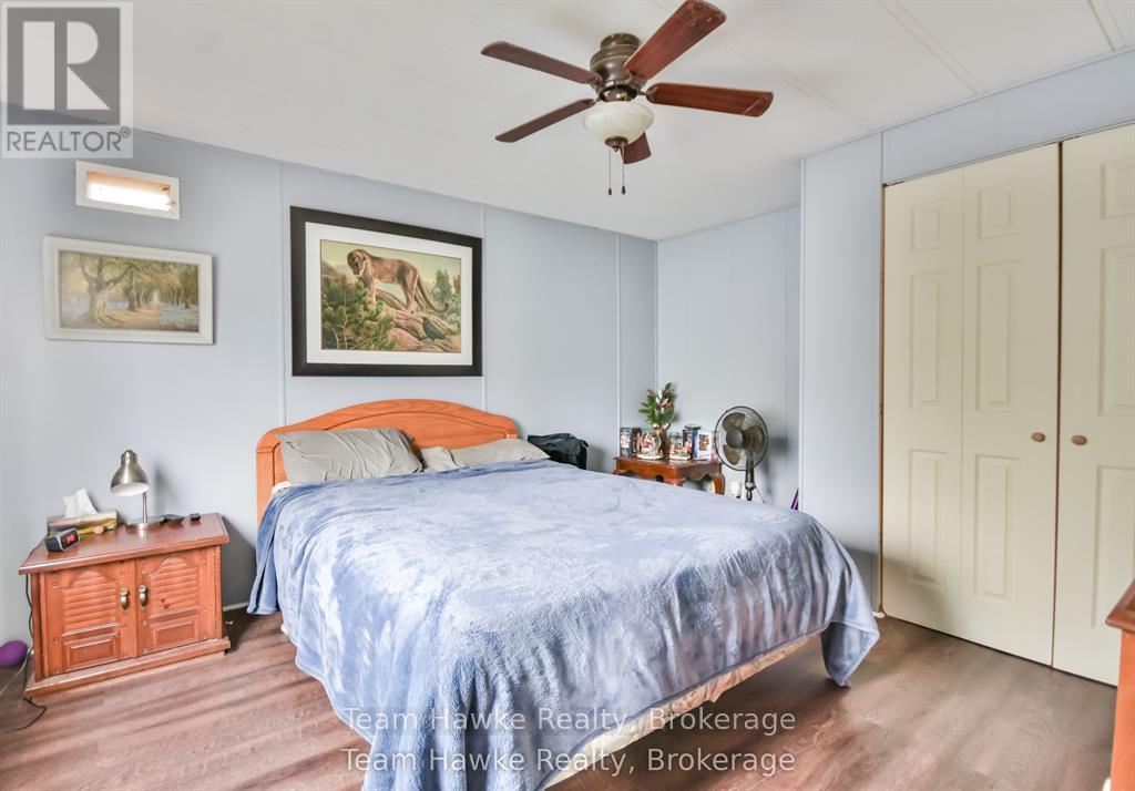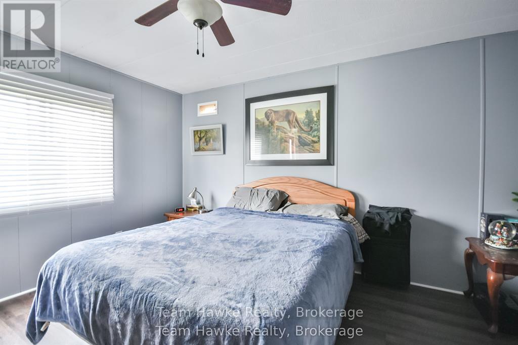 A great opportunity to downsize your home and move into this clean and comfortable mobile home in Midland. Located in Smith's Camp, a community on the shores of Little Lake, this two bedroom home has an open concept layout with updated flooring throughout. Everything is on one level. Easy access to walk the trails of Little Lake Park, access to public transportation at the entrance, and a walking trail to Walmart. This location features plenty of outdoor living space as well, plus two storage sheds. Gas heat. Don't miss out. (id:64974)