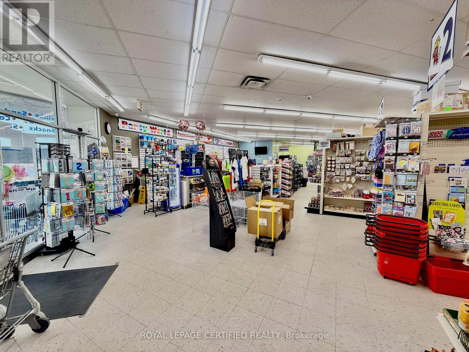 A rare opportunity to acquire a profitable and long-standing business in the heart of Deep River. Dollar King is a well-established operation located in a busy plaza and surrounded by residential buildings that consistently boost foot traffic. This one-stop shop offers multiple income streams, ensuring steady traffic and reliable revenue throughout the year. The store carries a full range of dollar store items, convenience goods, party supplies, seasonal products, cigarettes, and lotto sales, along with an ice cream counter and the only laundromat in town. The laundromat generates steady business year-round and becomes especially profitable during peak cottage season. A major highlight is the rapidly expanding beer sales: with the closure of the only beer store in town, this location has quickly become the go-to destination for beer purchases, significantly boosting profitability and offering excellent growth potential. This location also offers excellent value with low rent that includes water and heat, keeping overhead low. A large office with a full washroom can be used by the owner or staff for overnight stays, and a spacious basement provides additional income opportunities by subletting for children's activities, birthday parties, or community events. Deep River is home to the Canadian Nuclear Laboratories (CNL), which are expanding operations and expected to bring more families and workers into the community a positive outlook for future business growth. This turnkey operation is ready for new ownership and offers strong income potential with growing demand for its products and services. (id:64974)