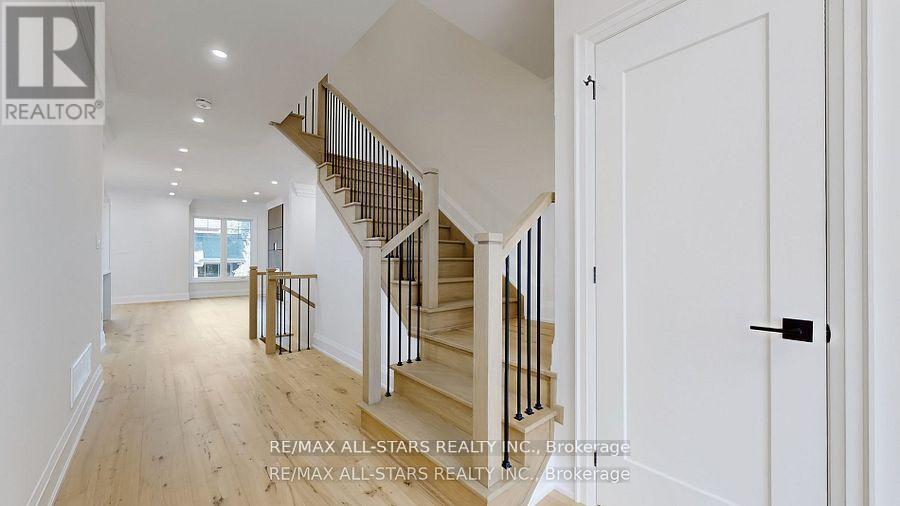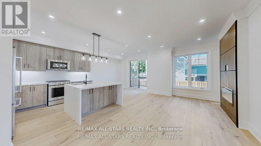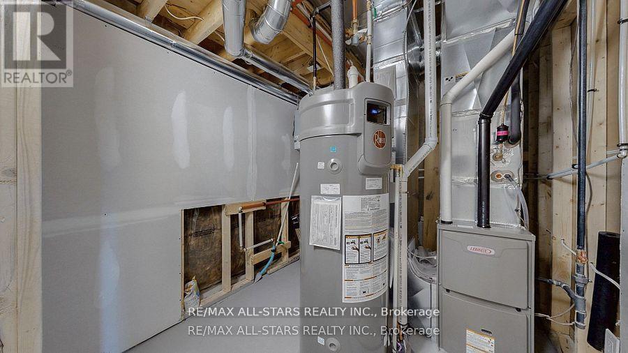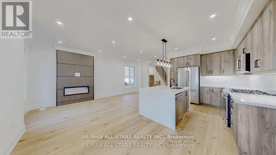 When only "brand new" will do! This custom-built "freehold" semi by top-ranked Tarion builder Coral Creek Homes offers 2,400 sq ft of thoughtfully designed living space. The fully finished basement features above-grade windows, plush carpet, a spacious rec area, 3-piece bath, and ample storage. The maintenance-free brick and stone exterior is complemented by a paved driveway, sodded yard, and 6' rear privacy fence. Step out from the kitchen to the deck with direct BBQ gas line-perfect for entertaining. Inside, 9' ceilings enhance the open, bright feel. Upgraded 7 3/4" hardwood and large porcelain tile flow throughout. Stylish trim includes 7" baseboards, 3" casings, 7' doors, and 7" crown molding on main floor, hallway, and primary bedroom. Oak stairs with black steel pickets add architectural flair. Modern black fixtures, matte hardware, and LED pot lights complete the modern aesthetic look. The family room boasts a 42" electric fireplace within a wood feature wall setting and is pre-wired for a flat screen TV. Upstairs, three bedrooms include a luxurious primary suite with hardwood floors, large windows, walk-in closet with organizer, crown molding, and sleek 5-piece ensuite. The conveniently positioned second-floor laundry offers an LG washer/dryer, quartz folding counter, cabinetry, sink, and tile floor. The bright, stylish kitchen overlooks family and dining areas with a quartz waterfall island, subway tile backsplash, valence lighting, soft-close cabinets, and KitchenAid appliances. Located within easy walking distance to Uxbridge High School, Joseph Gould Public School, parks, Uxpool, curling club, and downtown shopping, this home also includes a 7-year Tarion New Home Warranty. Call this beauty home and enjoy style, comfort, and peace of mind all in one. (id:64974)