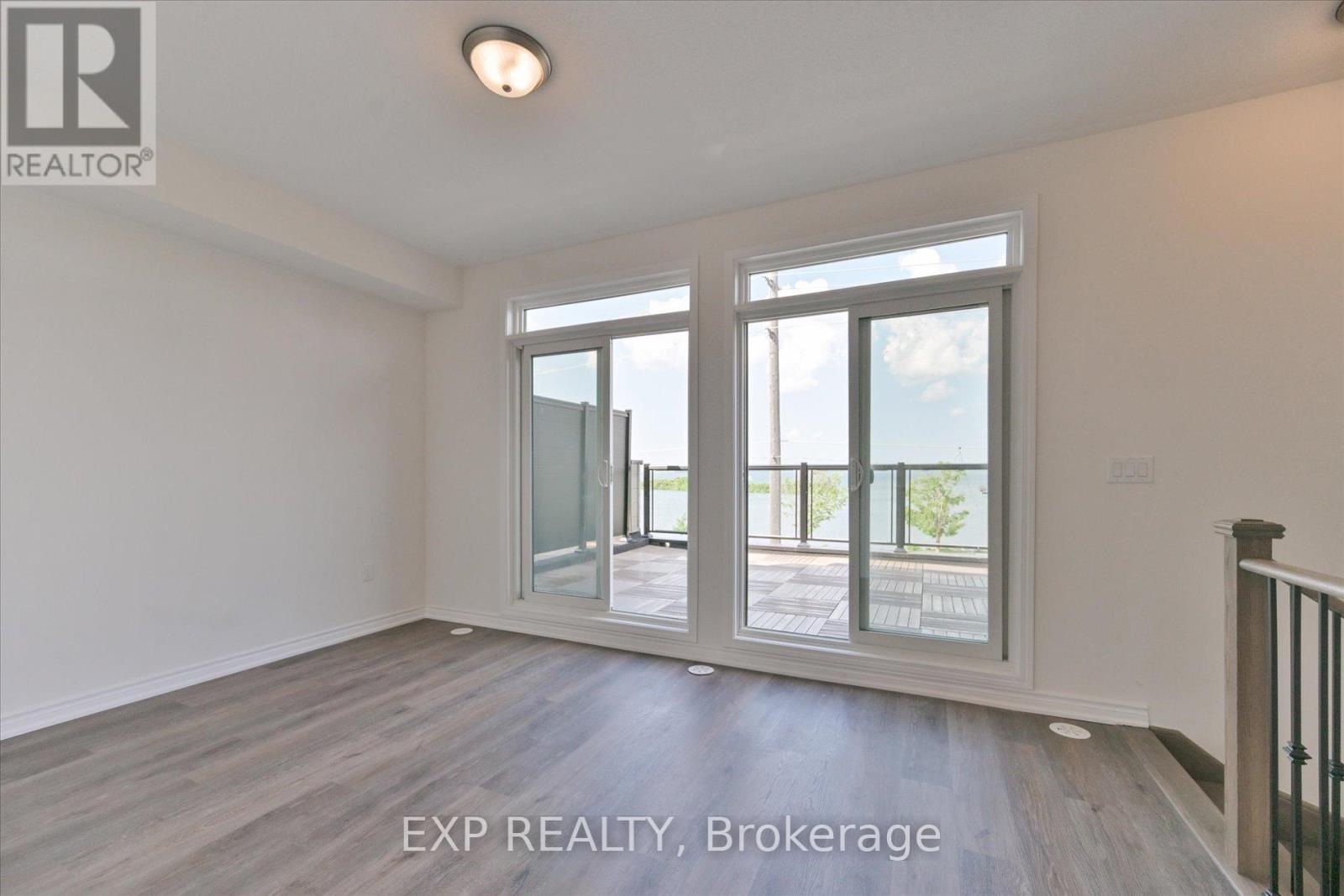 Welcome to Premium Water-View Living at Its Best! This stunning, newly built 3-storey townhome is situated in the exclusive Orillia Fresh community, offering unparalleled views along the serene shores of Lake Couchiching. With over 2,000 sq. ft. of luxurious, maintenance-free living, this is one of the larger units in the neighbourhood boasting panoramic water views from every level, including a spacious private rooftop terrace perfect for entertaining or unwinding while soaking in breathtaking sunsets over the lake. Every inch of this home has been designed to enhance its waterfront beauty. The open-concept main floor features soaring ceilings, oversized windows, and sun-filled living spaces that bring the stunning lake views right into your home. The chefs kitchen is equipped with sleek quartz countertops, premium stainless steel appliances, and a walk-out balcony ideal for enjoying your morning coffee with the lake as your backdrop. The upper-level primary suite is a true sanctuary, complete with a spa-inspired ensuite and its own private balcony overlooking the sparkling shoreline. Two additional spacious bedrooms and 2.5 beautifully designed bathrooms offer comfort and privacy for family and guests. The versatile ground-level bonus room is perfect for a home office, rec room, or guest suite.Additional features include a 1-car driveway, energy-efficient HVAC, and luxurious vinyl plank flooring throughout. Step outside and enjoy waterfront trails, a residents-only clubhouse, parks, and easy access to downtown Orillia's boutique shops, dining, and the historic Opera House. You'll have a front-row seat to the Canada Day fireworks and year-round events, all just steps from your door. This is more than just a home its the lifestyle you deserve. Book your private tour today! (id:64974)