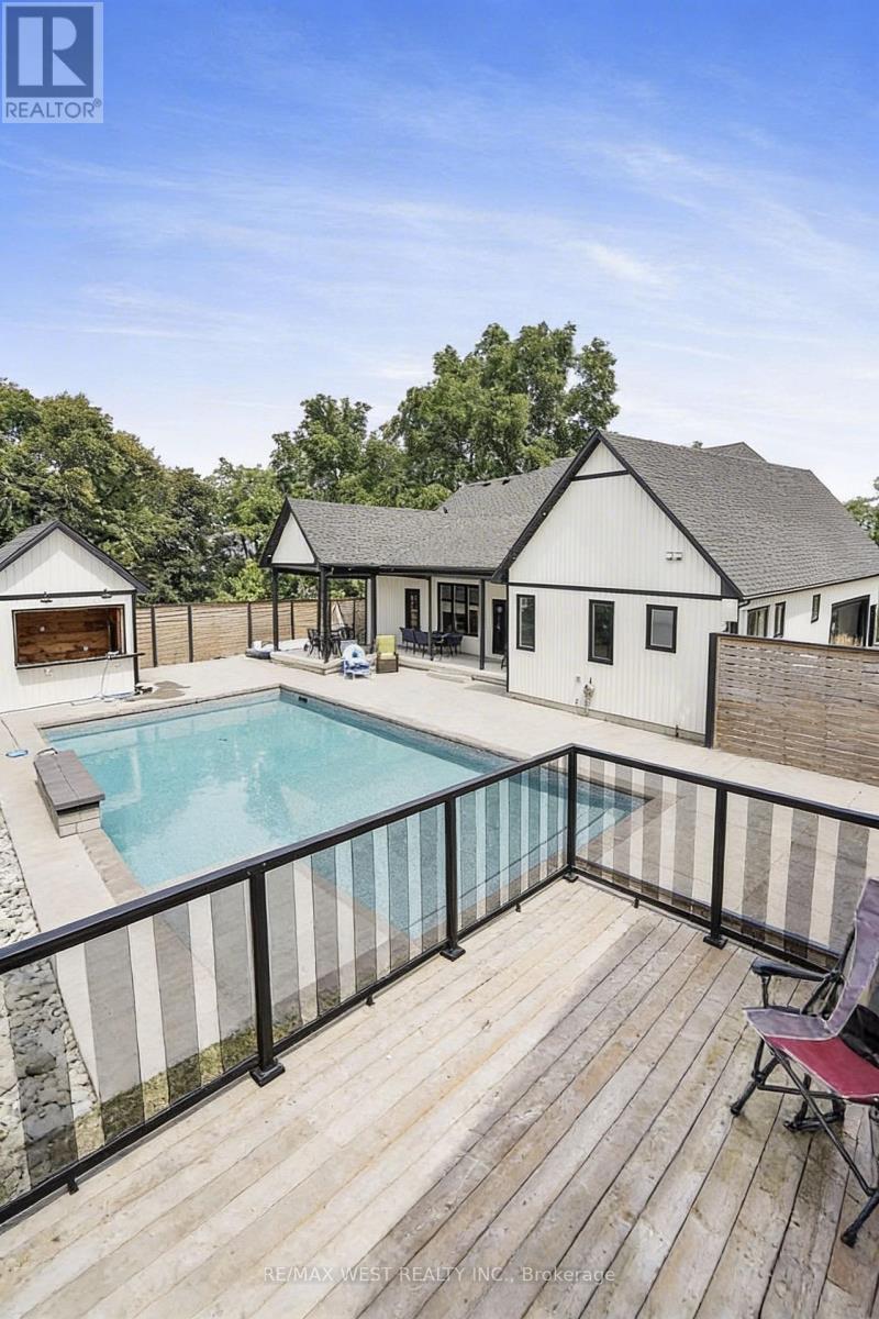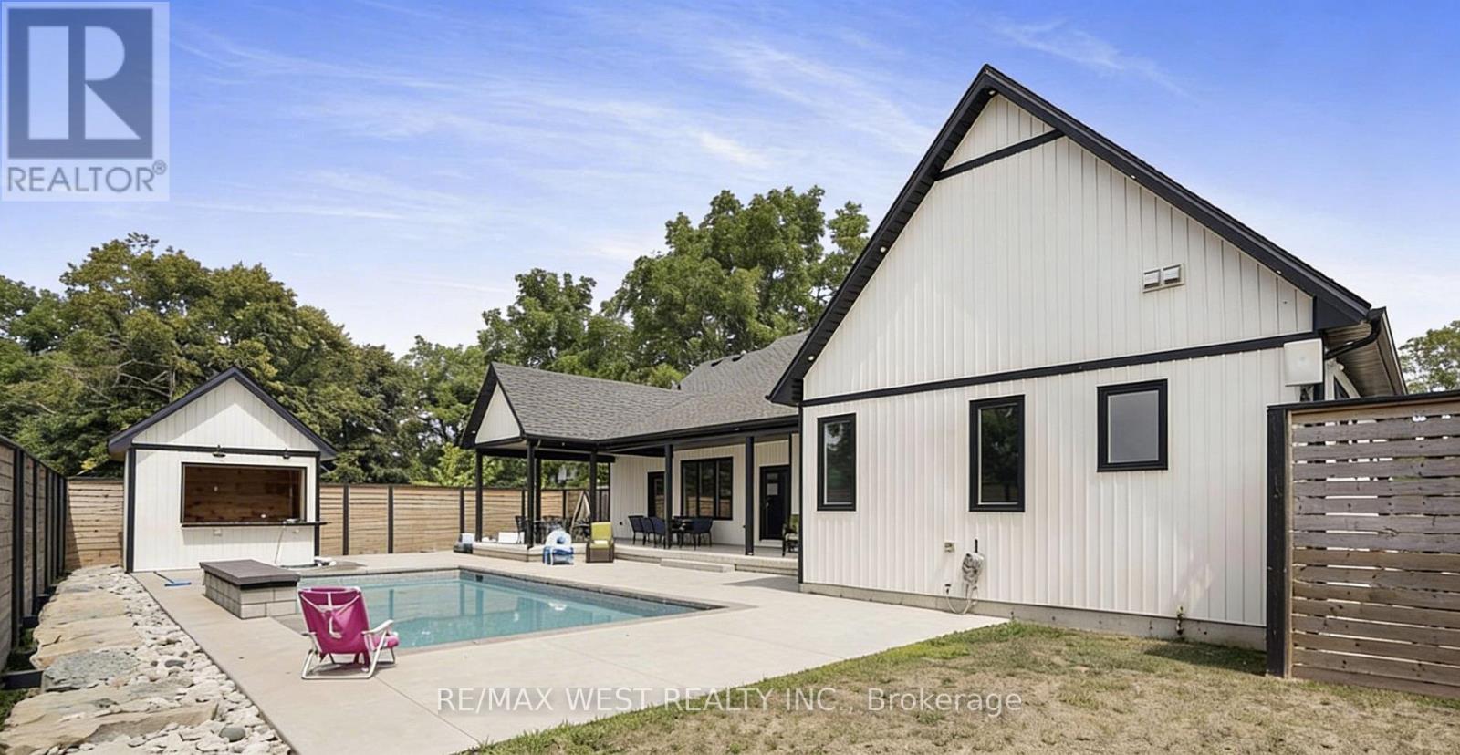 Nestled on an expansive 0.64-acre lot just a short stroll from a sandy beach, this custom farmhouse-style bungalow with loft blends timeless design with modern luxury. Built with exceptional craftsmanship and premium materials, the home showcases an inviting open-concept layout ideal for both everyday living and entertaining. Featuring three spacious bedrooms and a gourmet kitchen adorned with high-end finishes, this residence exudes elegance and comfort throughout. The private backyard serves as a true retreat-complete with an in-ground saltwater pool, covered patio, and a pool house with bar, perfect for summer gatherings. A rare 4-car heated garage setup enhances the property's appeal, offering two attached bays and a detached garage with an upper loft boasting panoramic views-ideal for a studio, home office, or guest suite. Combining superior quality, thoughtful design, and a relaxed coastal ambiance, this exceptional property offers the best of both worlds-tranquil beachside living with convenient access to major highways, shopping, Sherkston Shores, and Crystal Beach. (id:64974)