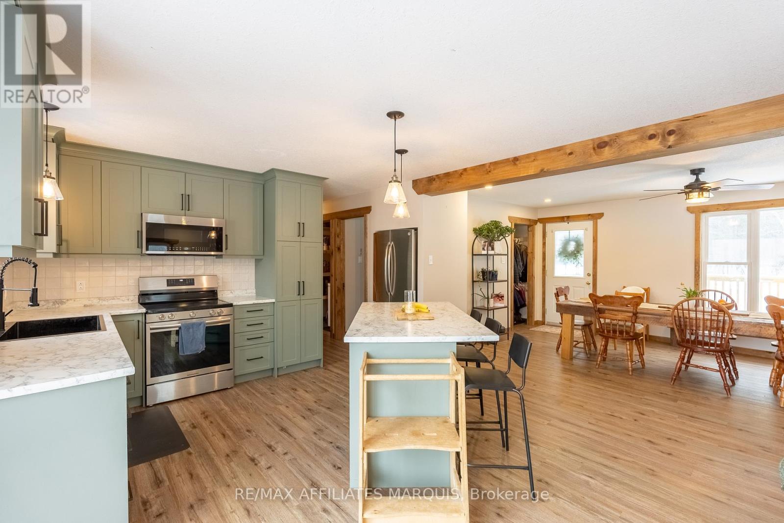 Welcome home to your beautifully renovated 3 + 1 bedroom, 2 bathroom bungalow, situated on a picturesque 1.04-acre lot. This meticulously updated residence offers a perfect blend of modern luxury and tranquil country living, making it an ideal sanctuary for a young family to thrive. Enjoy a bright and airy open concept layout that seamlessly connects the dining, and kitchen areas, with a newly renovated kitchen equipped with brand-new appliances, perfect for culinary adventures. With new siding, roofing, and windows, this home boasts enhanced curb appeal and energy efficiency, while the newly landscaped yard adds to the charm of this inviting property. The additional living space in the finished basement includes a versatile playroom/office and a convenient walkout, designed for family gatherings and entertaining. Stay cozy year-round with a wood heat system complemented by a propane furnace, the wood stove is included in the sale. Nestled on a peaceful private road, this property offers tranquility while providing ample space for outdoor activities, gardening, and relaxation. With plenty of parking options and room to build a garage or workshop, the possibilities for customizing your outdoor space are endless. This home is more than just a place to live; its a lifestyle. With its generous layout, modern conveniences, and expansive outdoor space, your family will have all they need to create lasting memories. Don't miss your chance to own this exceptional discover the perfect backdrop for your family's next chapter! (id:64974)