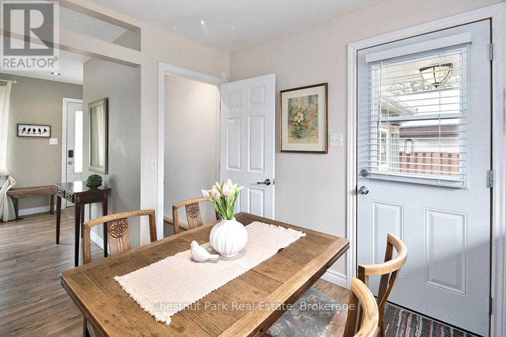 This charming and well maintained bungalow with oversized garage, offering ample room for a workshop area, provides inspirational living on a spectacular half acre ravine lot with towering trees and a meandering stream below. The property also boasts glimpses of Georgian Bay from the front lawn, while an unopened road allowance along the west boundary adds extra privacy. Inside, the residence is bright and spotless, featuring a practical 2+1 bedroom, 2-bath layout. The open, inviting design is "cute as a button," with excellent livability across two finished levels. Each floor offers walk-outs to the park-like backyard, with ample perennials and room to explore! The main floor includes an updated eat-in kitchen with Woodcrest cabinetry, opening to a spacious deck and BBQ area ideal for entertaining. A cozy living room, a primary bedroom overlooking greenspace, a modern 4-piece bathroom, and a versatile second bedroom or den complete this level. The finished lower level has a welcoming sitting nook, third bedroom, 3-piece bathroom, and tidy laundry room. There's also a comfortable recreation room with an oversized window framing peaceful ravine views, perfect for relaxation and family activities. Since 2013, the home has seen numerous updates: kitchen, bathrooms, most windows, and laminate flooring. Other features include a F/Air N/Gas furnace and hot water tank (2015), 2-Ton C/Air (2020), refurbished patio area with landscaping boulders, partially rebuilt deck, and a well-lit car-and-a-half garage addition (2016) with a concrete floor and 2 man doors. The property is near Kelso Beach Park, waterfront trails, St. Julian's Park, Keppel-Sarawak Elementary School, and many city amenities, offering recreation and convenience. This rare gem provides seamless indoor-outdoor living, blending nature, beauty, and comfort in one special place. (id:64974)
