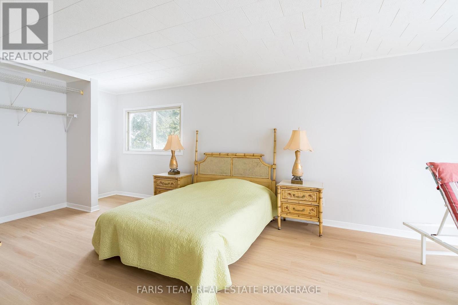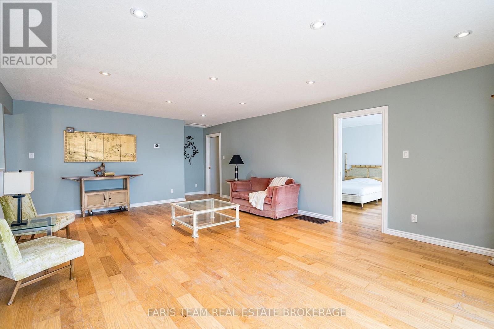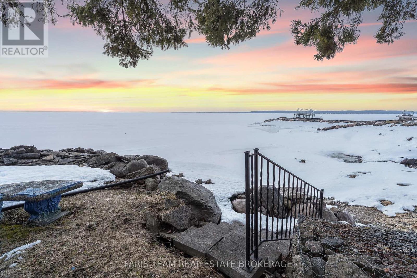 Top 5 Reasons You Will Love This Home: 1) With over 123-feet of real, accessible shoreline and a stunning south-easterly view toward Snake Island, you will wake up to sunrises over the water and end the day with a golden evening glow that simply cannot be replicated inland, tucked away on a quiet dead end street in a mature and established neighbourhood, the setting here is one of genuine tranquility from the moment you arrive 2) This is one of those rare and coveted shorelines that is rarely for sale, peaceful, mature, and deeply treasured, while being surrounded by established properties and mature trees, the atmosphere is calm and unhurried, offering a chance to embrace a lifestyle that few ever get to experience and even fewer are willing to let go of 3) The additional rear parcel offers meaningful room to grow, where you can imagine a detached studio, a guesthouse, a workshop, or a garage to showcase a collection of vintage cars and recreational toys, the possibilities here extend well beyond the walls of the home itself 4) A thoughtful layout featuring three bedrooms and three bathrooms, an updated kitchen, hardwood flooring, open-concept family areas, a Muskoka room, a spacious primary suite, a sauna, and a walk-out lower level that connects you directly to the water, all designed for effortless everyday living and genuine year-round enjoyment 5) Freshly painted throughout with an interlock driveway, a single-car garage with inside entry, a patio perfect for entertaining, and a forced air heating to carry you comfortably through every season, this is a home where the water views follow you from nearly every room, making it as livable as it is beautiful. 1,448 above grade sq.ft. plus a finished lower level. (id:64974)