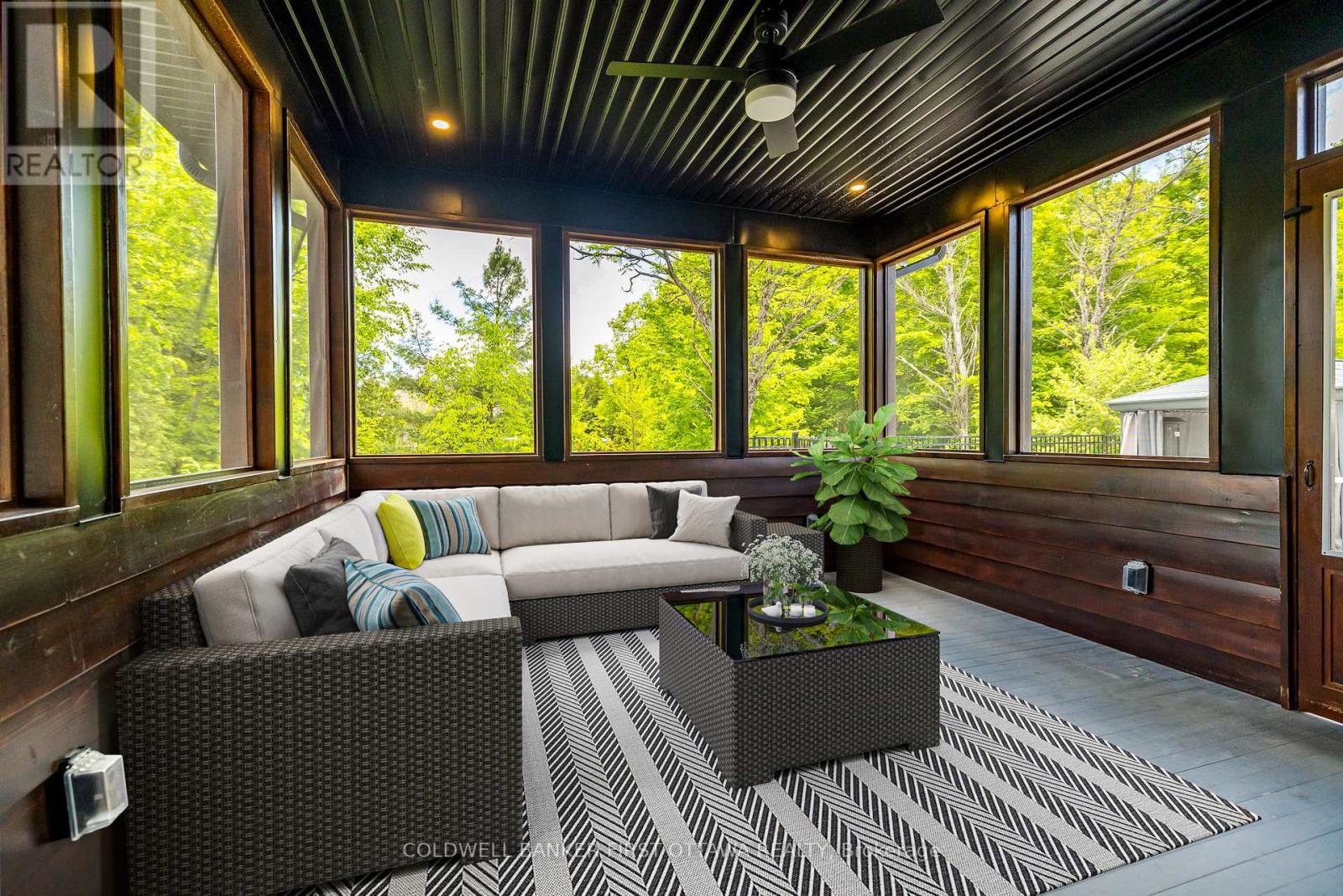 Welcome to this thoughtfully designed, newly built luxury home crafted for ideal multi-generational living. Set on two acres of lush green space and surrounded by mature forest, the property features two distinct residences, each with its own private entrance and garage.The main home makes a striking first impression with its charming wraparound porch and serene natural setting. Inside, the smart and spacious layout includes a main-floor office or den, a grand family room, and a light-filled kitchen with expansive windows that frame uninterrupted views of the outdoors.Every detail has been carefully curated from custom built-ins and elegant trim to radiant in-floor heating and upscale lighting. Upstairs, you'll find four generous bedrooms and three full bathrooms, including a luxurious primary suite and a convenient Jack-and-Jill bath.The fully finished lower level is an entertainers dream, featuring a large rec room ideal for movie nights or game day, a dedicated home gym, an additional bedroom, and a full bath all with heated flooring for year-round comfort.The secondary dwelling offers true bungalow-style living with a main-floor primary bedroom, a spacious laundry/mudroom off the garage, a full bath, and direct access to the shared backyard. Downstairs, a large rec room and bonus room offer flexible space for guests, hobbies, or additional living.Step outside to your private backyard retreat fully landscaped and complete with a 16 x 40 in-ground pool, composite decking, screened-in porch, pool shed, interlock patio, wrought iron fencing, and an elevated fire pit area perfect for summer days and starlit evenings. (id:64974)