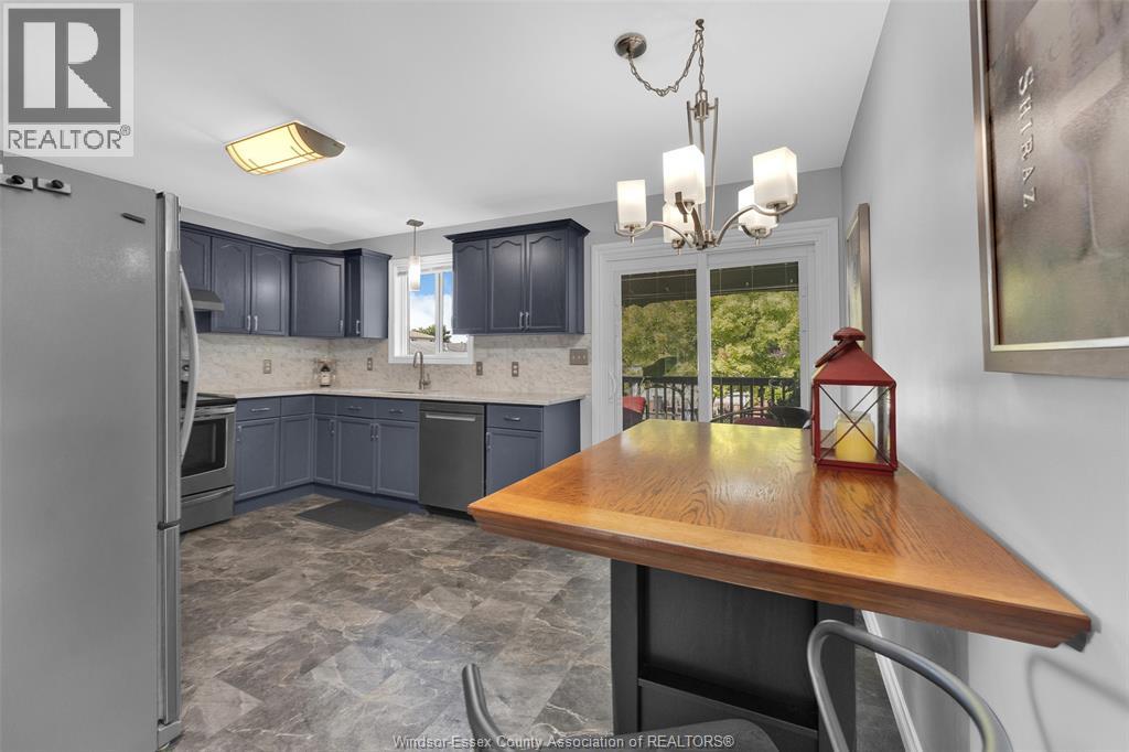 This beautifully renovated raised ranch is nestled in a quiet subdivision just minutes from the historic downtown core of Amherstburg. The main level offers an open concept design featuring a bright cozy living room and a large dining area including a separate sitting area for families that love to entertain. The kitchen has been updated with granite counters and tiled flooring with plenty of room and storage space for the family Chef. Also on the main floor are 3 spacious bedrooms and a 4 piece bathroom. The fully finished lower level is bright with natural sunlight and features a large open concept family room with a gas fireplace, an additional bedroom, 3 piece bathroom and laundry room. The large deck and patio area are perfect for relaxing with that morning coffee or evening glass of wine. The double car garage and extra wide concrete driveway has been perfectly maintained and features a new insulated garage door. Recent (2025) updates include granite counters throughout the kitchen and bathrooms; hardwood floors on the main level; tiled flooring in the kitchen, bathrooms and entrance way; carpet in the bedrooms and lower level; new doors throughout the interior and exterior; new windows; and so much more! Furnace and central air replaced in 2019. This home is a MUST SEE!!! Seller reserves the right to accept or decline any offer, including pre-emptive offers. Offers to be presented March 18, 2026 at 6:30pm. (id:64974)