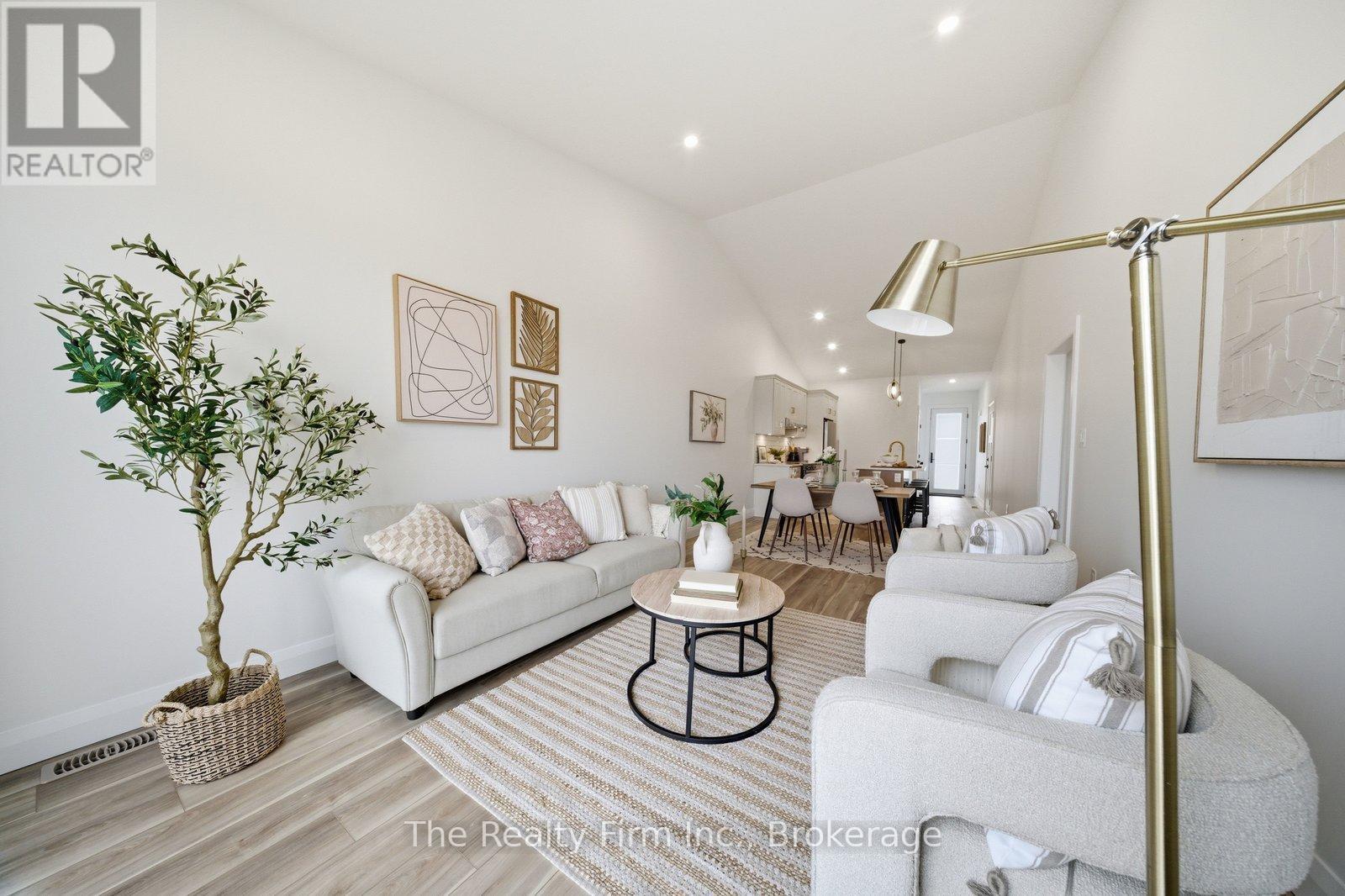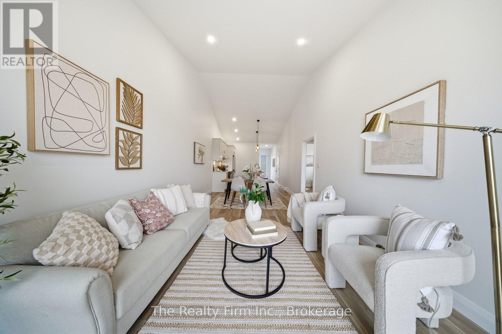 Welcome to this beautifully crafted bungalow by Deroo Fine Homes, located at 483 Gillespie Street in Woodstock - a local builder synonymous with trust, quality, and excellence. Thoughtfully designed with top-tier materials and timeless finishes, this home offers the perfect blend of comfort and style. The bright, open-concept main floor is highlighted by soaring cathedral ceilings, creating an airy and inviting space for both everyday living and entertaining. At the heart of the home is a luxurious kitchen, seamlessly connected to the living and dining areas. The main level features two lovely bedrooms, a full bathroom, and the added convenience of main floor laundry. Downstairs, the unfinished basement presents an incredible opportunity - whether you're looking to expand your living space or take advantage of its ARU-ready potential for future income or multigenerational living. Ideal for first-time buyers or those looking to downsize without compromise, this home offers exceptional value in a beautiful Woodstock location. A must-see property! (id:64974)