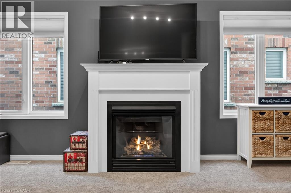 Opportunity to own a LINK home in Alton Village. This bright, spacious home is well located steps to Appleby shopping and the 407, but is located on a quiet, family focussed street. Enjoy a spacious foyer with tile floors and double closet, as well as a front door powder room with pedestal vanity for guests and kids playing outside. The main floor features new carpet in the formal living room with a gas fireplace and overhead lighting. The eat in kitchen spans the width of the home with stainless appliances, stone counters, and patio access to the backyard including a gas line bbq! The bedroom level of this home is over 700sf and showcases new, quality carpet, upgraded window coverings, 2 generous bedrooms and a massive primary suite. Room to unwind at the back of the house with an incredible main bedroom including a walk in closet and 4 piece ensuite with soaker tub. The fully finished basement creates a cozy hangout space with electric fireplace and an upgraded 2 piece bath. Spend your summer out back on the new composite deck, or in the professionally installed hot tub with a custom pergola so you can enjoy in any weather! Updated roof 2025, AC 2023, stacked laundry, automatic garage door opener. Includes new shed, 3 fireplaces, massive hallway mirror, owned on demand water tank! (id:64974)