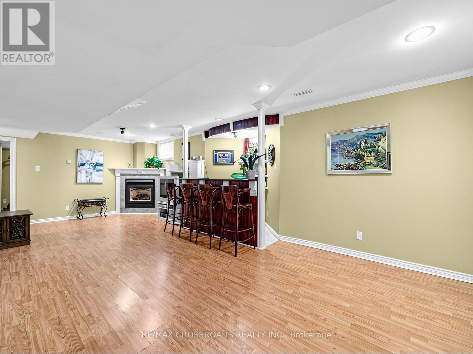 Welcome to this exceptional custom-built detached bungalow, ideally located on a generous 55 ft x 200 ft lot within walking distance to beautiful Paradise Beach in Ajax. Proudly owned by the original owner, this home showcases true pride of ownership and offers a warm, inviting atmosphere throughout. The main floor is filled with natural sunlight and features timeless hardwood floors, elegant crown mouldings, and classic wainscotting. The well-appointed kitchen is designed for both everyday living and entertaining, complete with stainless steel appliances, stone countertops, a breakfast bar, and a bright breakfast area with a walkout to the large deck and stunning backyard. Relax in the cozy family room, highlighted by a welcoming gas fireplace. The fully finished basement adds exceptional living space, featuring two additional bedrooms, a custom-built bar, and a spacious recreation room, perfect for gatherings, hobbies, or extended family. Outside, the expansive backyard offers endless possibilities for entertaining, gardening, or simply enjoying the outdoors. A double-lane driveway provides parking for up to six vehicles, in addition to the attached two-car garage. This beautiful home combines space, comfort, and style in a highly desirable location close to the lake, parks, and everyday amenities. An outstanding opportunity to own a thoughtfully maintained home on an impressive lot in one of Ajax's most sought-after areas. (id:64974)