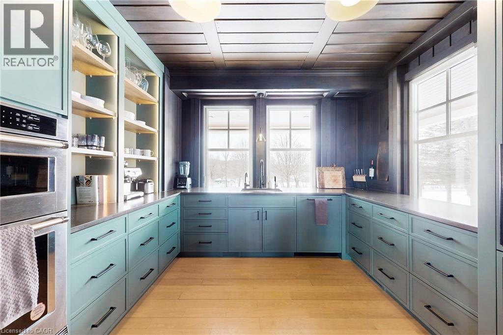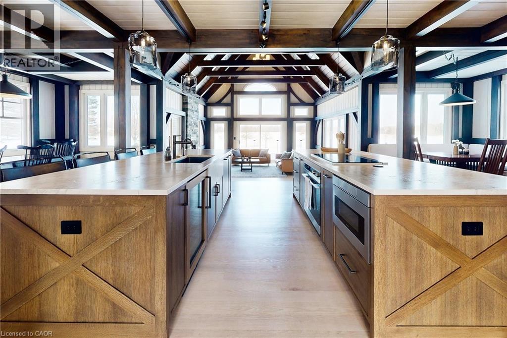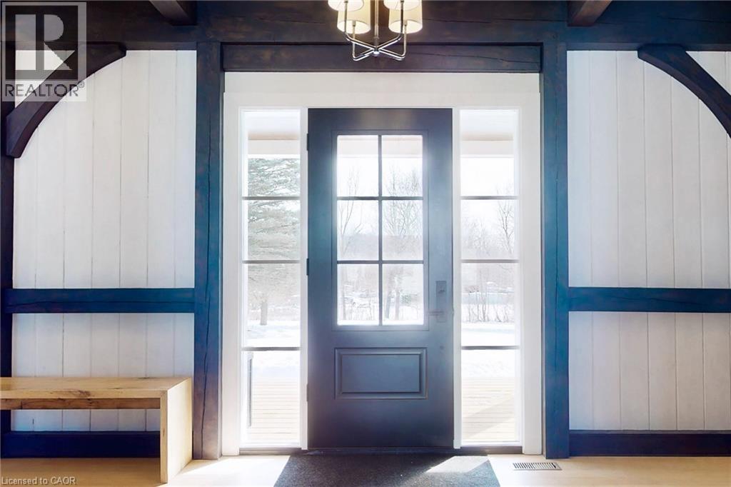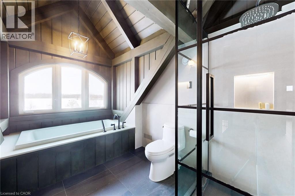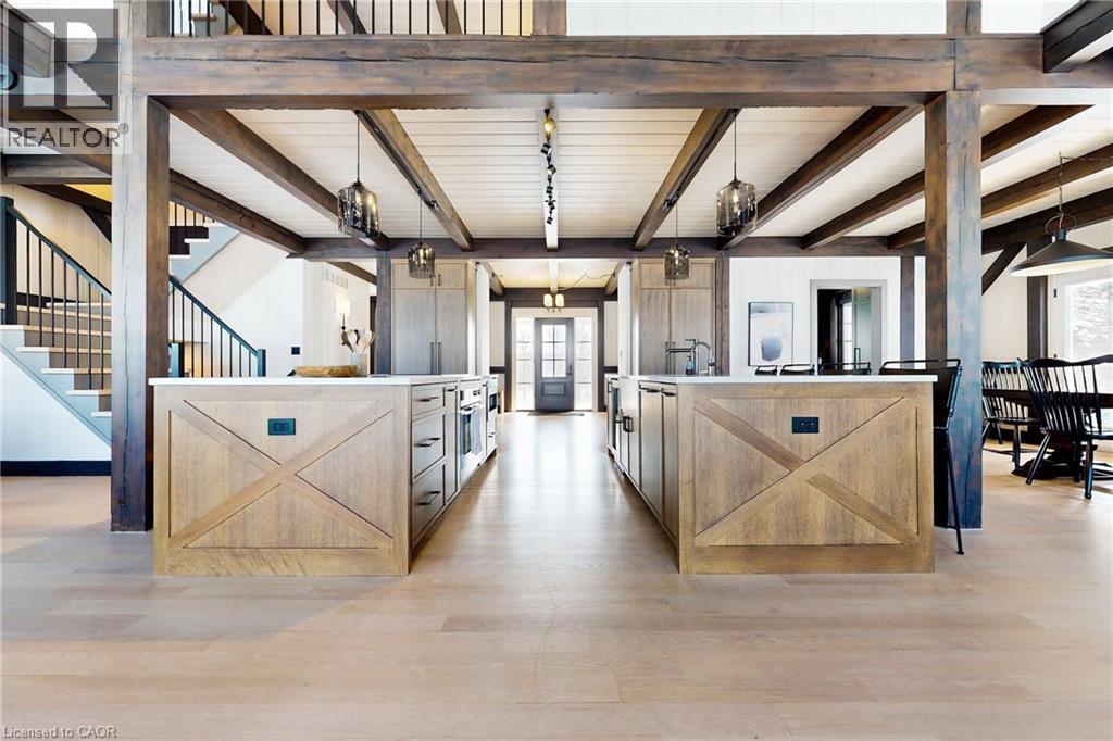 Experience the ultimate country living dream home at 485 Concession 5 Rd E—where refined luxury, beauty, and everyday ease come together, just a 4-minute drive to downtown Waterdown. Set on a breathtaking 91.6-acres of rolling farmland, mature woodlands, and a serene spring-fed pond, this property offers exceptional privacy, calm and a restorative lifestyle. The land has been organically farmed, blending sustainability with long-term peace of mind. The property includes 63 acres of actively farmed/leased farmland with Farm Property Class tax status, offering substantially reduced prop. taxes (approx. 25% of the residential rate on eligible farmland). The current farmer pays approx. $12,000 /yr to lease, helping offset ownership costs while preserving the landscape. The fully renovated 2.5-storey, 6-bed, 6-bath main residence with attached 2-bed, 2-bath guest house was exquisitely remodelled by Neven Custom Homes (2022/23) with $2M+ in premium renovations. Exceptional craftsmanship throughout, including a DaVinci composite shake roof, Gentek siding, custom windows and doors, and beautifully curated finishes. A wrap-around veranda and glass-railed deck create effortless indoor-outdoor living. The heart of the home is the stunning, highly functional chef’s kitchen with two expansive islands, luxury appliances, abundant storage, and a separate prep kitchen, ideal for daily living and entertaining. Spa-inspired bathrooms, 20’8”ceilings in the great room, and a stone fireplace elevate comfort and elegance. The primary suite features timber accents and a luxurious 5-piece ensuite. The lower level is ideal for extended family, while the guest house offers privacy, high-end finishes, and panoramic views. Additional features incl a 30’x90’ Quonset hut, 800+ evergreen trees, two septic systems, and two geothermal systems. Close to amenities yet worlds away, this is a rare, thoughtfully designed country estate built for living well. LUXURY CERTIFIED. (id:64974)