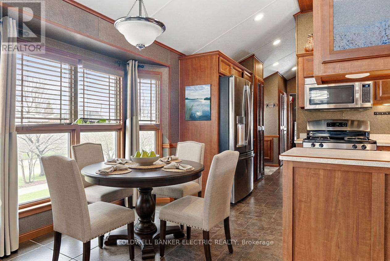 Welcome to your slice of paradise near Rice Lake, perfect for year-round living or a peaceful weekend escape. This charming 2-bedroom, 1-bath mobile home offers unbeatable value with low land lease fees of just $530 per month. Thoughtfully designed and full of cozy character, the open-concept layout blends the living, dining, and kitchen areas into a warm, welcoming space, complemented by an electric fireplace that brings added warmth and charm. The primary bedroom is a snug retreat, while the second bedroom features built-in bunk beds, perfect for guests. You'll love the light-filled 3-piece bathroom, featuring a skylight, space-saving pocket doors, and a tucked-away washer/dryer combo for added convenience. Stay comfortable year-round with forced-air propane heating and central air conditioning. Step outside onto your deck and take in the postcard-worthy sunsets over Rice Lake. The fully fenced yard offers privacy, ample space for pets or gardening, and the nearby boat launch means you're just moments away from fishing, boating, or paddling. Only 20 minutes to Port Hope, Cobourg, or Peterborough, this home strikes the perfect balance between nature and convenience. Whether you're downsizing, investing, or searching for a year-round retreat, this one checks all the boxes - affordable, low-maintenance, and breathtaking. (id:64974)