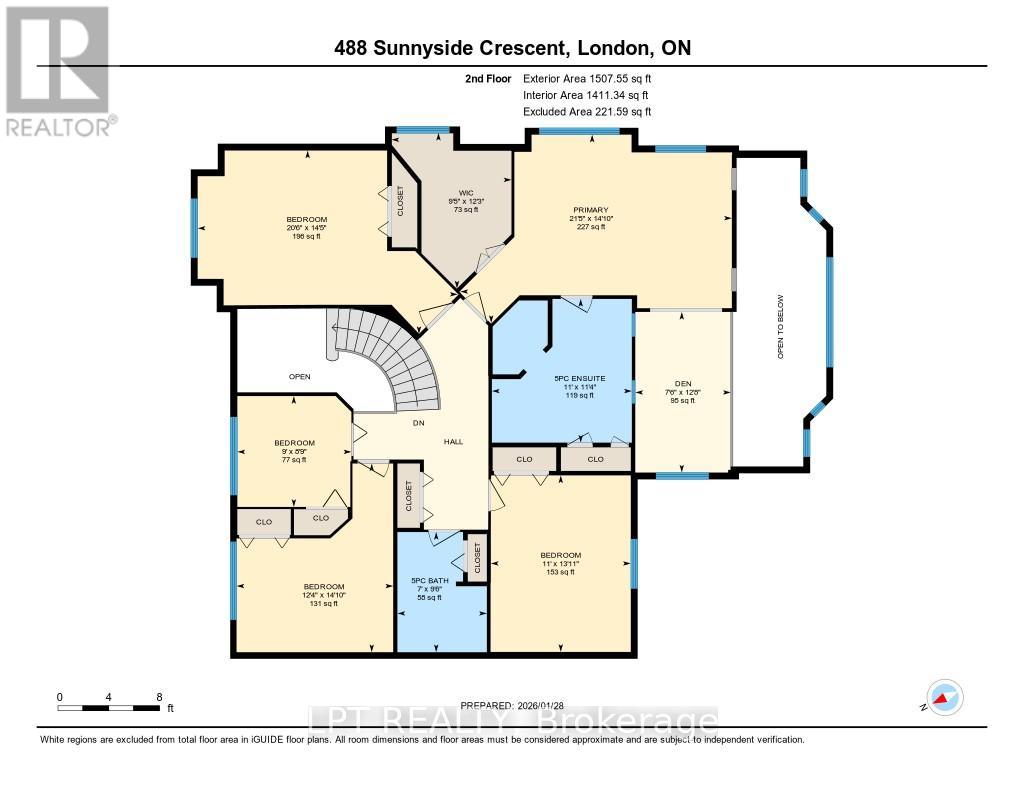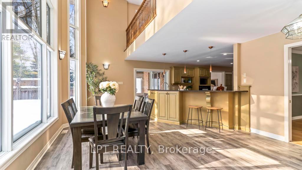 Welcome to 488 Sunnyside Crescent, a spacious two-storey home in a highly sought-after North London neighbourhood. This beautifully maintained home features a double car garage, double driveway, and abundant natural light throughout. The main floor includes a formal living room, separate dining room, and a den that opens to a bright breakfast area, flowing seamlessly into a large kitchen with granite countertops and custom Hutton Bielmann cabinetry. The family room with fireplace, private office, powder room, and combined laundry/mudroom with sink and convenient garage and exterior access complete this level, providing both elegance and everyday practicality. A rear addition by previous owners adds a stunning two-storey atrium open to the breakfast area, kitchen, and second floor, along with a spacious enclosed three-season sunroom/back porch-perfect for relaxing or entertaining. Upstairs, the primary suite features a 5-piece ensuite with jetted soaker tub, separate shower, large walk-in closet, and an interior balcony/den overlooking the atrium. Four additional bedrooms, each with ceiling fans and California shutters, and a 5-piece main bathroom with skylight complete the second level. The finished basement offers even more functional living space, including a large recreation room with gas fireplace, servery, additional bedroom, full bathroom, cold storage, separate storage room, & a utility room with workshop-ideal for guests, in-law accommodation, or extra family space. Step outside to a fully fenced backyard retreat featuring a hand-cut stone patio, in-ground lighting, gardens, a summer waterfall feature, garden shed, and irrigation system-perfect for outdoor entertaining or quiet evenings at home. Recent updates include new shingles in 2024. Ideally located just minutes from Masonville Mall, restaurants, banks, a library, Western University, Stoneybrook Public School & A.B. Lucas Secondary School, this exceptional property is ready to welcome its next family! (id:64974)