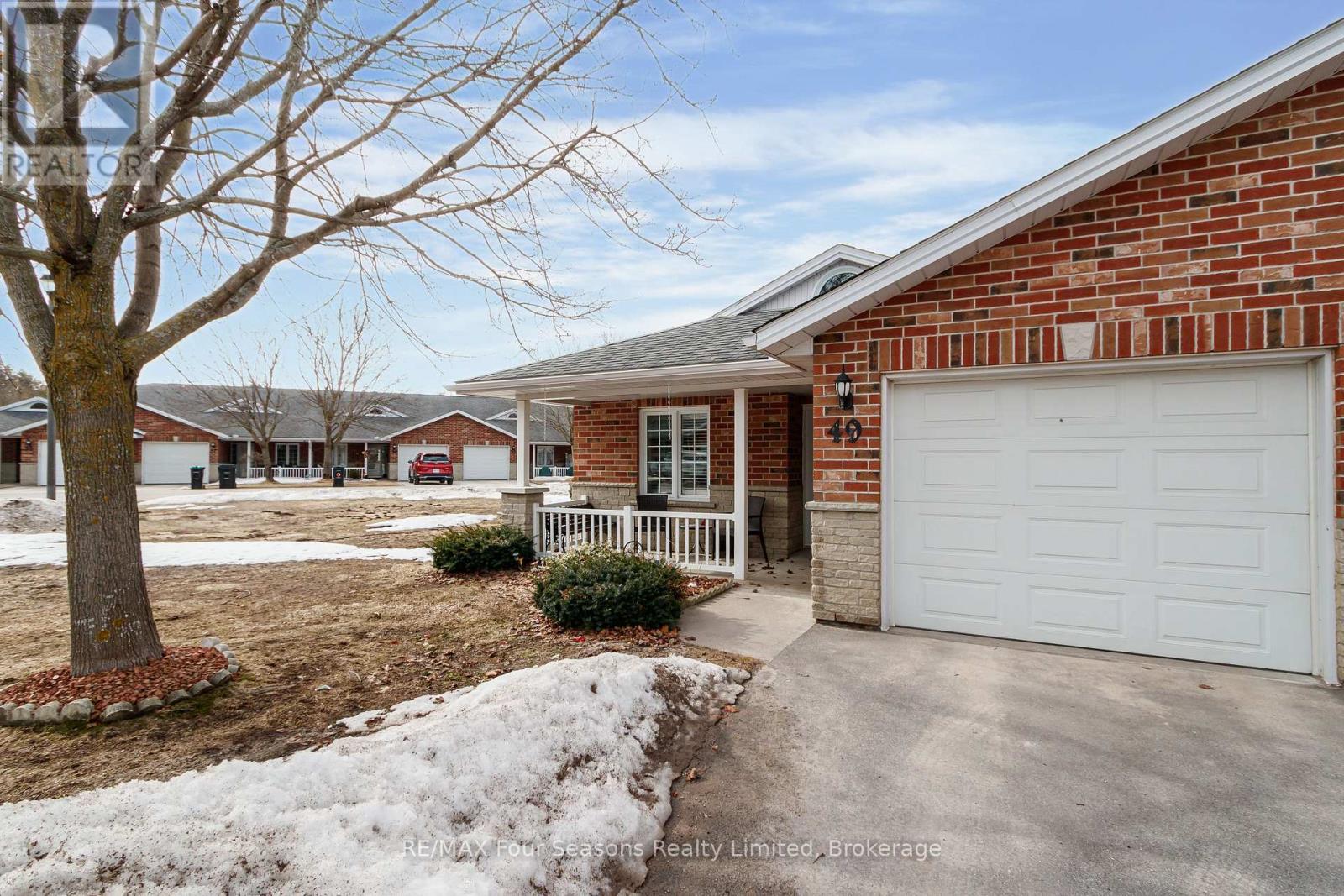 Located in the welcoming Huron Meadows adult life lease community, Unit #49 is a spacious end unit offering comfortable living in a quiet, well-maintained setting. This 2-bedroom, 2-bathroom home features one of the largest layouts in the 58-unit development and has been carefully maintained over the years. The interior has a warm, homey feel with carpet in the living room and bedrooms. The bright living room features a cozy gas fireplace, and the bathroom includes a stand-up bathtub. At the back of the home, a 4-season sunroom with a patio door provides a great place to relax year-round. The home also includes a covered front porch and attached single-car garage, and residents enjoy access to the community clubhouse for social events and activities. Book your showing today! (id:64974)