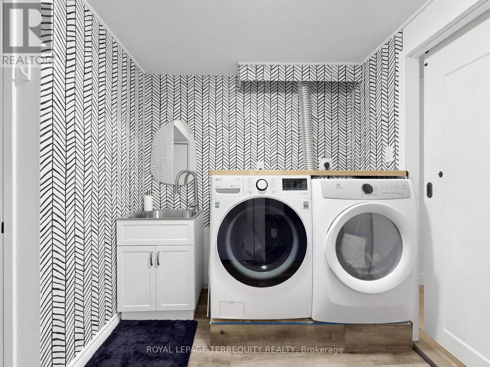 Stunning 3 Bed 2 Bath Newly Renovated Townhome, Located In The Highly Desirable Village of Streetsville. This stylish home showcases a modern, open-concept layout with elegant finishes throughout. The stunning kitchen features sleek quartz countertops, contemporary cabinetry, stainless steel appliances, and a striking backsplash, all complemented by large windows that fill the space with natural light. Upstairs, you'll find three generously sized bedrooms ideal for families. The updated bathrooms offer a clean, spa-like feel with quality fixtures and finishes. The fully finished basement adds valuable living space with a cozy rec room, a Modern Bathroom with Ensuite laundry that has ample space for storage. Fenced Backyard offers the perfect setting for relaxation and entertaining. Enjoy The Amenities Of The Outdoor Pool, Party Room And More! Situated in a family-friendly community close to top-rated schools, parks, shopping, 401, 407 And The Streetsville Go. Roof in 2023, Window 2025, Sliding door 2025. (id:64974)