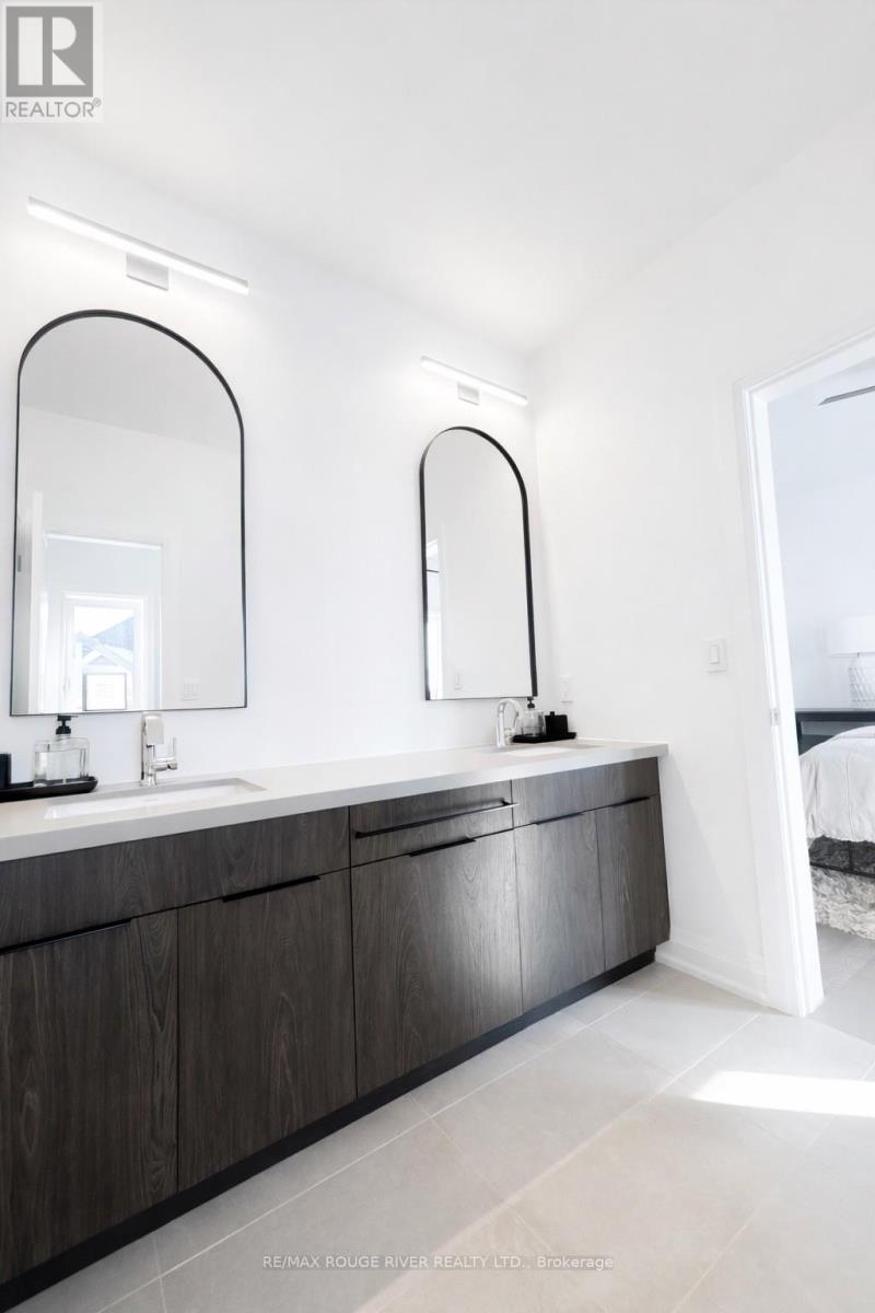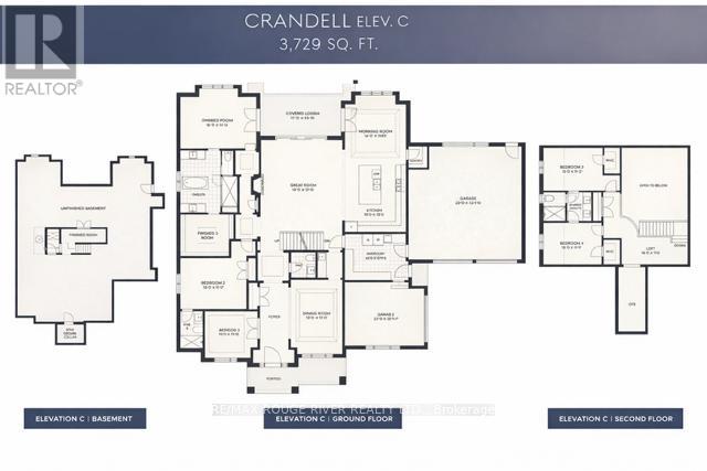 Welcome to Embee Estates - The Crandell Model An exceptional 4-bedroom, 4-bathroom bungalow loft offering an impressive 3,723 sq. ft. of refined living space, thoughtfully designed for luxury, comfort, and versatility. This super spacious and sophisticated home features a walk-up basement with a private entrance, ideal for creating a completely separate living suite. The main level showcases a stunning primary retreat, complete with a custom walk-in dressing room and an elegant 6-piece spa-inspired ensuite, along with an additional main-floor bedroom featuring its own private ensuite-perfect for guests or multigenerational living. Soaring vaulted cathedral ceilings anchor the family room, while oversized windows flood the home with natural light. The Aya Designed Kitchen, features high-end Fisher & Paykel appliances, premium upgraded finishes, and seamless flow into the dining and living spaces-ideal for entertaining. Upstairs, the loft overlooks the family room, offering a cozy sitting area along with two generously sized bedrooms, each with custom walk-in closets and a shared Jack & Jill bathroom with double sinks. Additional highlights include: Hardwood and porcelain tile throughout Oak staircases & crown moulding 14' ceilings in the dining room and office Butlers Pantry with Sink and Beverage Fridge Glass showers Custom closet organizers Ecobee smart thermostat Covered 18"X13" loggia Triple-car drywalled garage with Mudroom Access from both Access Door to backyard from Double Garage, Rough in for Side mount GDO's Striking modern exterior design **No Sign On Property** (id:64974)