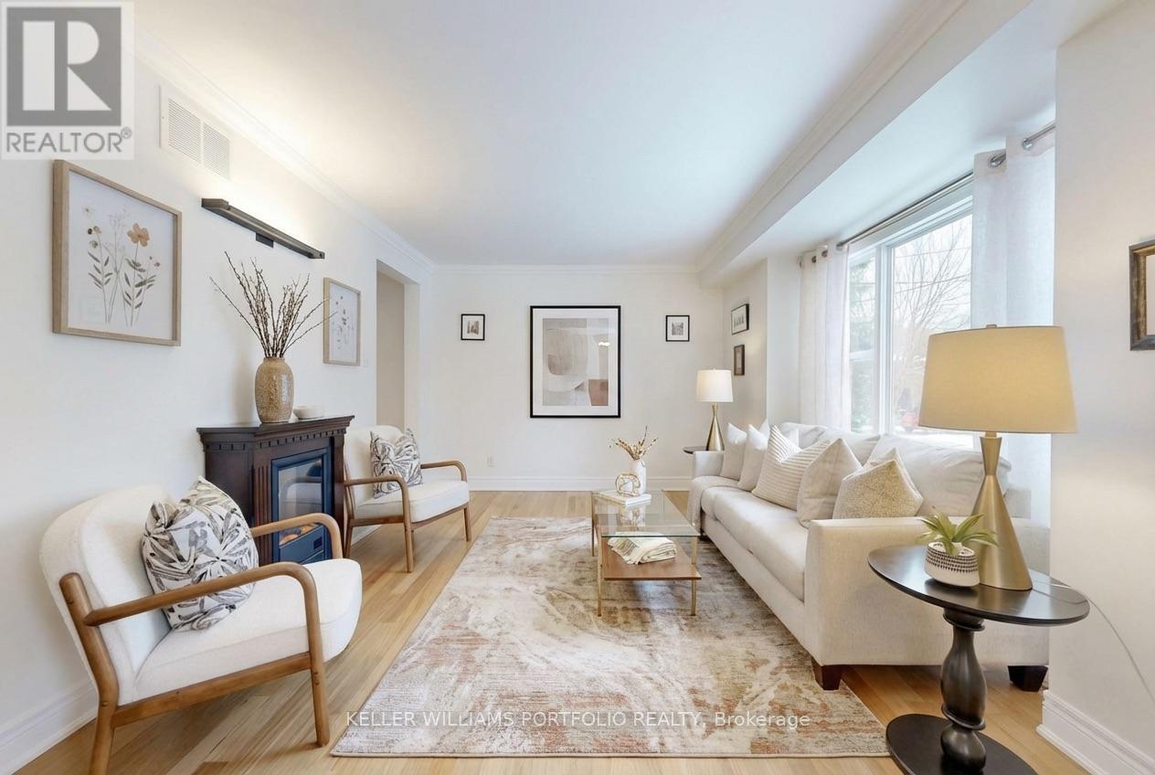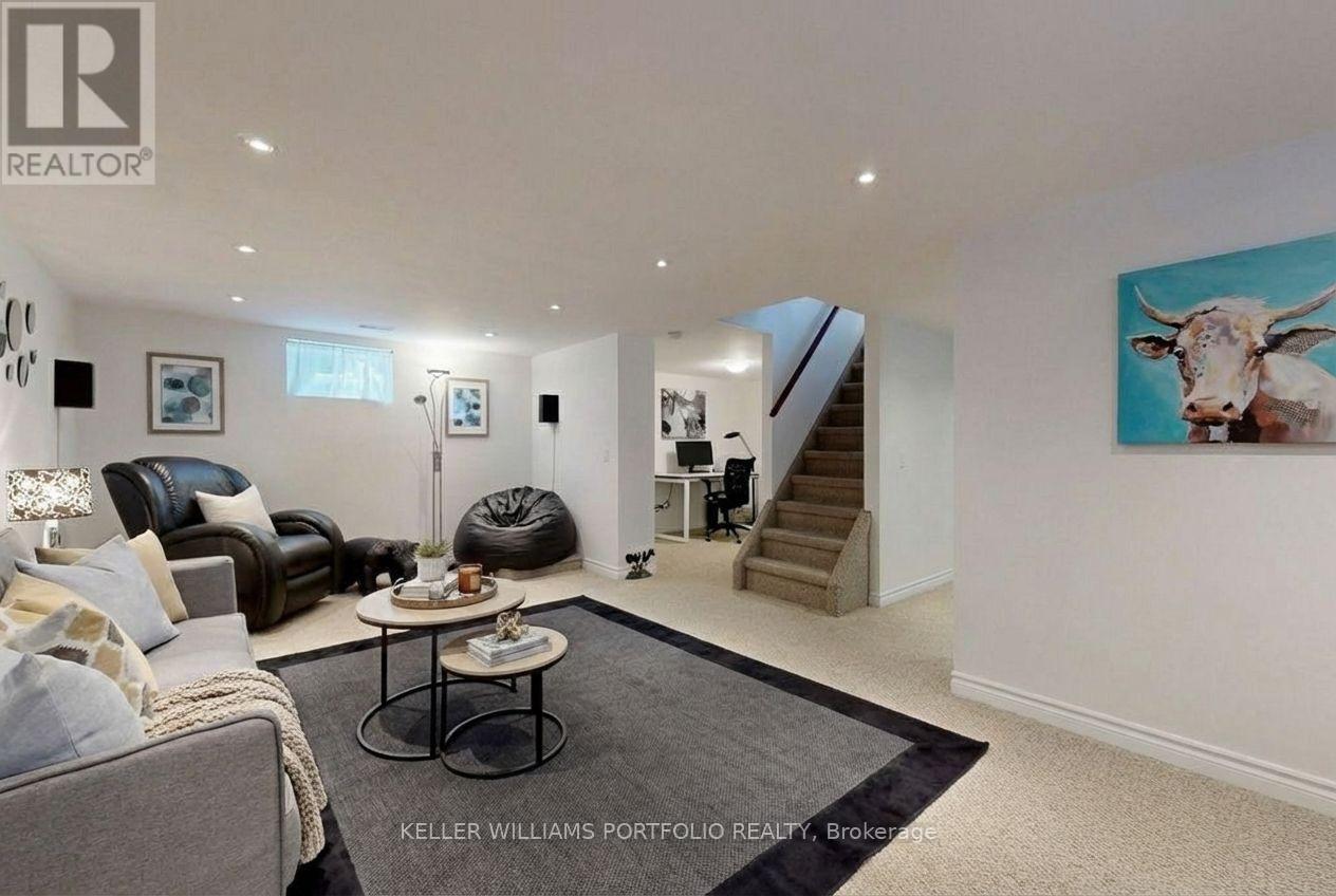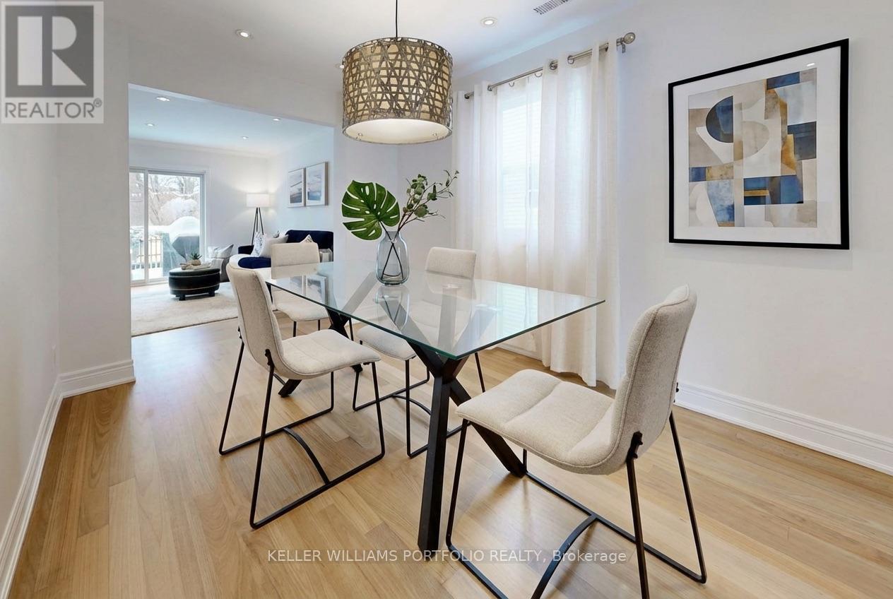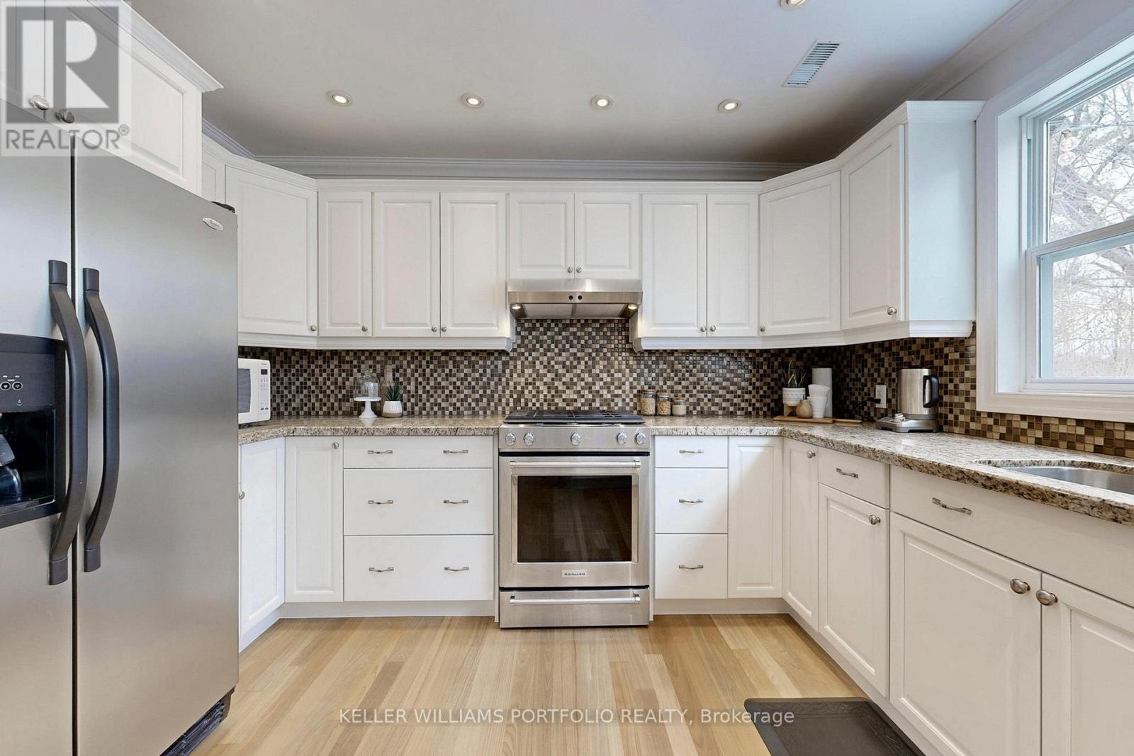 A true 4 Bed/4 Bath Family Home. Large Bedrooms and Main Floor Powder Room. Nestled in a serene setting that overlooks both conservation Area and a scenic golf course, this home perfectly balances elegance and comfort. Gleaming hardwood floors flow seamlessly throughout the main living spaces, creating a warm and inviting atmosphere from the moment you step inside.The spacious main level features a large, sun-filled family room ideal for entertaining, a formal dining area for special gatherings, and a comfortable Living room that's perfect for relaxing evenings at home. The modern kitchen opens onto beautiful views, with a walkout to the 2-tiered patio and the convenient main-floor laundry room adds everyday practicality. Entertaining is easy with BBQ hookup to gas! Upstairs, generous bedrooms offer plenty of space for family and guests alike. Premiere Bedroom has Ensuite with Heated Floors. The fully finished basement is an impressive extension of the home, boasting high ceilings, a rec room, a dedicated workout space, and a bedroom complete with a 2-piece ensuite-ideal for guests or a home office setup. With parking for up to four cars, this property combines luxury, functionality, and an unbeatable location. 5 Min walk to the Victoria Park Station and one stop away from the Go Train to the city. (id:64974)